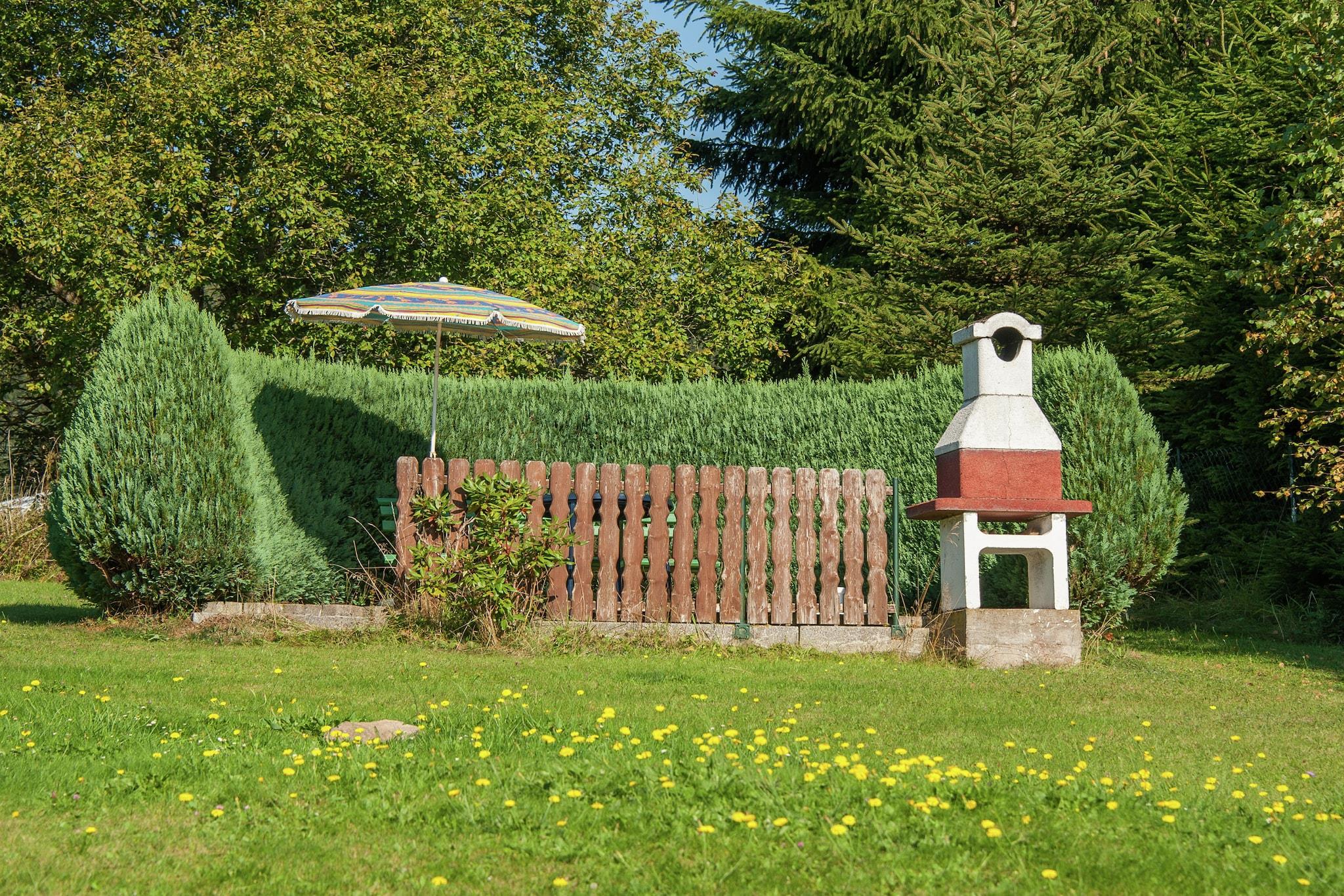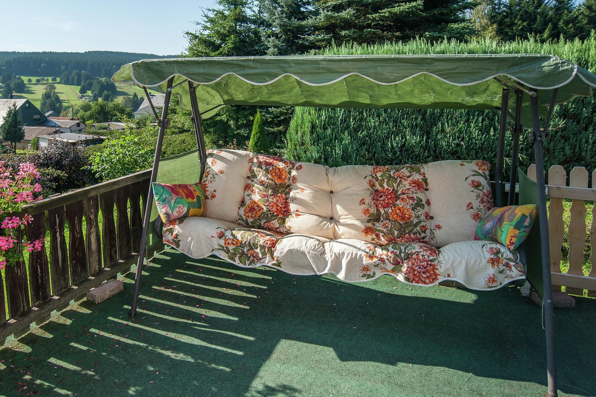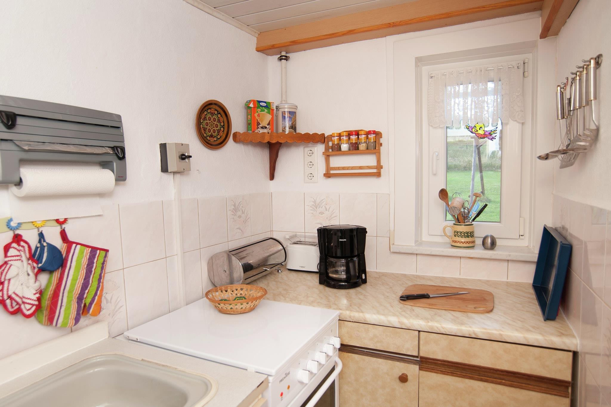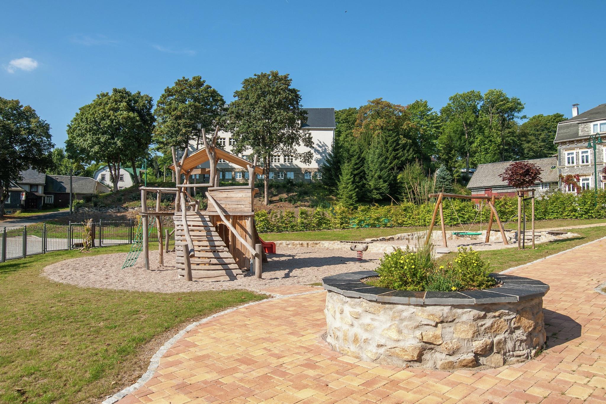 Hyggeligt familieretreat Slap af med familie eller venner i dette charmerende feriehus i Altenfeld. Hytten har en rummelig have, en terrasse med panoramaudsigt og et hyggeligt opholdsområde, perfekt til at slappe af efter en dag med at udforske Thüringer Wald. Centralvarme sikrer komfort hele året rundt, mens det veludstyrede køkken og tv giver bekvemmelighed til indendørs afslapning. Børn kan nyde legepladsen og sandkassen, hvilket gør det til et indbydende ophold for familier. Natur og eventyr Beliggende mellem den legendariske Rennsteig og det romantiske Schwarzatal byder Altenfeld på utallige vandre- og cykelstier for naturentusiaster. Om vinteren garanterer præparerede skiløjper, langrendsruter og kælkebakker udendørs sjov. Den nærliggende skovpool og naturskønne vandreture giver gæster og deres kæledyr mulighed for at nyde den friske luft. Restauranter og supermarkeder ligger inden for en kort køretur, mens den rolige beliggenhed sikrer fred og ro. Outdoor Living & Comfort Træd udenfor for at nyde den møblerede have og terrasse, perfekt til grillmad eller morgenkaffe. Baghaven er kæledyrsvenlig, så lodne ledsagere kan færdes sikkert. Parkering er tilgængelig på stedet, og kombinationen af ??fredelige omgivelser med praktiske faciliteter gør denne hytte til en ideel base for at udforske Thüringens natur, kultur og vinteraktiviteter.
