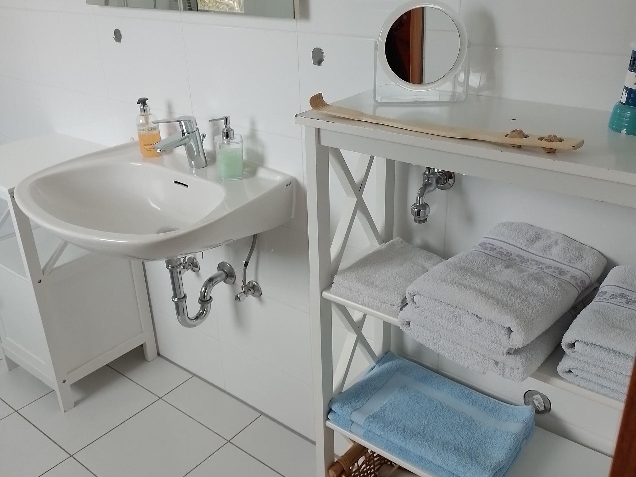Im großen Badezimmer sind Dusche, Haartrockner, Handtücher etc.
