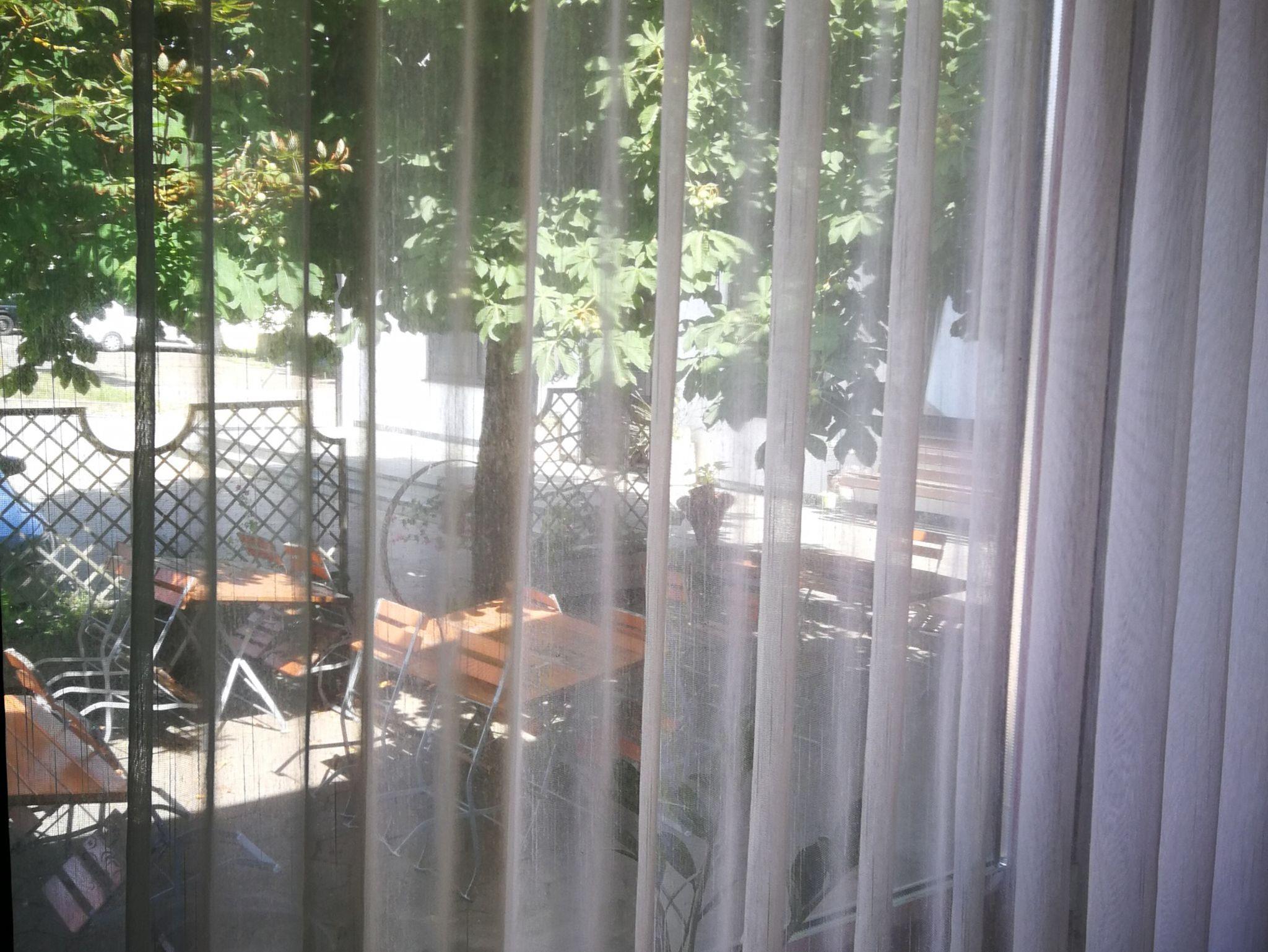 Draussen können sie unter Kastanienbäumen in unserem Gästegarten Platz nehmen. Dieser ist über den Hauseingang erreichbar.. Morgens im Schatten und abends in der Sonne.