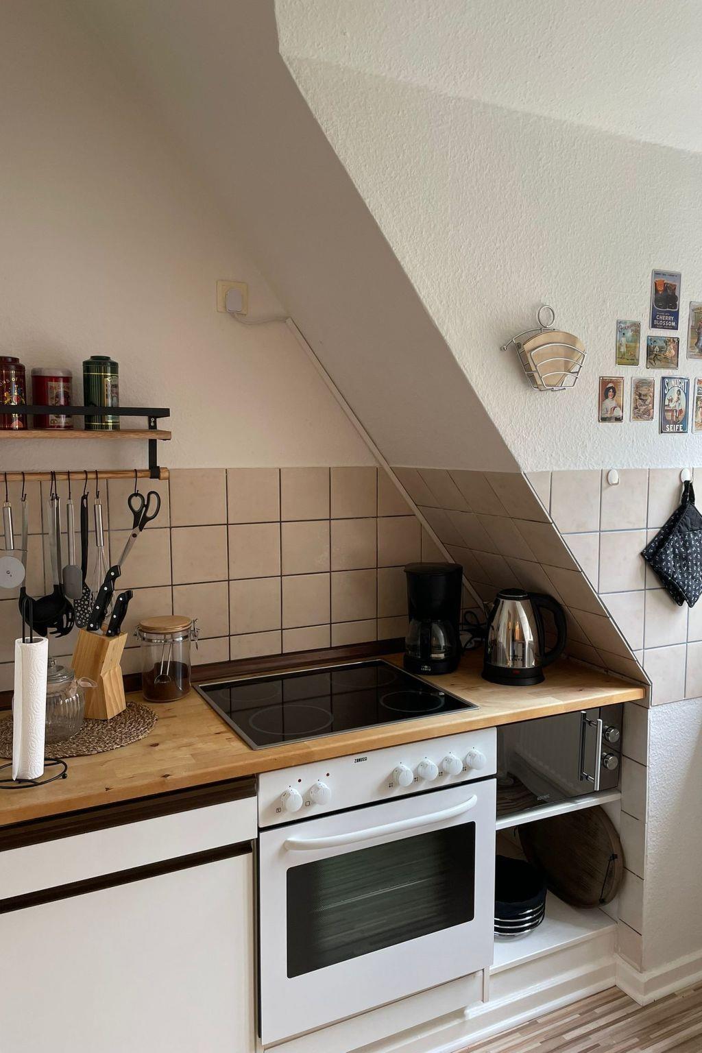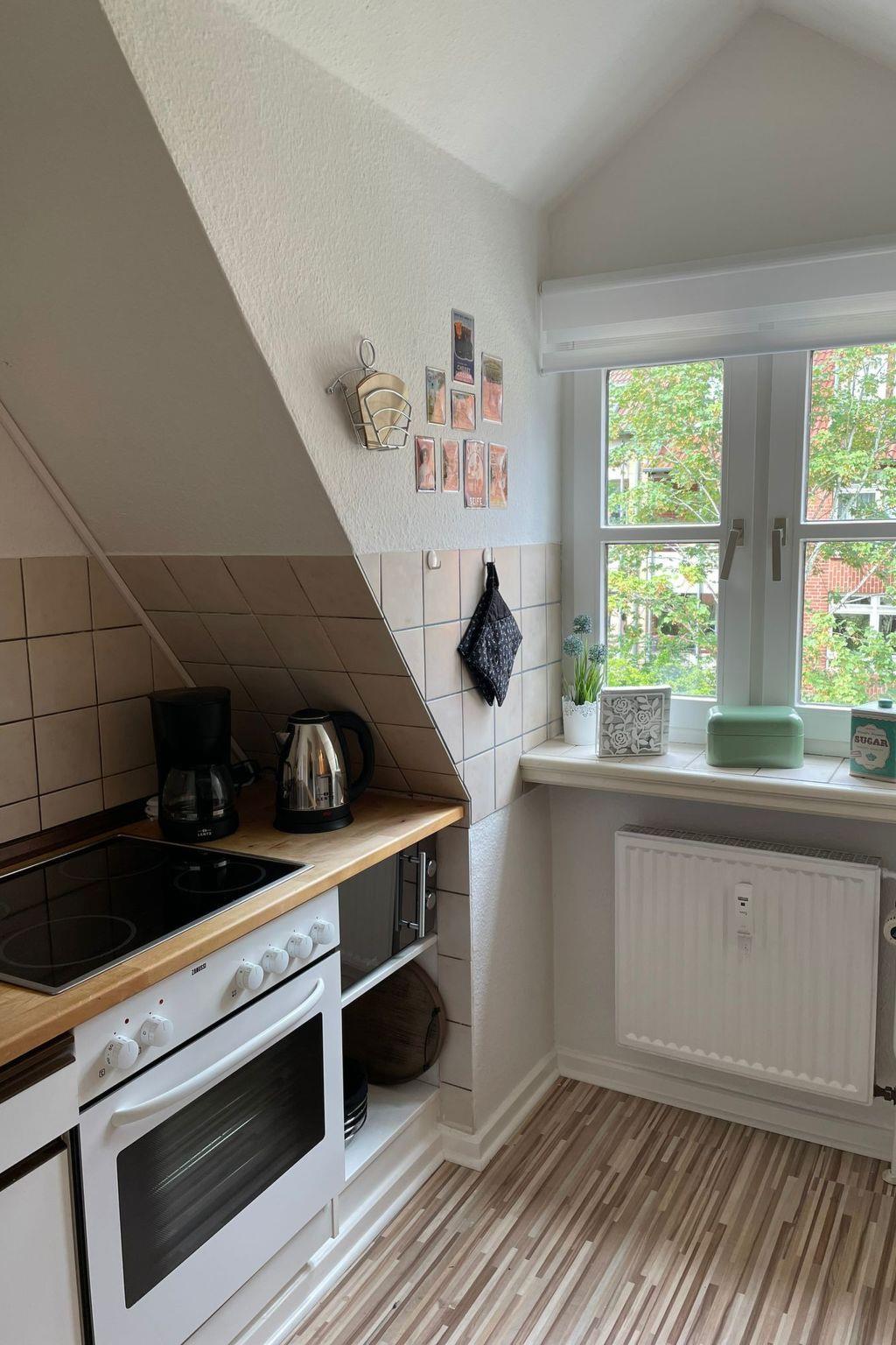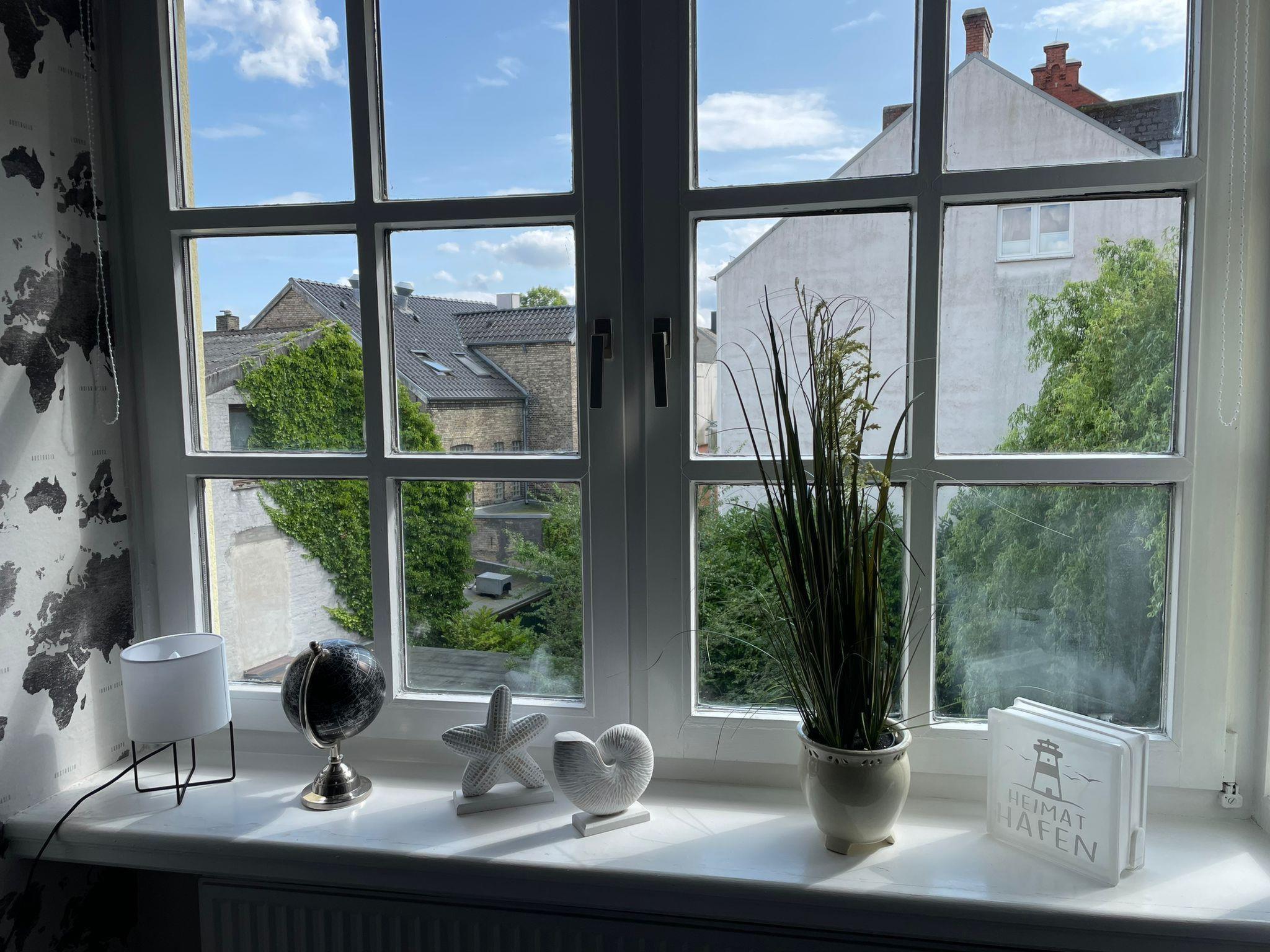 The outside area of the flat is equally enchanting. Situated in a quiet side street between the lively harbour and the historic Nordermarkt, the location offers an idyllic retreat in the middle of the city centre. The immediate surroundings are characterised by the relaxed, maritime atmosphere of the harbour and the historic beauty of old Flensburg facades, making the outdoor area a real highlight.