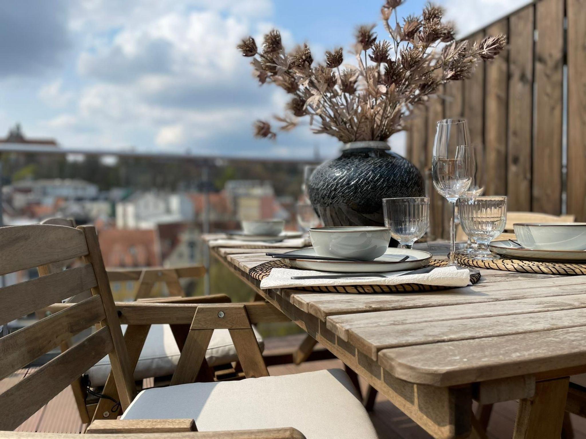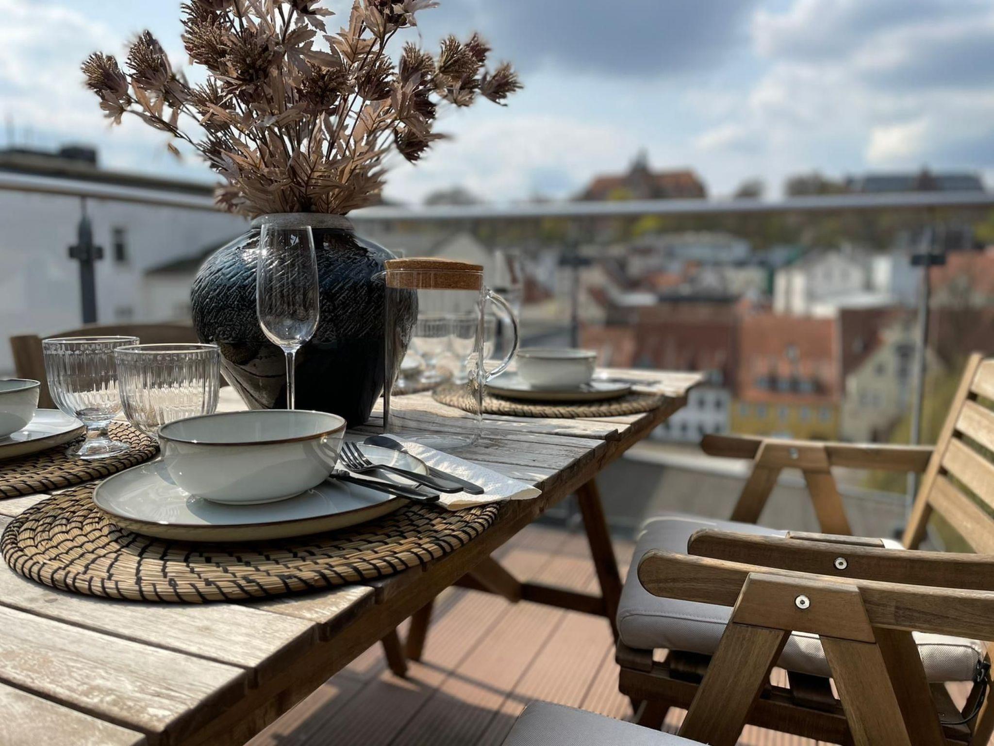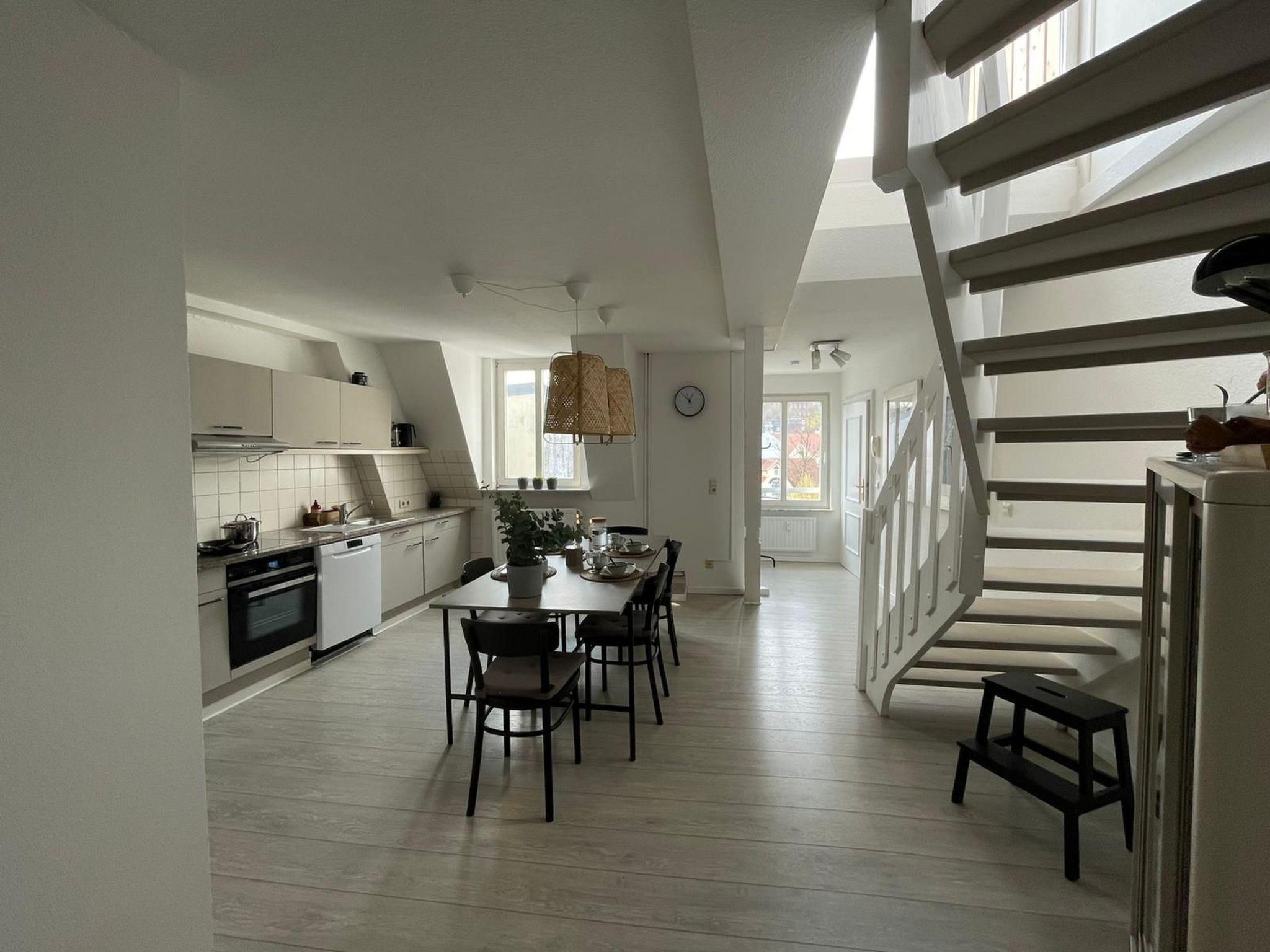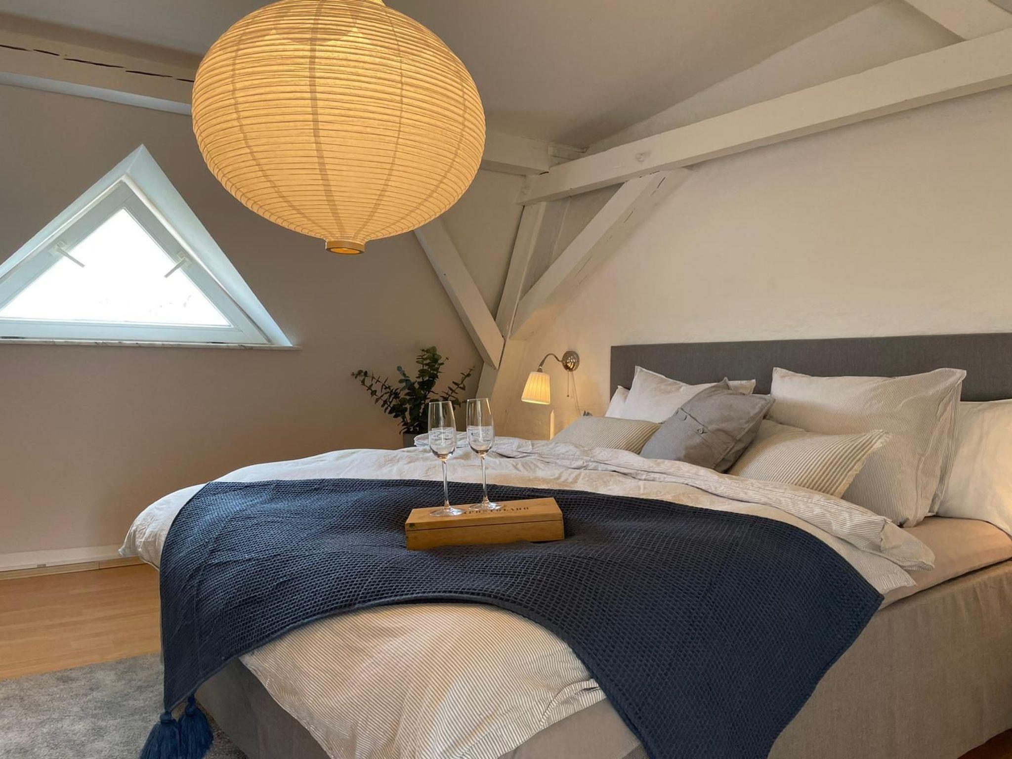 Beautifully located directly at the harbour tip, this old building flat furnished in a maritime style over 2 floors offers an unforgettable view over the old town, up to the Museumsberg and the sails of the harbour. On the lower level, the flat offers a living room, bathroom with marble fittings and a fully equipped open-plan kitchen. On the second floor, there are two separate bedrooms that can accommodate 4 people and a roof terrace with a beautiful view over the rooftops of the old town of Flensburg.