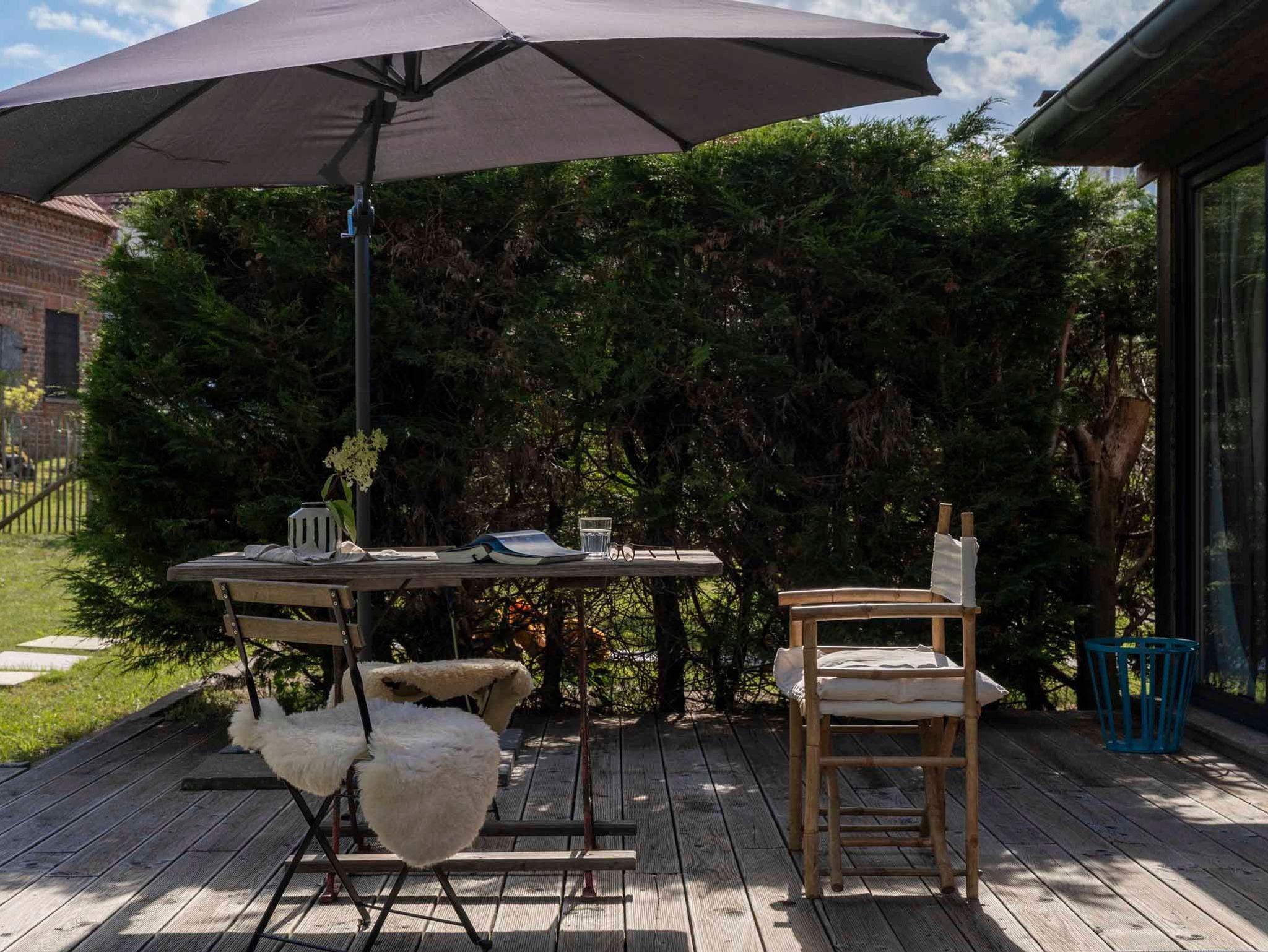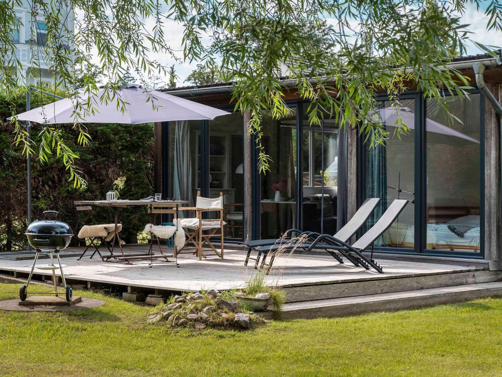Die Bay Cabin liegt in Altwarp, nur ein paar Schritte vom Badestrand entfernt. Ein Haus mitten im Dorf, in dem man sich doch fühlt, als wäre man inmitten der Natur. Dank der dem Garten zugewandten, komplett verglasten Südseite bieten sich zahlreiche Blickachsen ins Grüne und auf die dem Haus vorgelagerte Terrasse und die alte Gartenweide. Der Wohnraum mit seinem gemütlichen Sofa am gusseisernen Kaminofen, dem Essplatz und der vollausgestatteten Küchenzeile ist hell und lichtdurchflutet. In den beiden Nebenräumen liegen das Schlafzimmer und das Duschbad mit WC. Bei schönem Wetter erweitert sich das Raumangebot um die Terrasse mit Terrassenmöbeln und Liegen und den großen, umzäunten Garten ? ein Logenplatz im Freien und im Grünen. Wir finden, das Haus ist für Einzelreisende und Paare, Strandliebhaber und Naturfreunde ideal.
