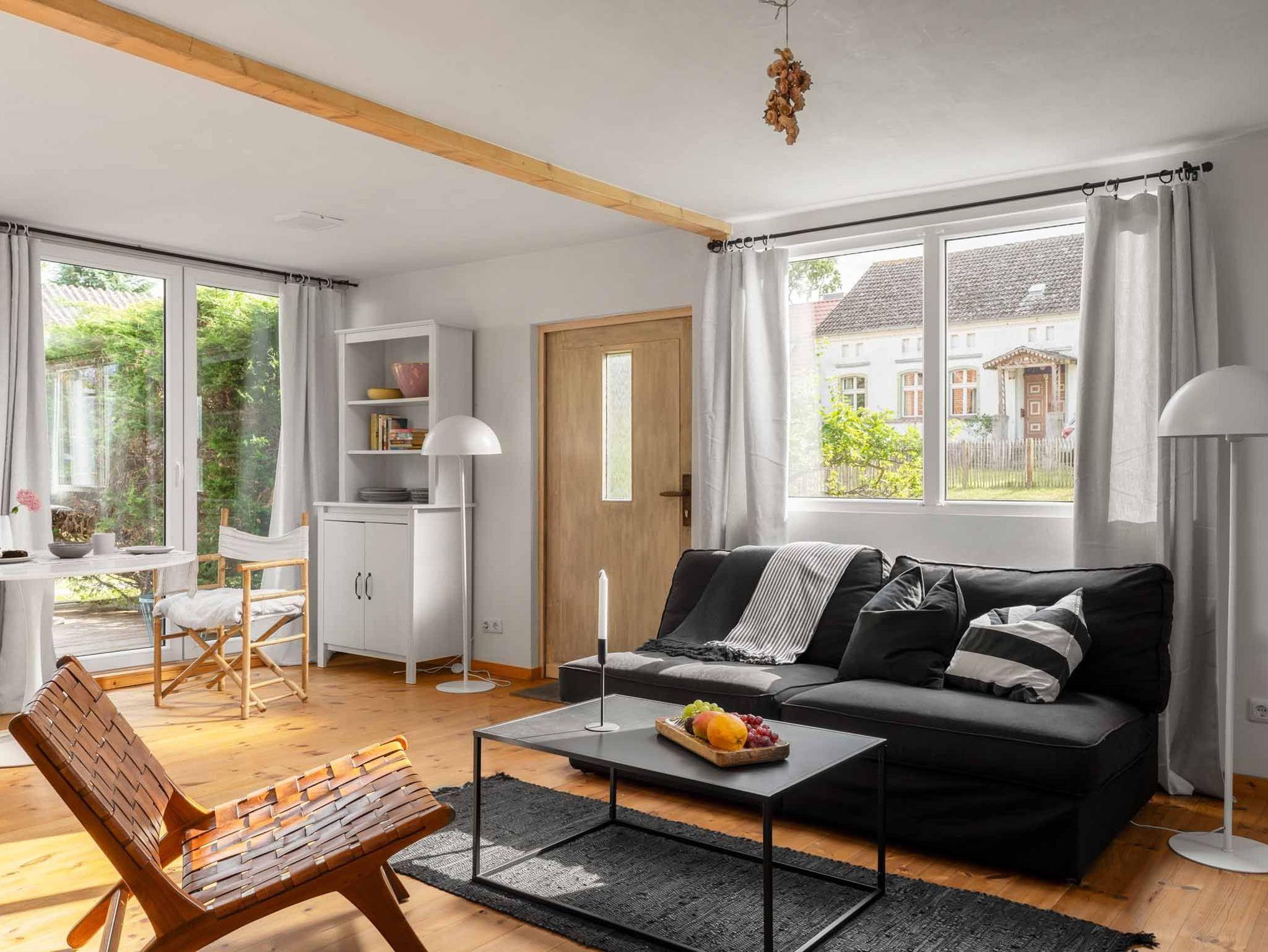 Unsere Bay Cabin befindet sich im idyllischen Fischerdorf Altwarp, nur wenige Schritte vom herrlichen Badestrand entfernt. Das Haus strahlt eine entspannte Atmosphäre aus, die es einem ermöglicht, sich mitten in der Natur zu fühlen, obwohl man sich im Herzen des Dorfes befindet. Durch die großzügig verglaste Südseite, die direkt auf den Garten ausgerichtet ist, genießt man herrliche Ausblicke auf die großzügige Terrasse und die alte Gartenweide. Der Wohnraum besticht durch seine Helligkeit und den Lichteinfall, während das gemütliche Sofa neben dem gusseisernen Kaminofen, der Essbereich und die vollausgestattete Küchenzeile eine behagliche Atmosphäre schaffen. Die angrenzenden Räume umfassen das Schlafzimmer und das moderne Duschbad mit WC. Bei schönem Wetter eröffnet sich eine weitere Dimension des Wohnens auf der Terrasse, ausgestattet mit komfortablen Möbeln und Liegestühlen, sowie dem großzügigen und umzäunten Garten - ein Paradies im Freien, umgeben von üppigem Grün. Wir sind überzeugt, dass dieses Haus ideal für Alleinreisende, Paare, Strandliebhaber und Naturliebhaber ist.