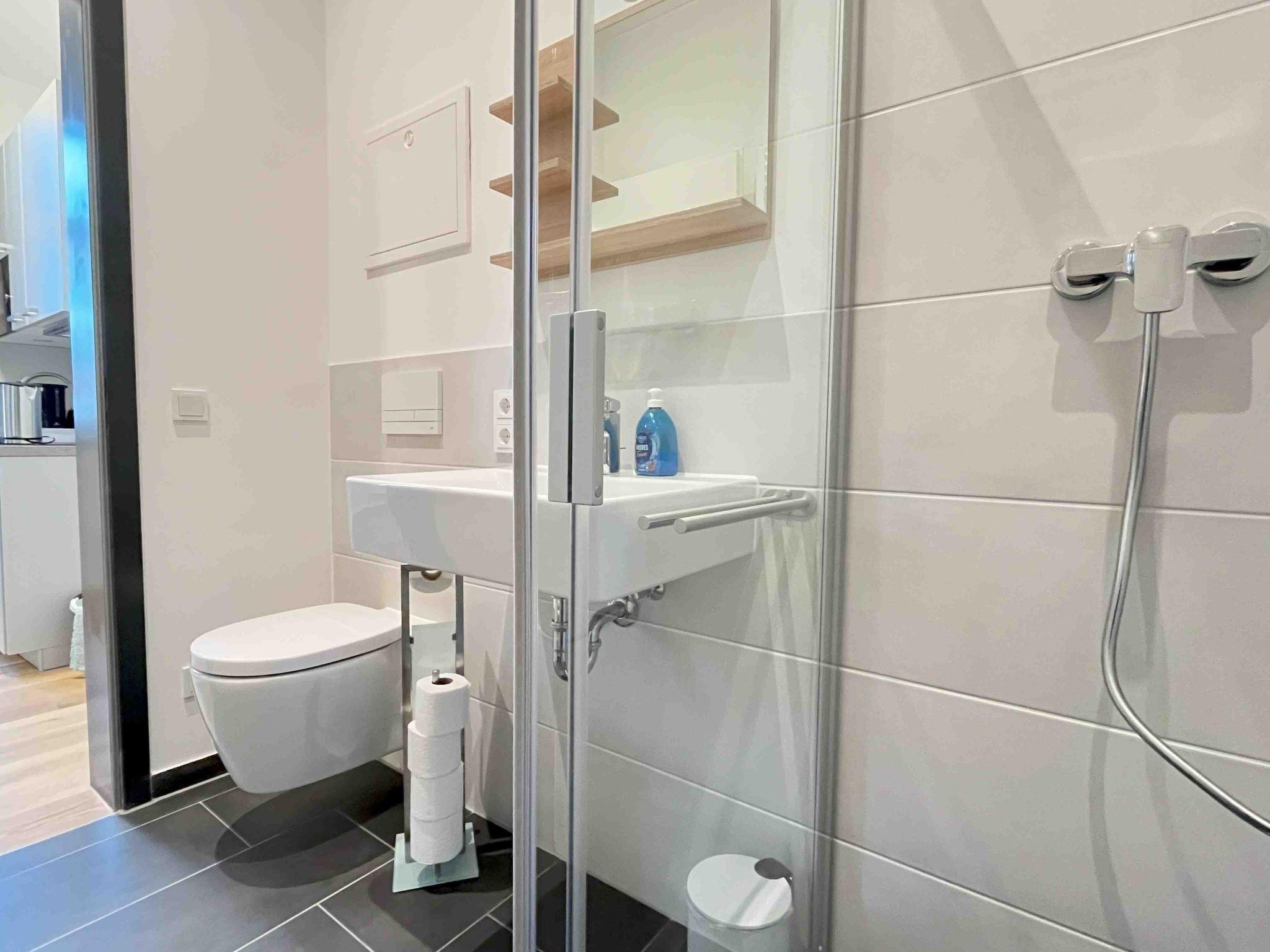 The furnished 33 m² upper floor in Amberg includes a bedroom with 2 single beds and is suitable for up to 2 people. It is possible for a third person to sleep on the sofa.