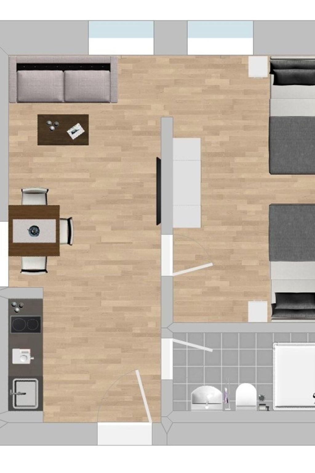 The furnished 33 m² upper floor in Amberg includes a bedroom with 2 single beds and is suitable for up to 2 people. It is possible for a third person to sleep on the sofa.