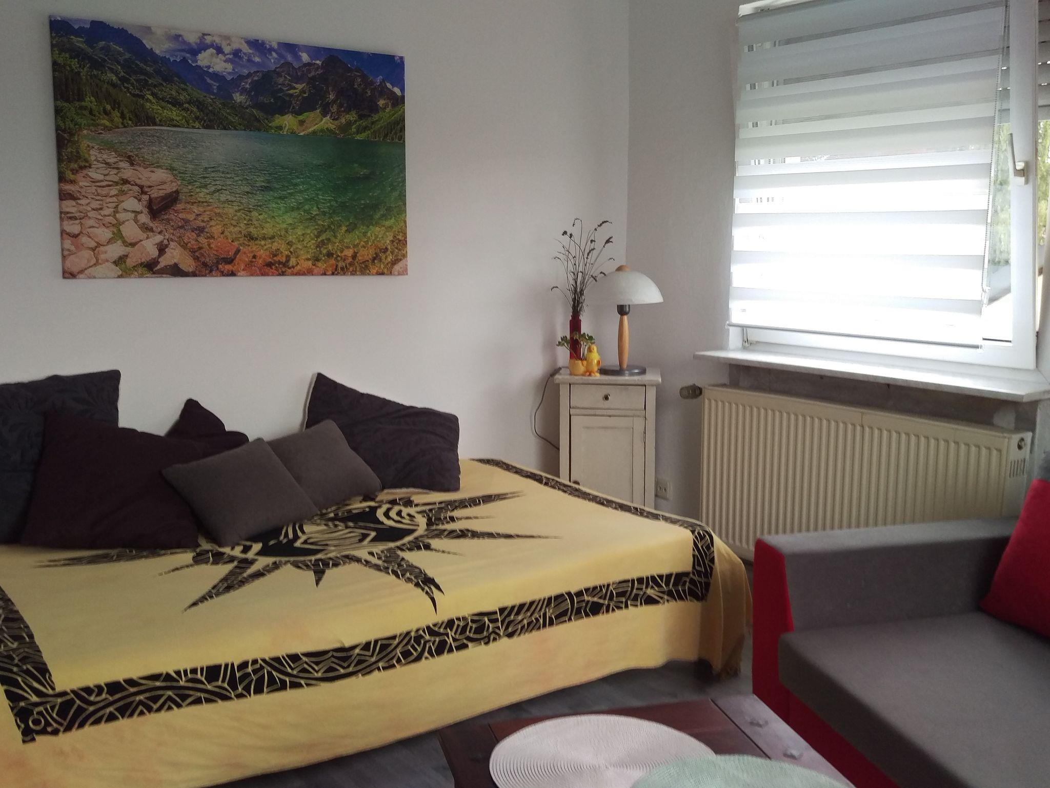 Gemütliche drei Zimmer Dachgeschoßwohnung im zweiten Stock am Stadtrand von Amberg. Die Unterkunft hat einen großen Garten mit Sonnenliegen. Für die Kinder sind im Garten Schaukel, Rutsche, Trampolin und ein Spielhaus zur Verfügung. Die Ferienwohnung ist nur sieben Minuten von Amberg entfernt. Die Dachgeschoßwohnung mit 70 Quadratmetet Wohnfläche hat zwei Schlafzimmer. Eines ist mit einem Doppelbett (1,60 x 2,00 m) und das andere mit einem Einzelbett (1,20 x 2,00 m) ausgestattet. Im Wohnzimmer finden Sie eine Schlafcouch und einen Satelliten Fernseher. Die großzügige Küche mit Essplatz für bis zu sechs Personen ist voll ausgestattet mit Backofen, Mikrowelle, Wasserkocher, Kaffeemaschine, Toaster, Geschirr und Töpfe. Das Bad verfügt über ein WC, Badewanne und Waschbecken. Eine Waschmaschine finden Sie im Keller des Hauses. Die Bettwäsche, Endreinigung, WLAN und der Parkplatz sind bereits im Preis enthalten.