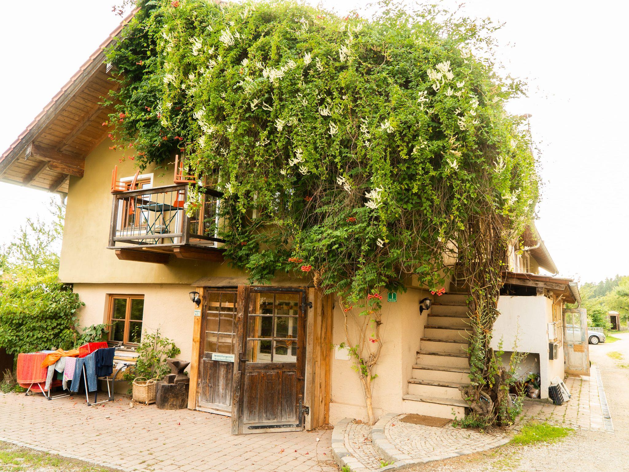 Am Anwesen befinden sich, neben unserer Familie, weitere Anwohner, eine Werkstatt für Holzhandwerk, eine Keramikwerkstatt und eine weitere Ferienwohnung. Die ehemalige Schmiede im EG wurde zu einem Veranstaltungsraum mit Versorgungsküche und großzügigem Terrassengarten umgestaltet, so können wir auch immer gerne gekühlte Getränke anbieten.