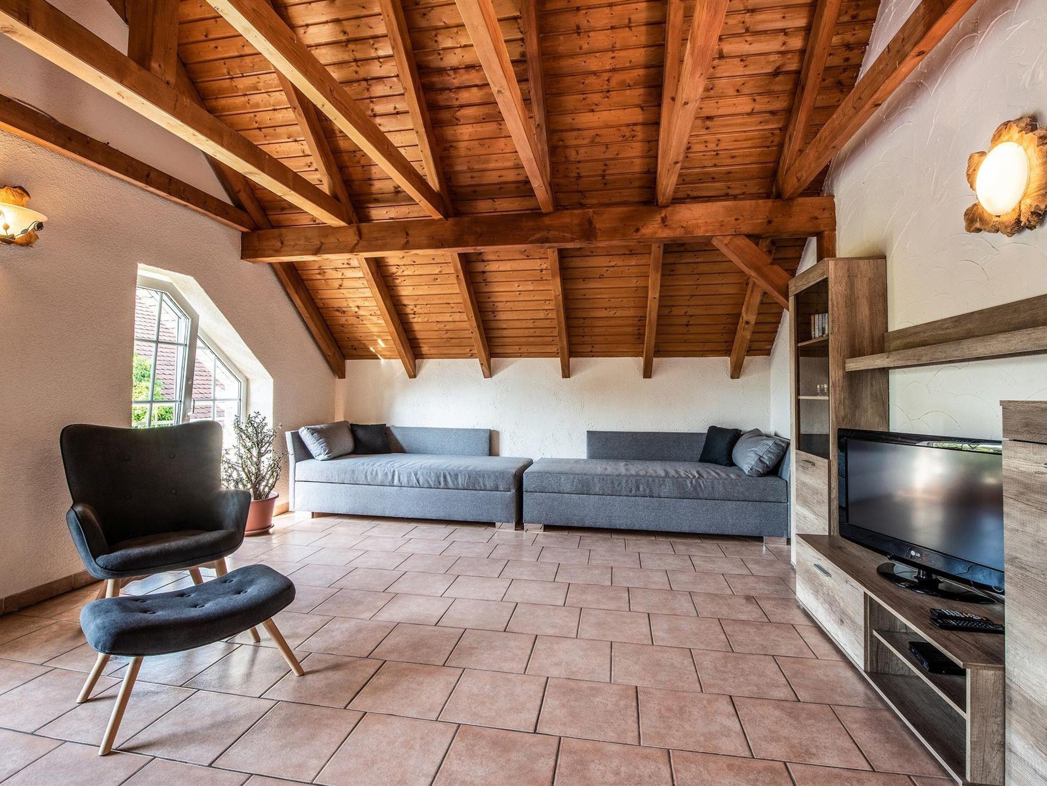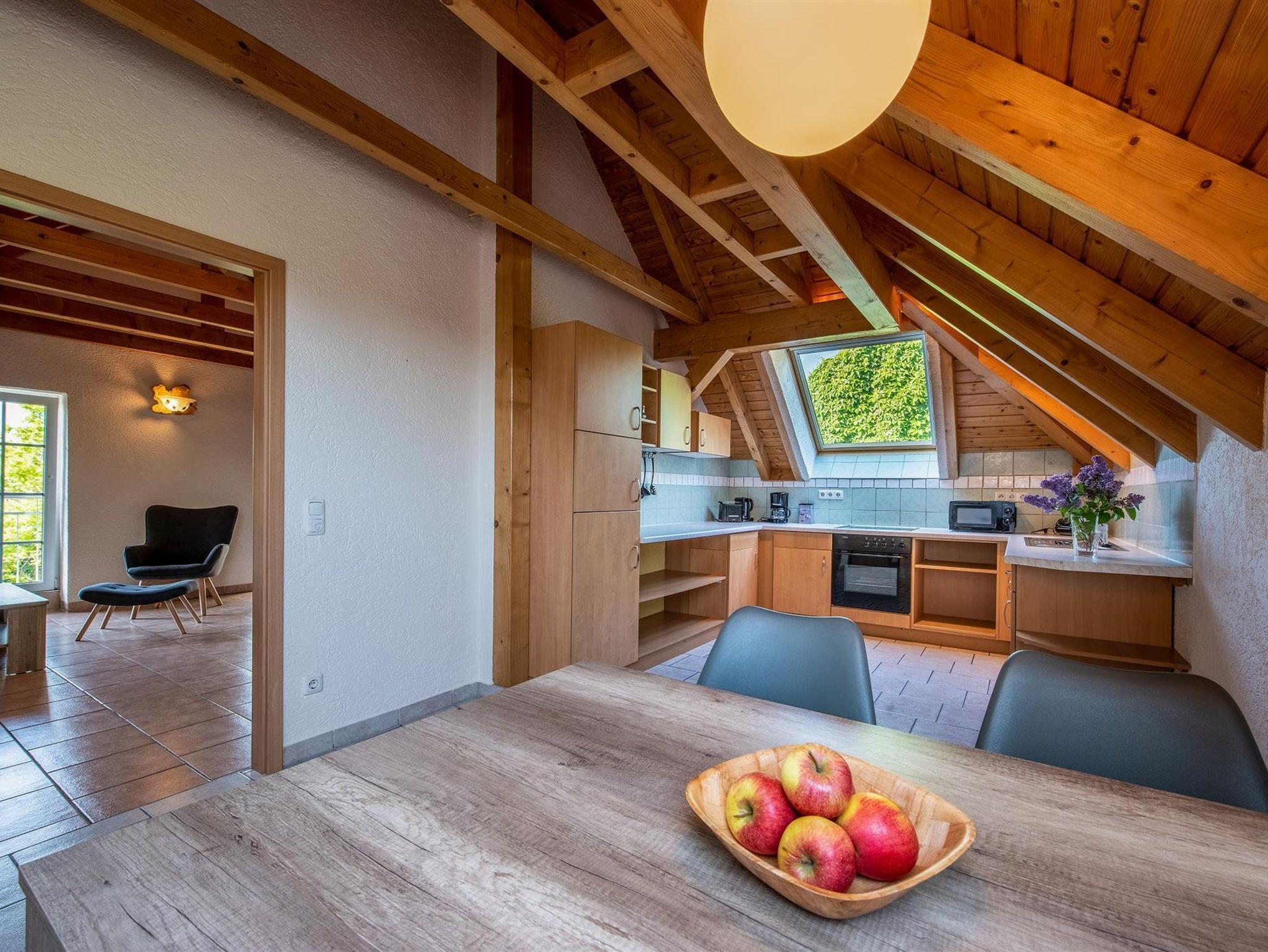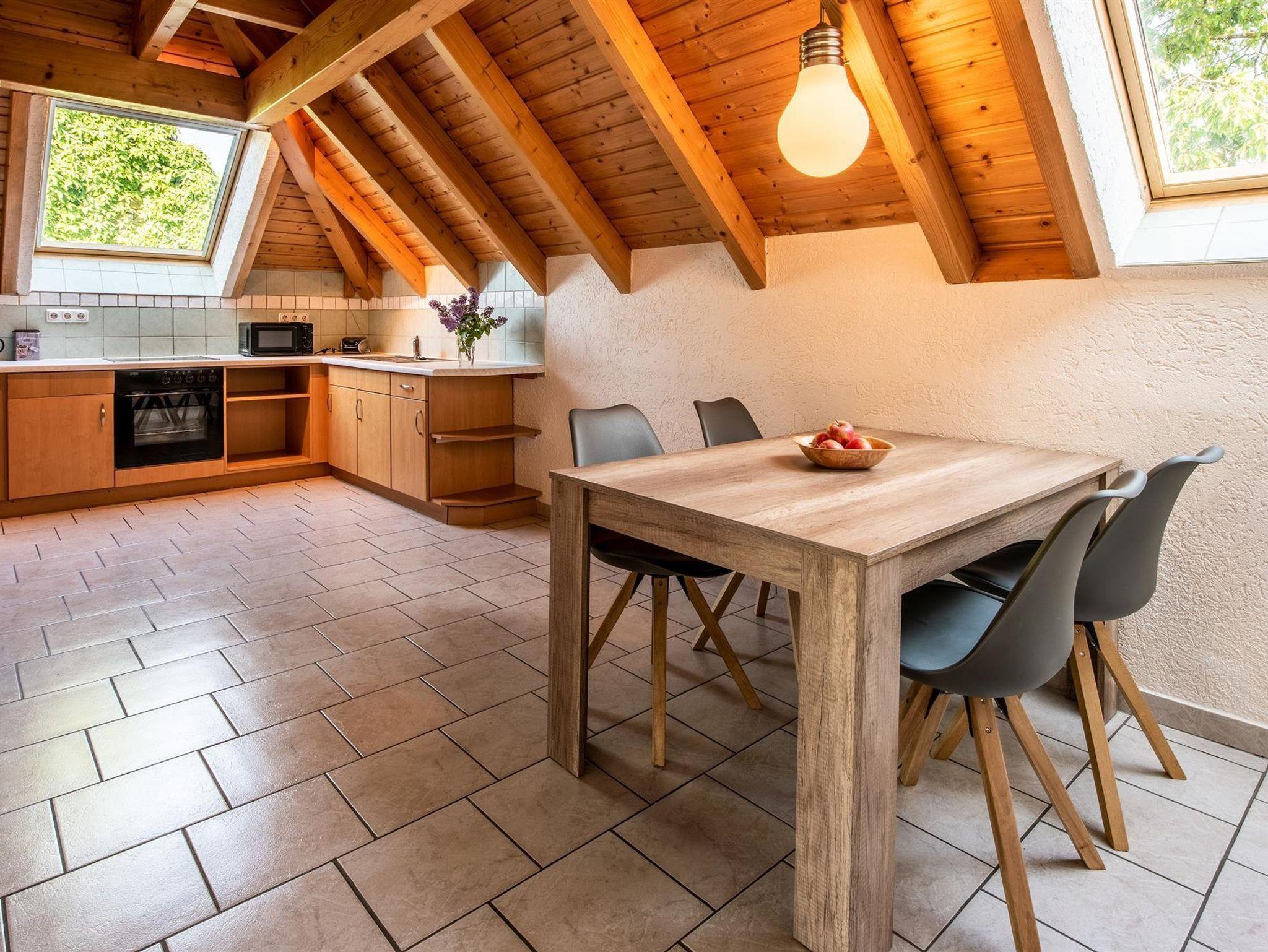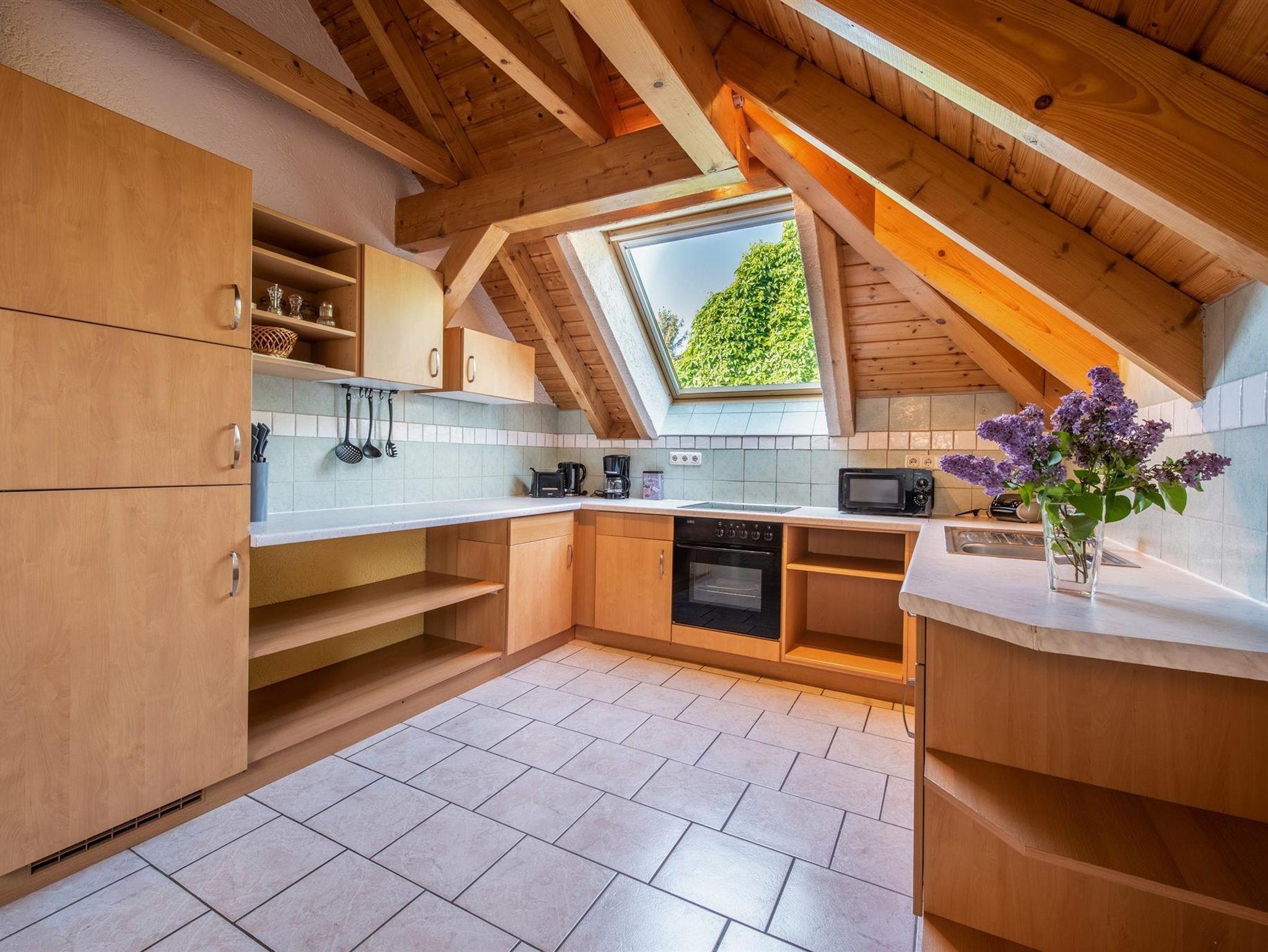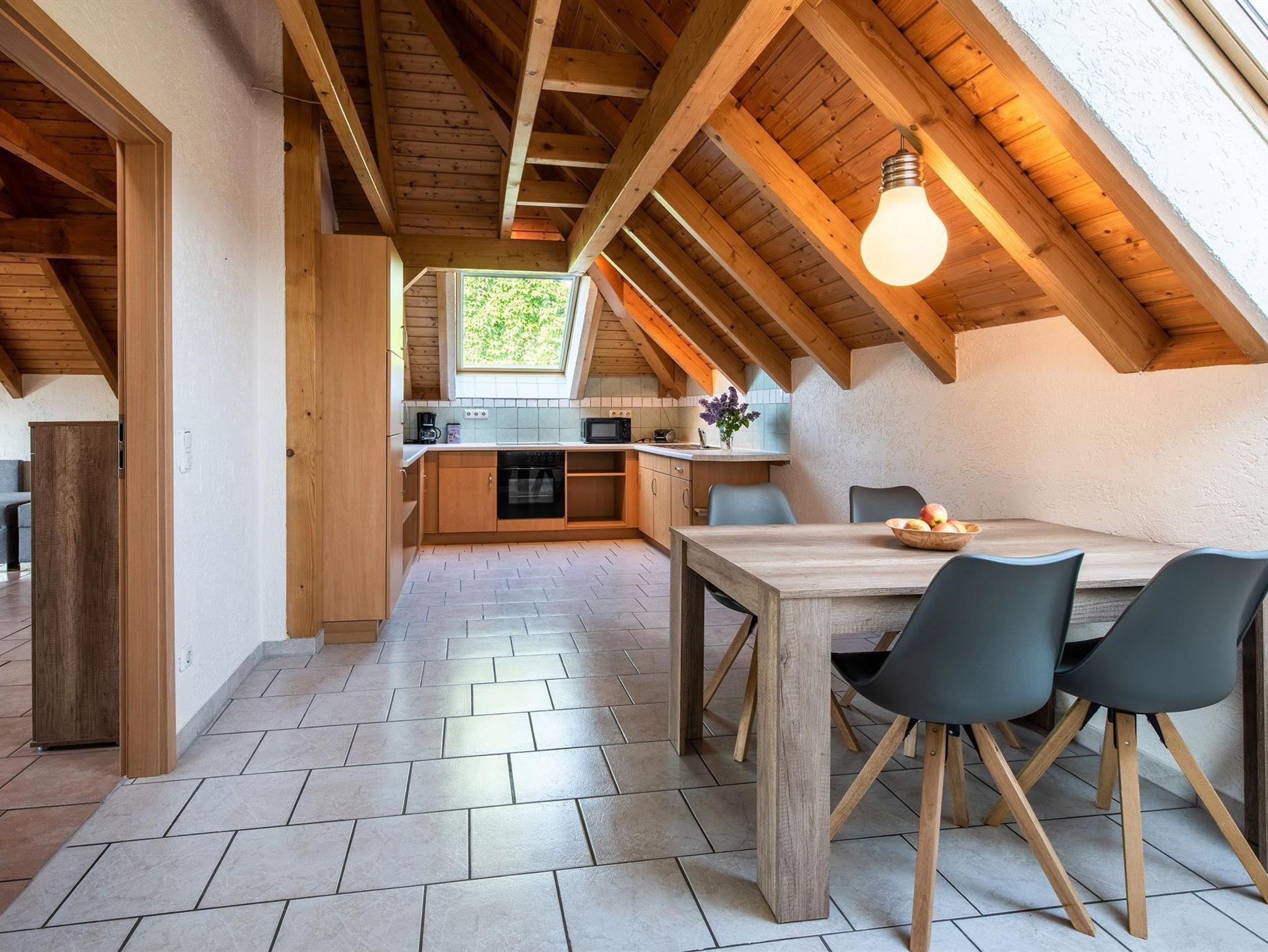 Die ca. 65 m² große Ferienwohnung befindet sich im Dachgeschoss eines Einfamilienhauses und bietet für 4 Personen einen rundum gemütlichen Aufenthalt.