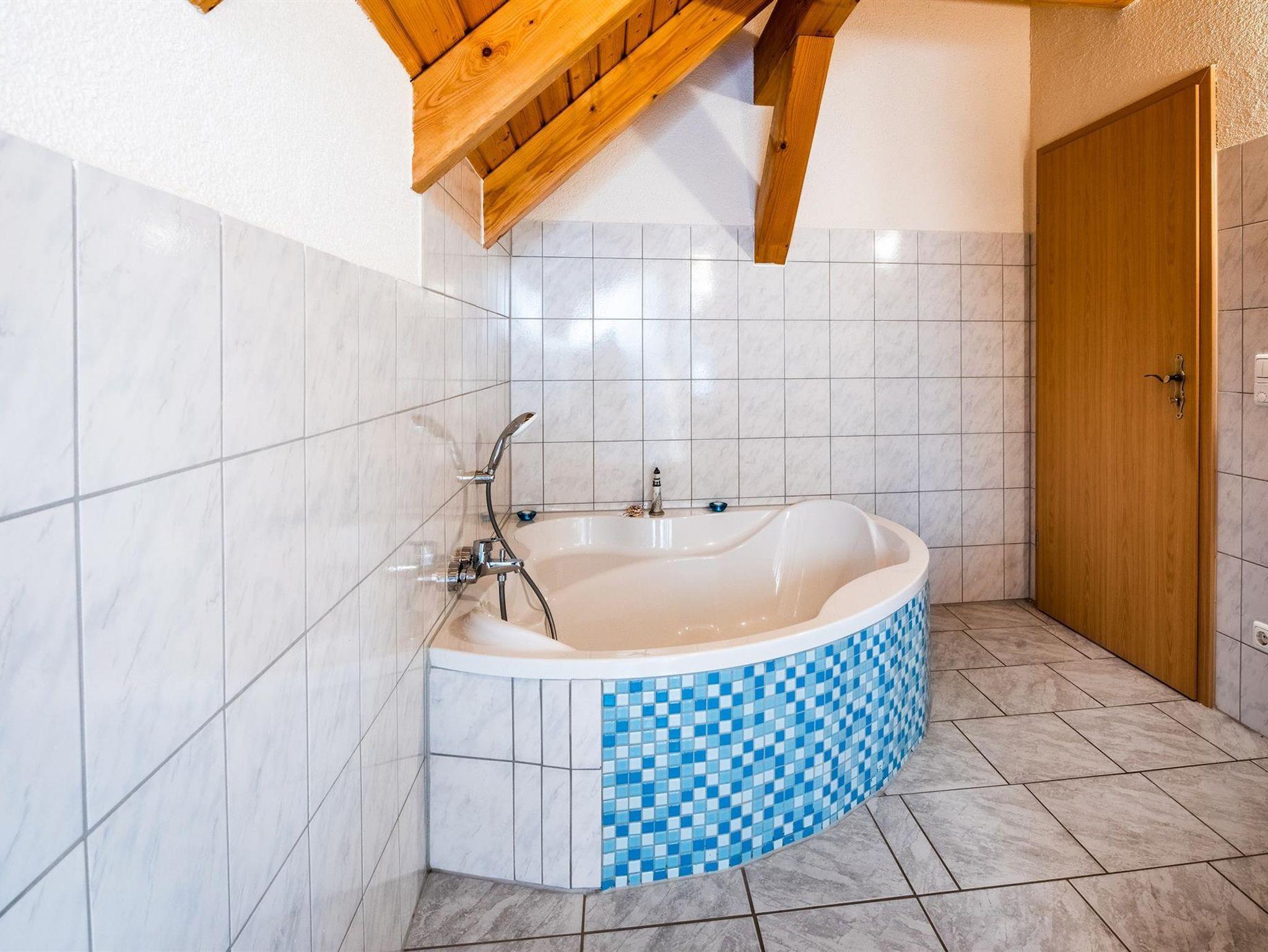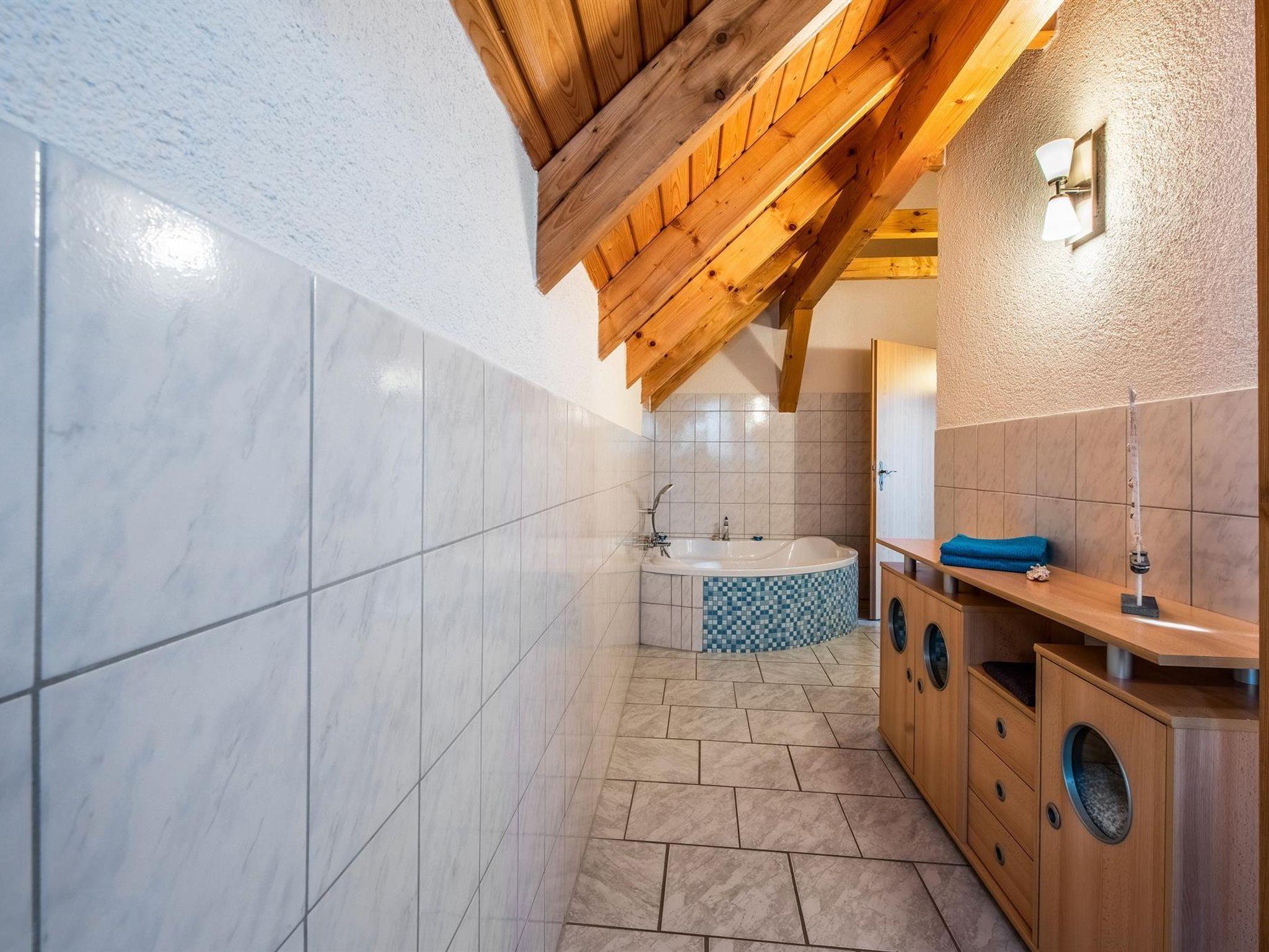 Neben Küche und Bad, sorgt das Wohnzimmer mit Kamin, für eine kuschlige Zeit, die mit Fernsehen, Sofa und zwei Schlafliegen (90×200 cm) ausgestattet ist. Im Schlafzimmer befindet sich ein Kleiderschrank, ein Boxspringbett, welches bei Bedarf zu zwei Einzelbetten auseinander geschoben werden kann. Auch das Bad sorgt für Erholung. Es verfügt über eine Dusche und die Eckbadewanne lädt zum Entspannen ein.