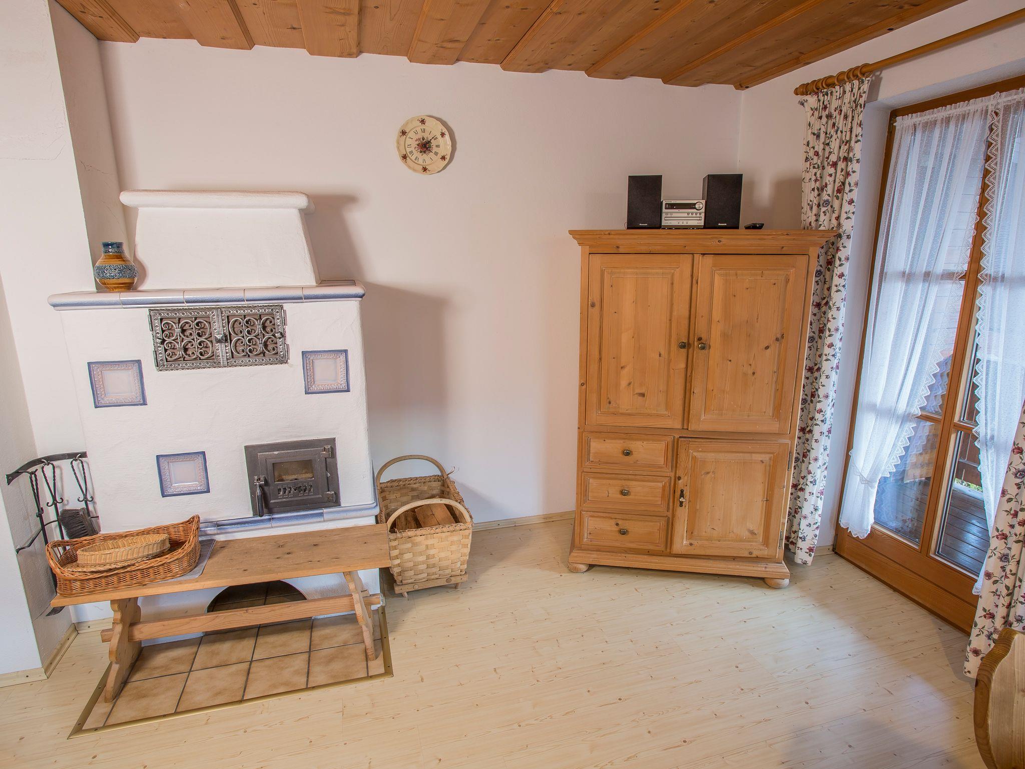 Mit viel Liebe zum Detail eingerichtete Ferienwohnung (75 qm,Balkon, Wohnzimmer mit Kachelofen (Holz steht zur Verfügung), Eßecke, Couch. Separate Küche komplett ausgestattet mit Spülmaschine, Mikrowelle, Kaffeemaschine, Wasserkocher, 4-Plattenherd mit Backrohr, Kühlschrank mit Gefrierfach, Bad mit Badewanne und Dusche, WC separat. Kabel-TV, Telefon, Radio, Stereoanlage und Internet - WLAN kostenfrei nutzbar.