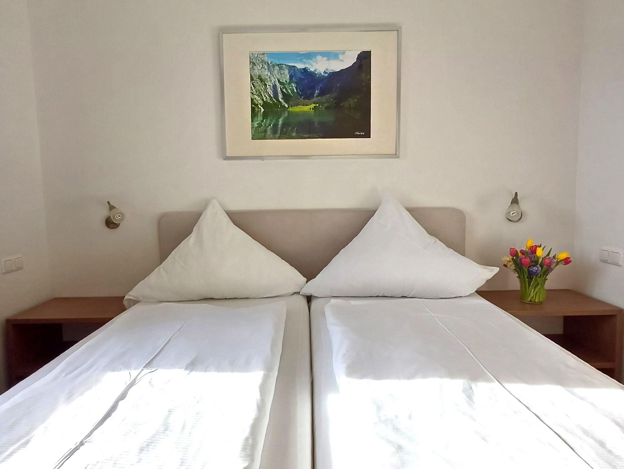 Unsere großzügige Ferienwohnung Predigtstuhl verfügt über 58 qm, 2 Schlafzimmer, Wohnzimmer mit Küchenzeile, Bad mit WC, Sat-TV, Internetanschluss und vieles mehr. Für den 5. und 6. Gast steht auf Anfrage ein bequemes SCHLAFSOFA IM WOHNZIMMER bereit und kann gegen einen kleinen Aufpreis hergerichtet werden. Auf dem möblierten Balkon können Sie sich vom Alltag erholen und den Panoramablick in die Salzburger und Berchtesgadener Berge genießen. Gerne können Sie den Garten nutzen - Liegestühle und Grillmöglichkeit stehen bereit. Kostenloses WLAN und gratis Parkplätze vorhanden.