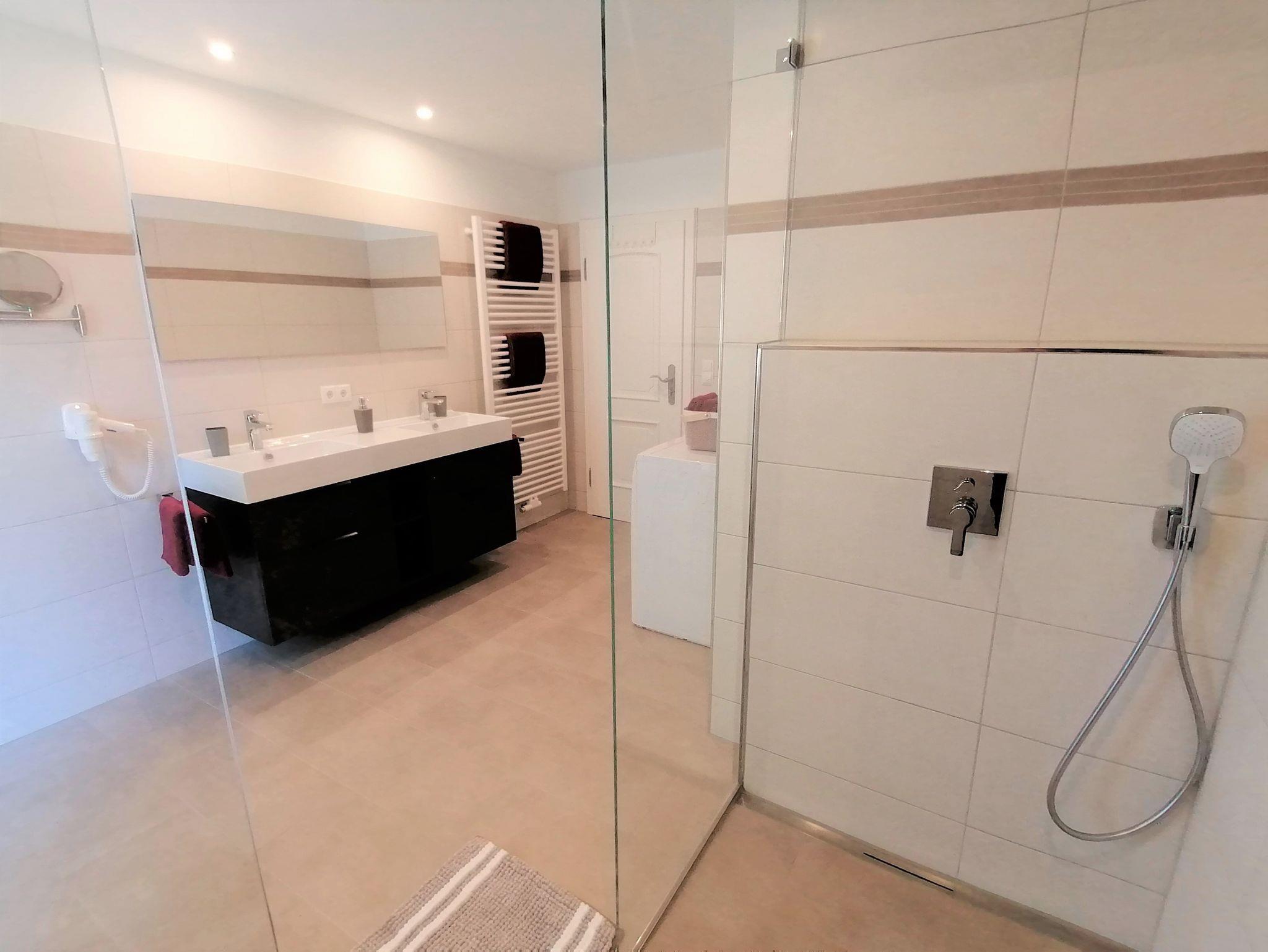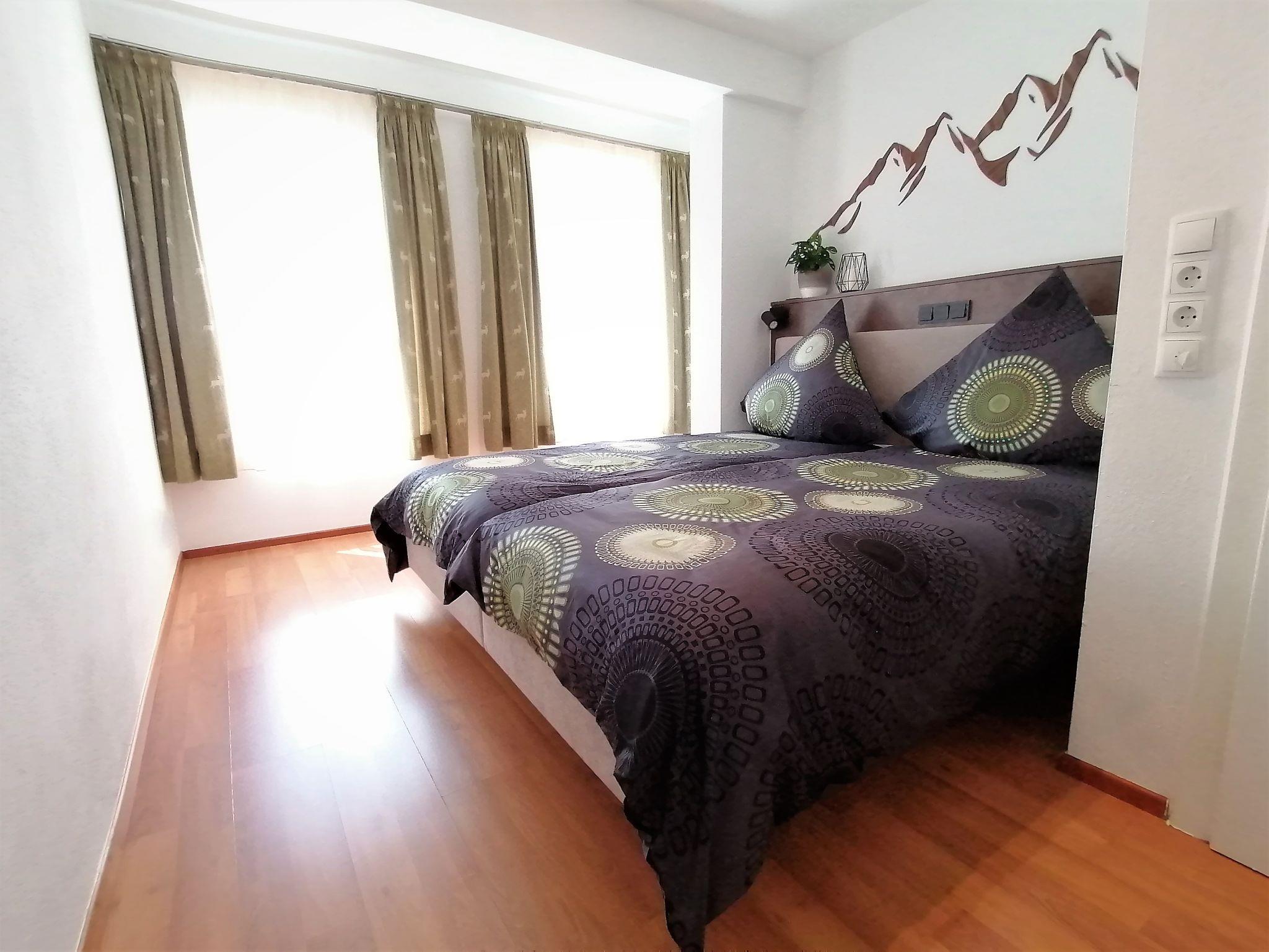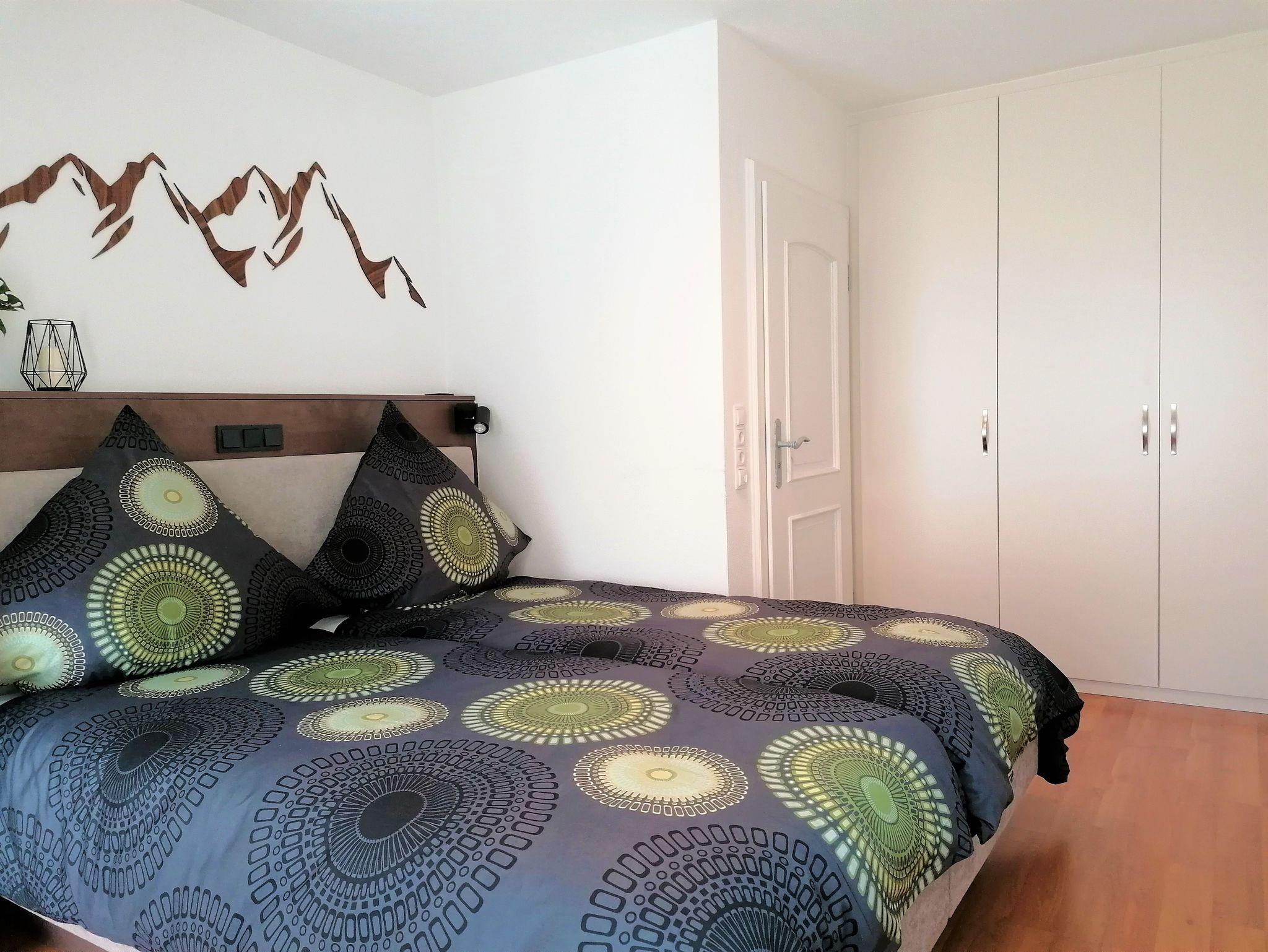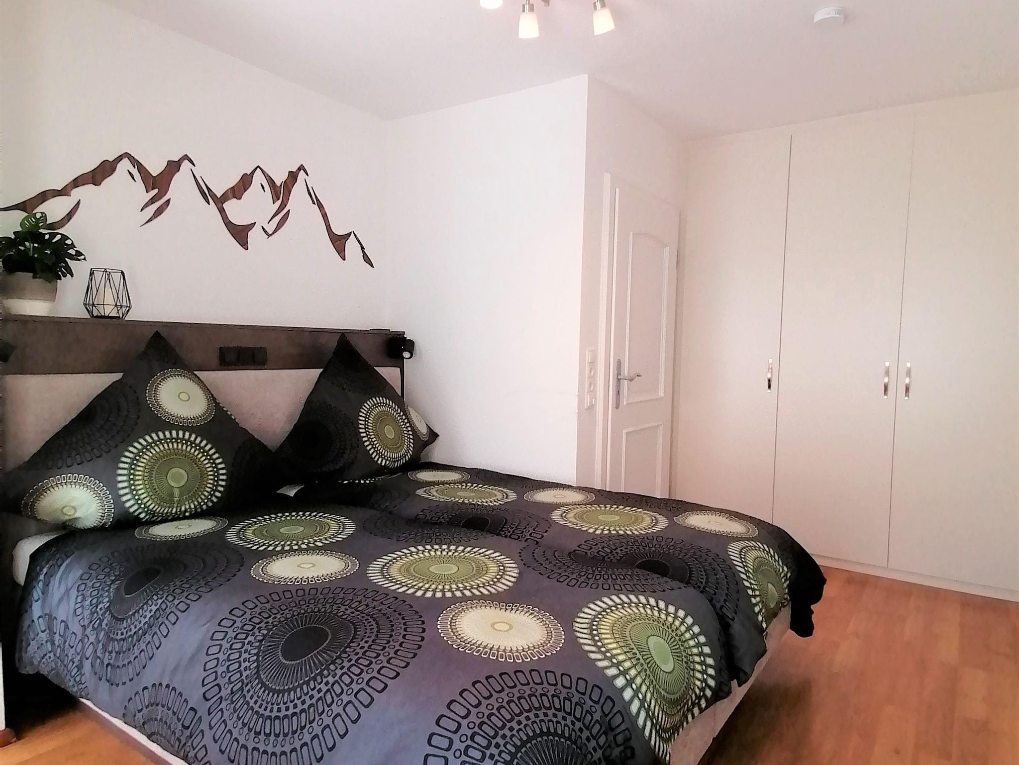 Unsere Ferienwohnung Jenner ist mit 100 qm sehr großzügig geschnitten und für 4 Personen (max. 6 Personen inkl. Schlafcouch) ausgelegt. Die Schlafcouch im Wohnzimmer kann gerne für einen 5. und 6. Gast gegen einen kleinen Aufpreis hergerichtet werden. Die Wohnung verfügt über zwei getrennte Schlafzimmer, wovon jedes mit einem Doppelbett (180x200 cm) ausgestattet ist. Offenes Wohnen mit integrierter großer und umfassend ausgestatteter Küche und einem gemütlichen Essplatz im Erker lässt keine Wünsche offen. Das Tageslicht-Badezimmer verfügt über eine moderne Doppeldusche mit Regenduschen & Glaswand und ein Doppelwaschbecken. Das WC ist separat. Waschmaschine und Trockner stehen Ihnen in der Ferienwohnung zur freien Verfügung. Vom möblierten Balkon lässt sich die wunderbare Aussicht genießen. Insgesamt hat die Wohnung Jenner 2 Balkone. Gerne können Sie den Garten nutzen - Liegestühle und Grillmöglichkeit stehen bereit. Kostenloses WLAN und gratis Parkplätze vorhanden.