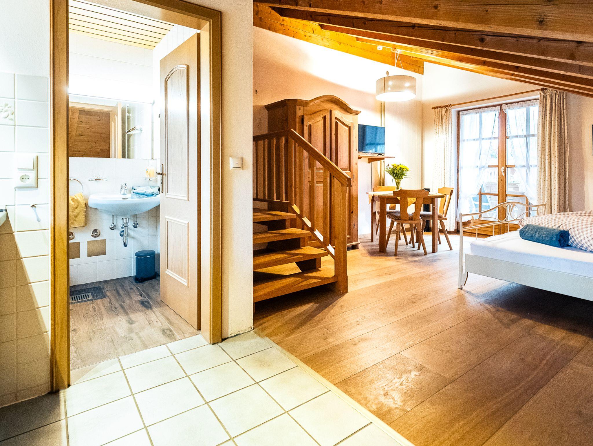 Auf dem Balkon sitzen, in die Sonne blinzeln, der Stille der Natur lauschen und sich an der Blumenpracht erfreuen so träumerisch kann Urlaub in unserem zentral gelegenen Haus mit 4 gepflegten Ferienwohnungen sein. Unser Haus liegt zentral im Ortsteil Aufham in der Gemeinde Anger gelegen und bietet neben einem grandiosen Bergblick in die Berchtesgadener Alpenwelt direkten Zugang zu Wander- und Bergausflüge in die heimischen Berge. Auch Rad- und Mountainbiketouren können direkt von unserem Haus aus gestartet werden. Durch die zentrale Lage erreichen Sie auch Einkaufsmöglichkeiten und die örtliche Gastronomie in wenigen Gehminuten. Das örtliche Freibad befindet sich nur zehn Gehminuten entfernt.