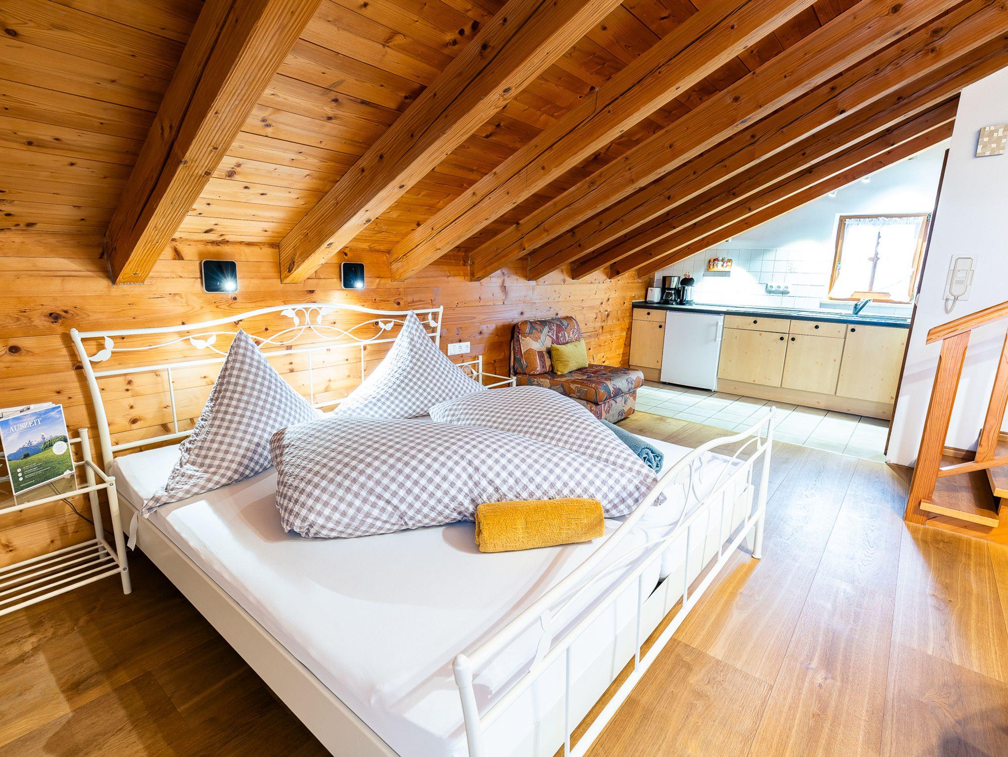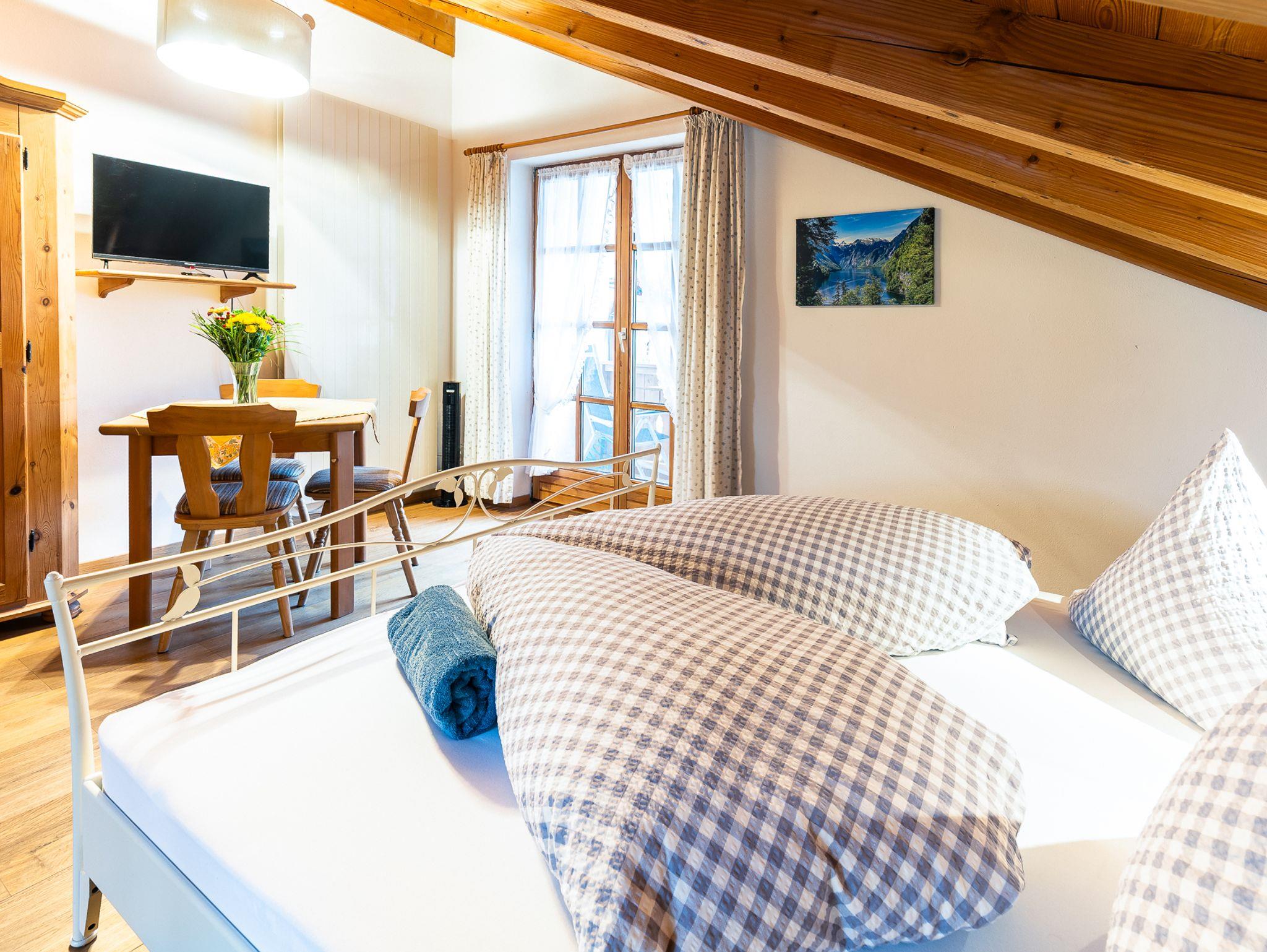 Unsere Ferienwohnung verfügt über einen Balkon mit einer gemütlichen Sitzgelegenheit im Freien. Bettwäsche, Hand-, Dusch- und Geschirrtücher sowie WC-Papier sind in der Ferienwohnung bereit gestellt. In allen Appartements gibt es eine Kochgelegenheit und einen Kühlschrank. Ausserdem sind Geschirr, Gläser, Kaffeemaschine und -filter, Eierkocher und Toaster vorhanden. Im kombinierten Wohn-/Schlafraum finden Sie ein Doppelbett und eine gemütliche Essecke mit einem Fernseher für gemütliche Stunden.