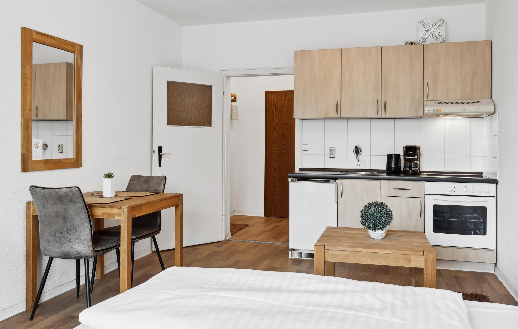 Med sin enkle, men funktionelle indretning og lyse værelser, inviterer lejligheden til at slappe af i hyggelige omgivelser. Placeringen er ideel til mange aktiviteter. Styrk jer selv med en lækker morgenmad, før I begiver jer ud for at udforske området. Nyd et par solstråler på balkonen, eller afslut en vidunderlig dag udendørs.