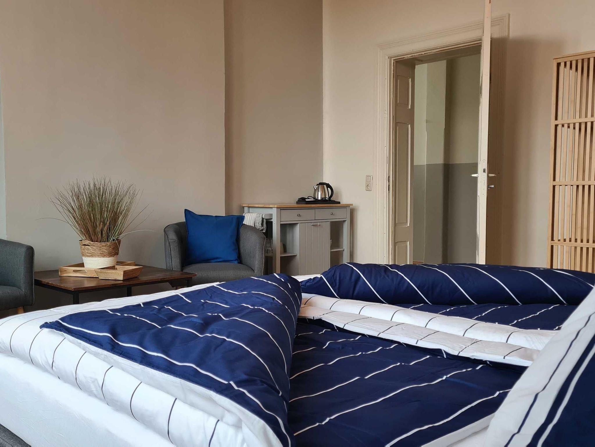 Erstausstattung Bettwäsche und Handtücher im Preis enthalten.