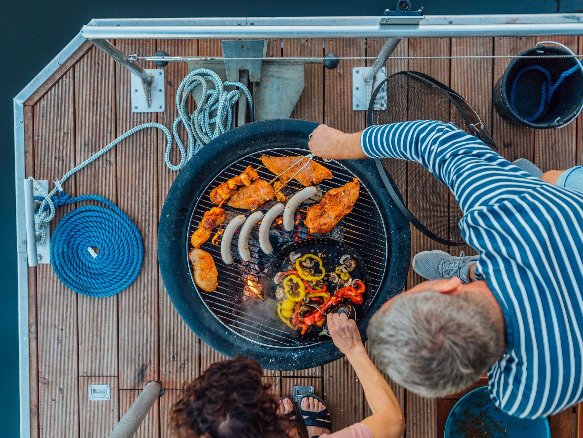 Die überdachte Terrasse lädt an lauschigen Abenden zum Sitzen im Freien ein. Sonnenhungrige finden ein separates Sonnendeck zum Entspannen. Wem es abends zu kühl ist, der heizt die zugehörige Feuerschale an oder die im Hausboot befindliche Gasheizung.
