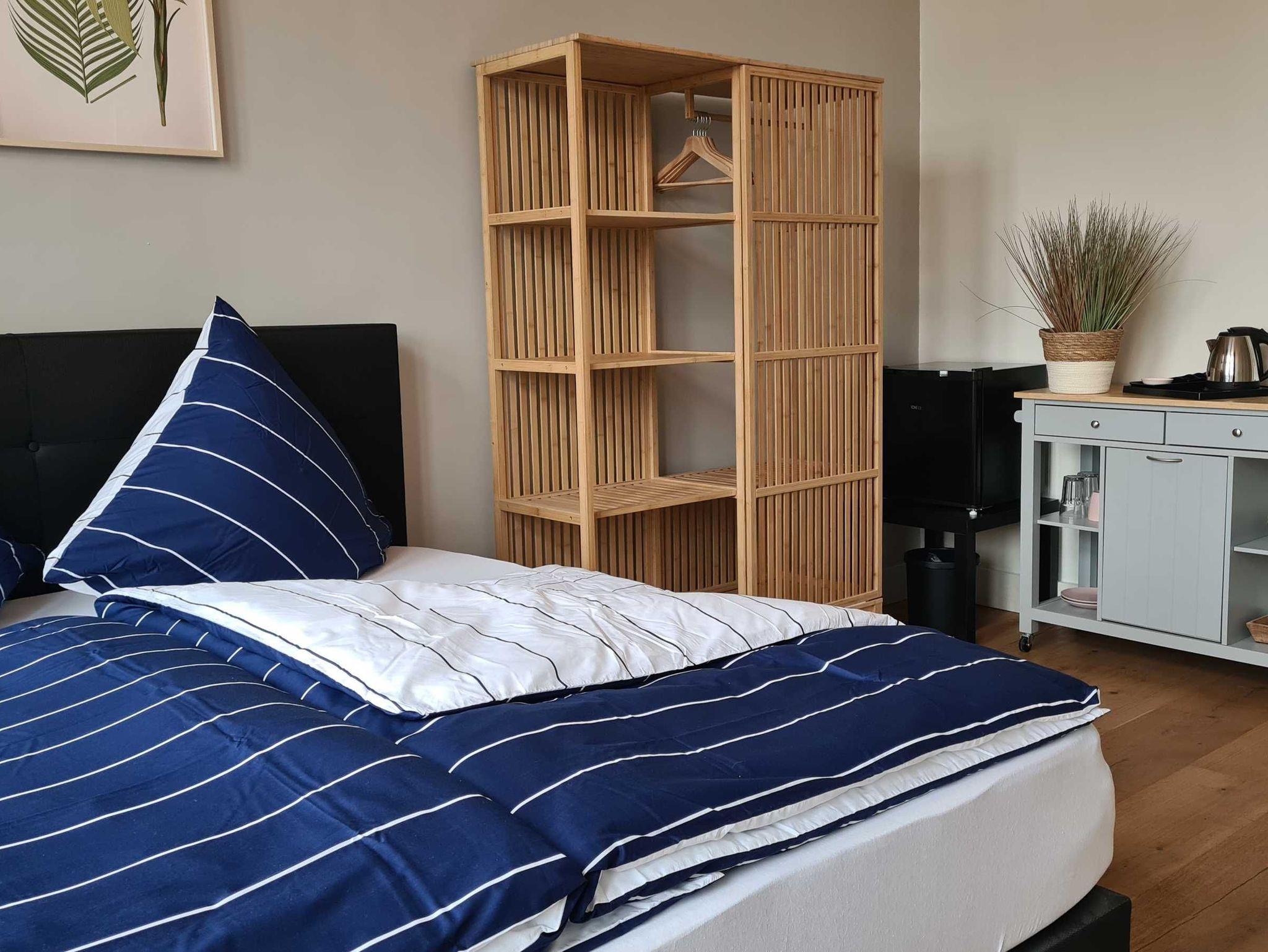 Alle Zimmer Nichtraucherzimmer mit Boxspringbett (Doppelbett), Flachbett-TV, Smart-TV, W-LAN, Duschbad/ WC, Minikühlschrank, Wasserkocher und Geschirr
