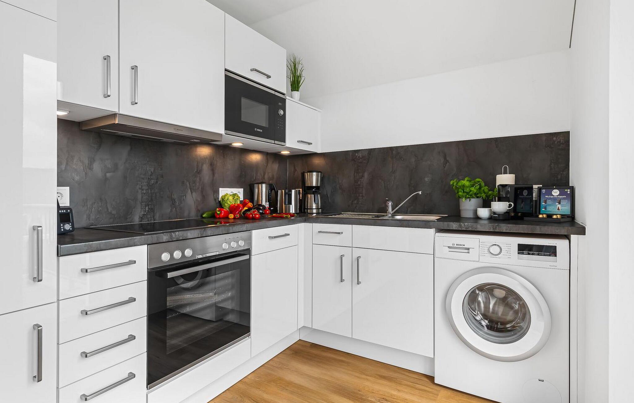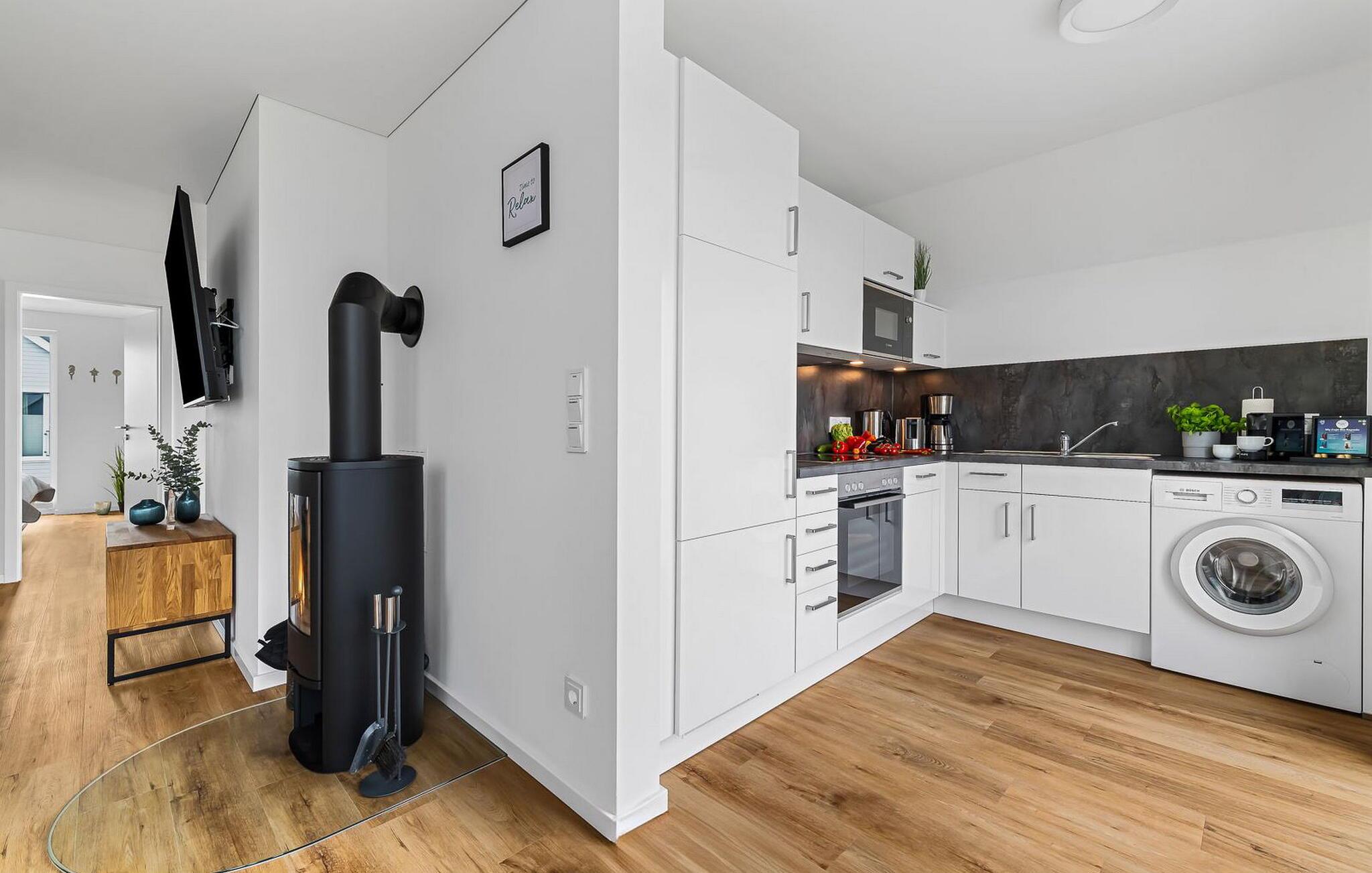 Det rummelige, veludstyrede køkken inviterer dig til at tilberede kulinariske delikatesser og nyde måltider sammen på terrassen. Eller vil du hellere holde en grillaften med havudsigt?