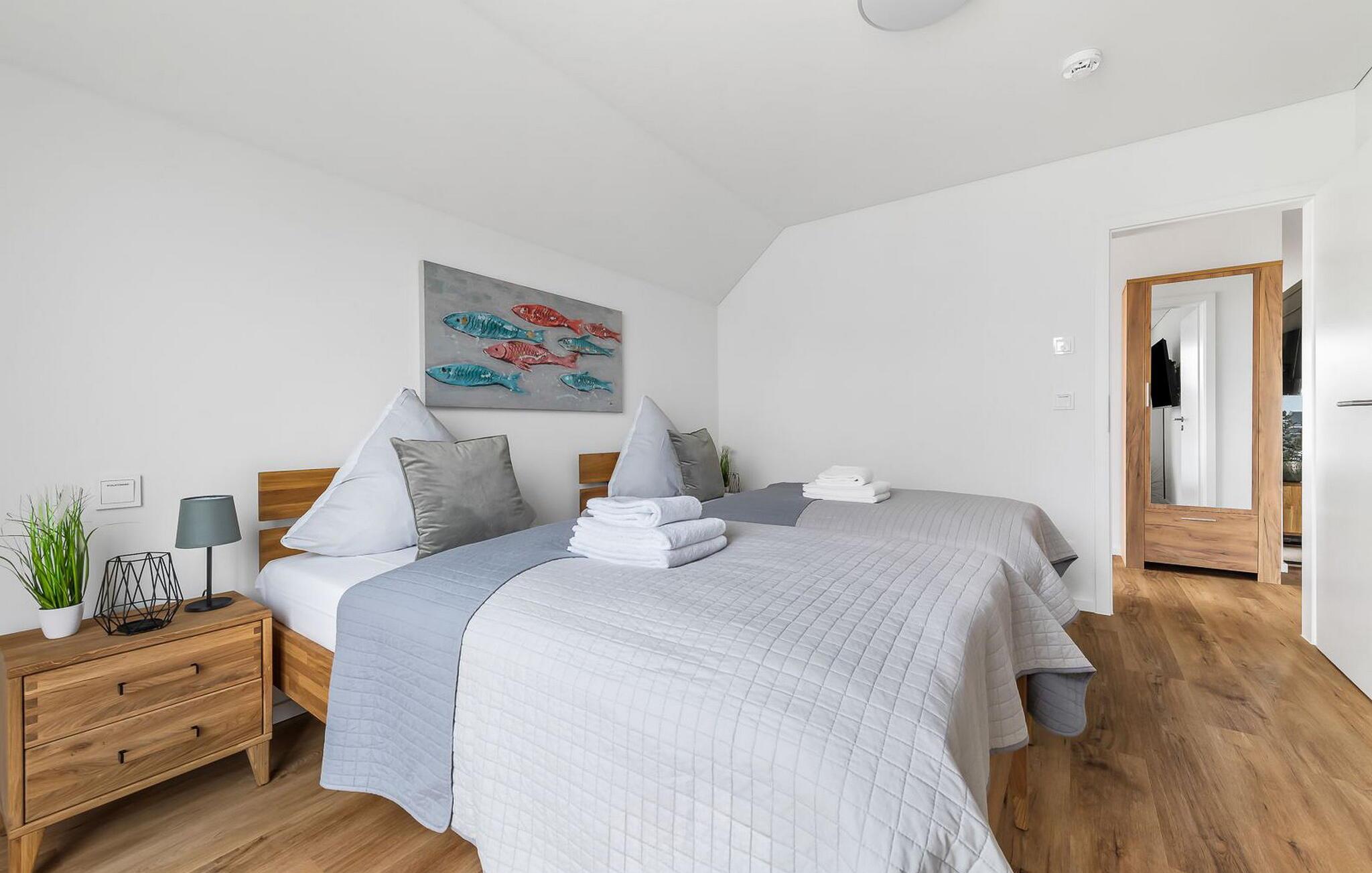 Komfortable senge og store smart-tv'er venter på dig i de to stilfuldt designede soveværelser. Det store soveværelse har en komfortabel dobbeltseng, mens det andet soveværelse har to enkeltsenge.
