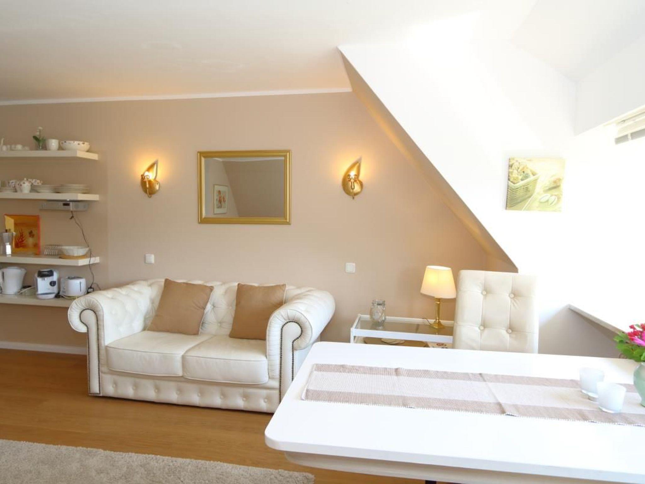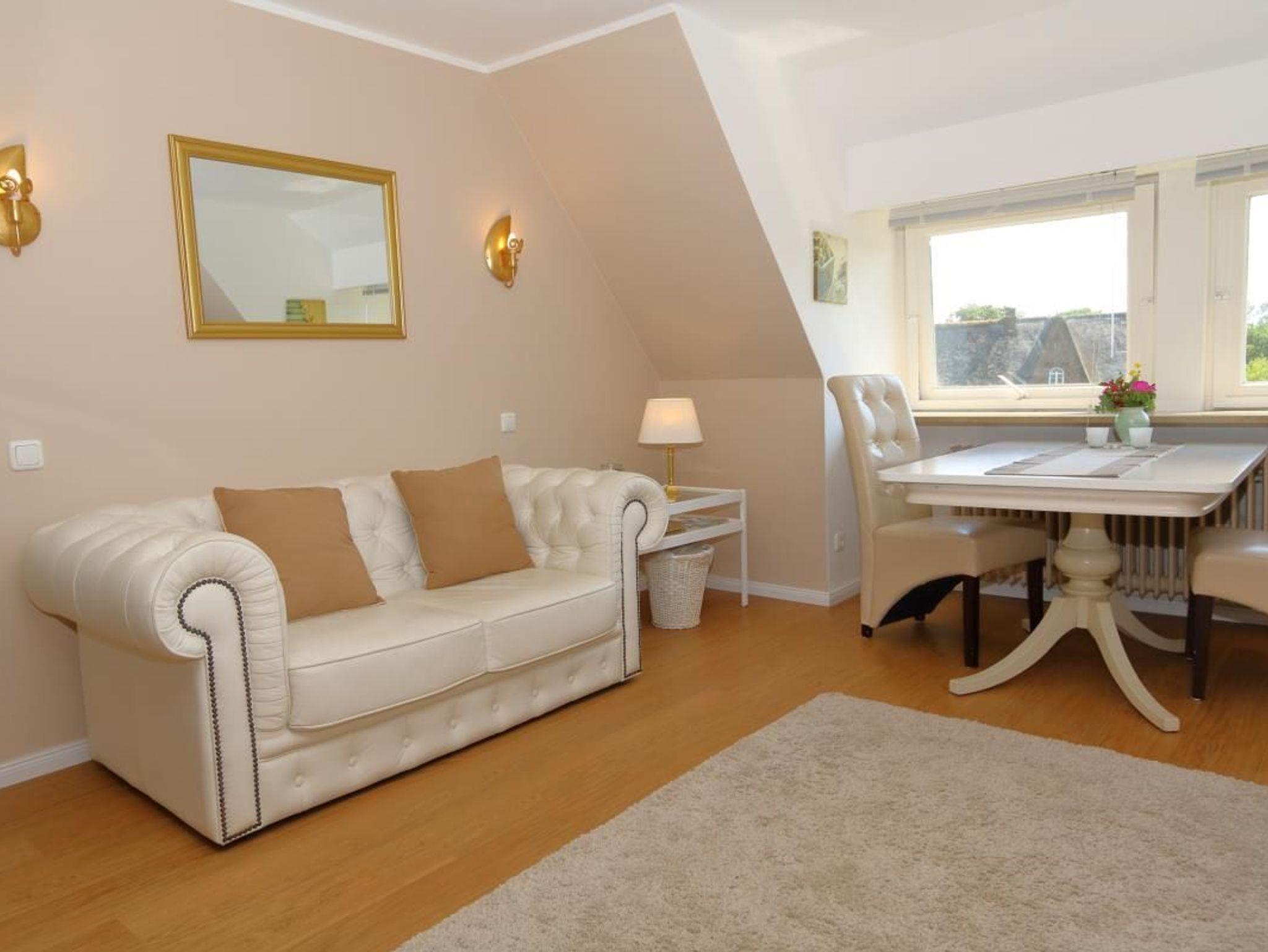 Das Wohnzimmer hat eine Schlafcouch und den Essplatz. Eine neue vollausgestatte kleine Küche mit Geschirrspülmaschine, Mikrowelle/Backofen/Grill und Ceranfeld ist vorhanden. Im Schlafzimmer steht ein Doppelbett. Von hier gelangt man in das Duschbad. Die Einrichtung ist sehr gemütlich im Landhausstil gehalten. Im Garten stehen Strandkorb und Gartenmöbel.