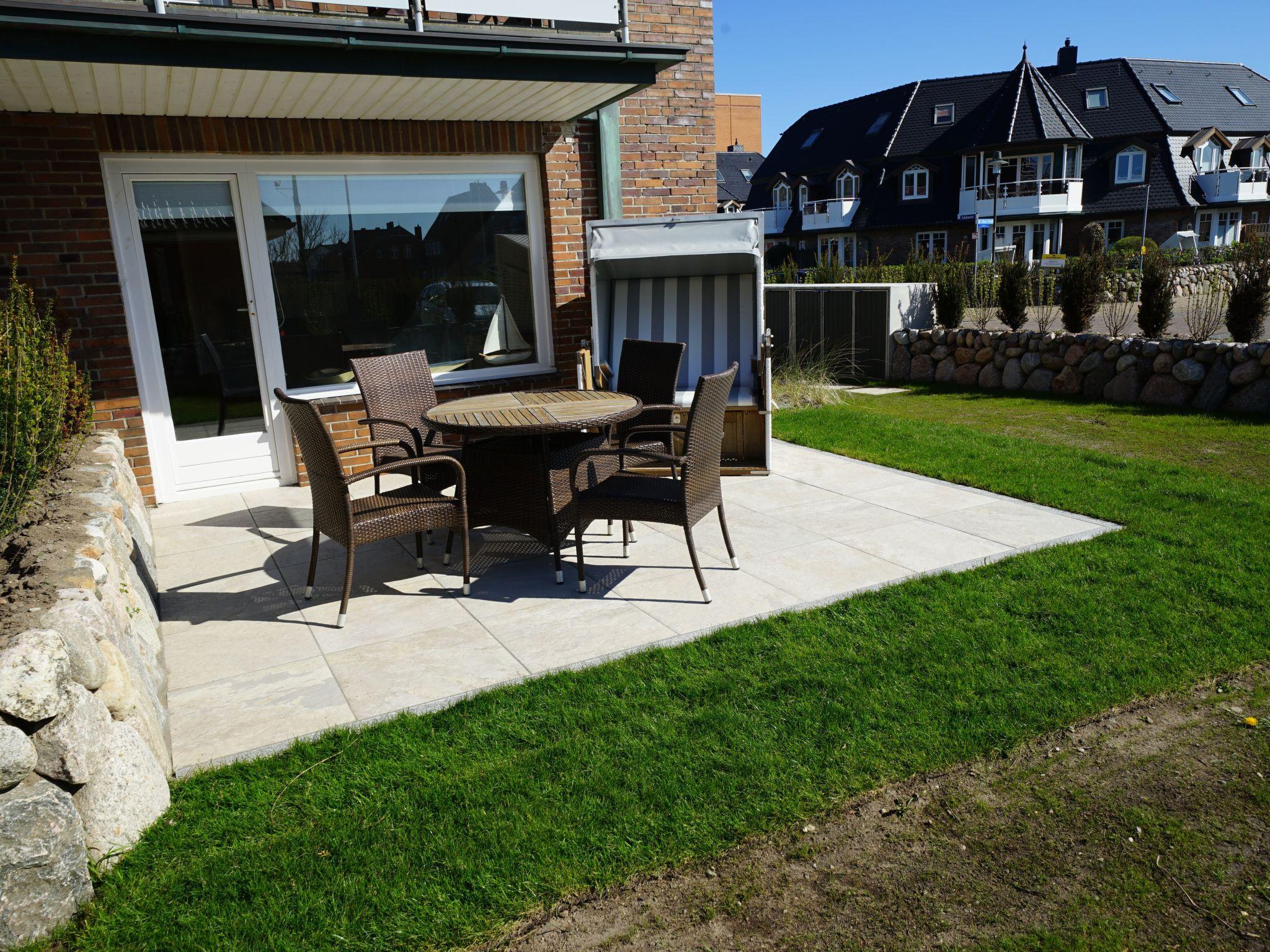 Outside, the sunny terrace invites you to spend relaxing hours in the open air. The feel-good experience is completed by a beach chair in the communal garden as well as a table and chairs, which invite you to linger and enjoy. Although barbecues are not permitted, this area offers plenty of opportunity to enjoy the fresh air and peace and quiet.