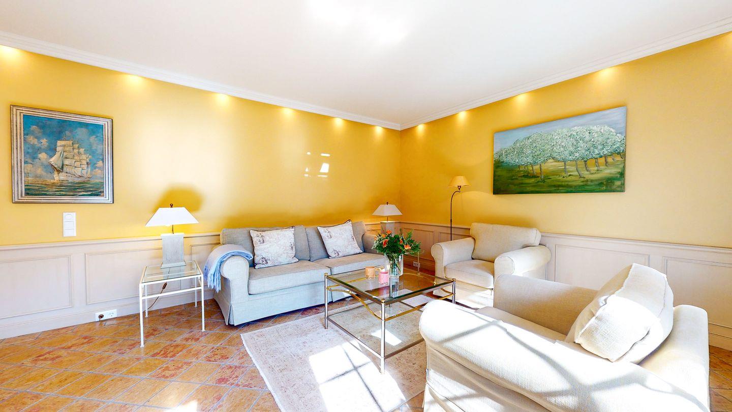 Der gemütliche Wohnbereich überzeugt mit einem