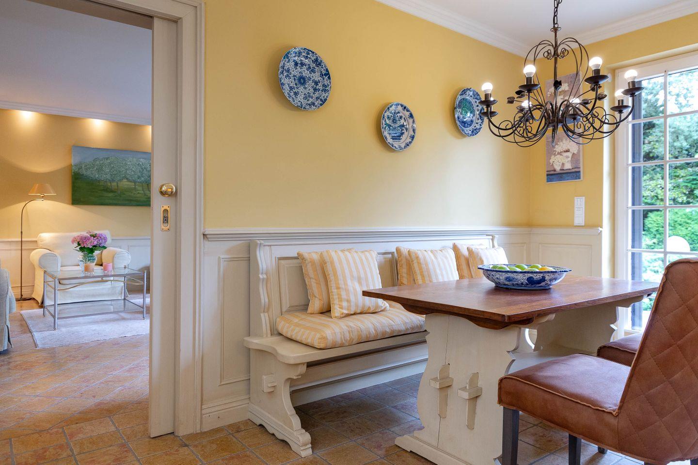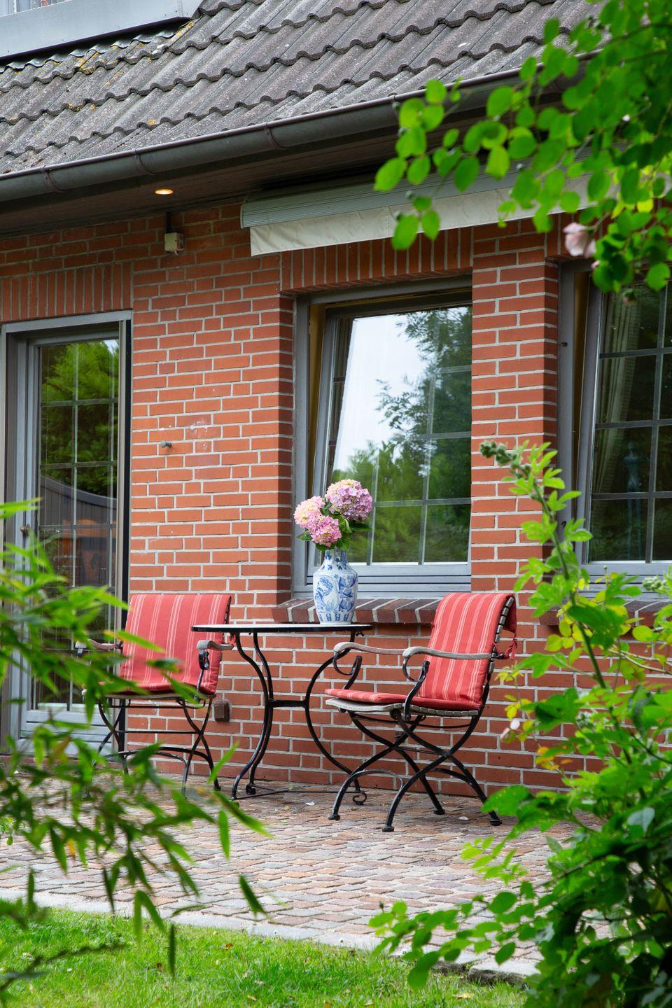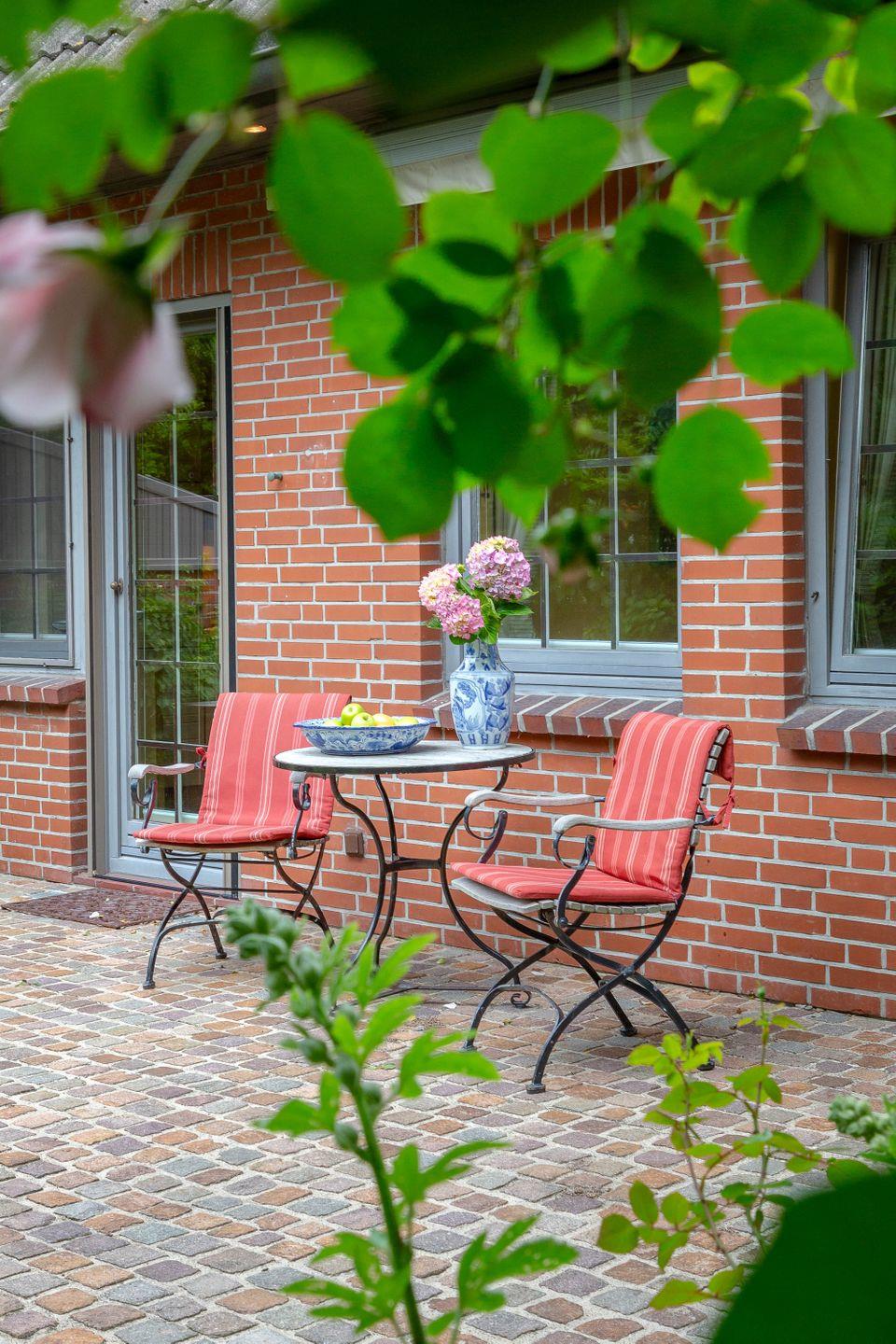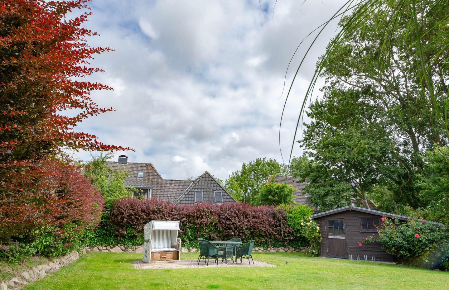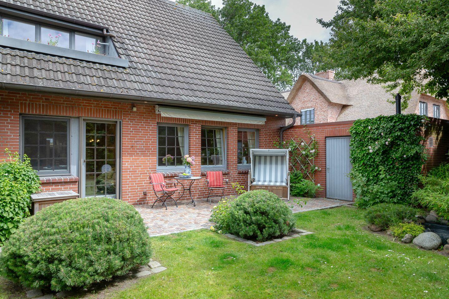 Das Erdgeschoss des Biberhüs bietet unglaublich viel Raum für ein nettes, entspanntes Duett. In großzügigen, weitläufigen und mit bequemen, hochwertigen Polstermöbeln und schönen Holzeinbauten ausgestatten Zimmern können Sie sich so nah sein wie möglich und so viel Platz beanspruchen wie nötig für die perfekte Erholung in totaler Harmonie. Der helle, beheizbare Marmorboden und die attraktive Innenarchitektur mit den Sylter Holzvertäfelungen, modernem Marmorbad, der modernen Malerei von Waltraut Ewe, den alten, friesischen Wandtellern sowie der nicht einsehbare kleine Garten in Südlage mit zauberhaftem Teich und Wasserspielskulptur tragen gern ihren Teil dazu bei. Genauso, wie das ländlich-ursprüngliche Umfeld des Dorfes, zu dem die riesige gemütliche Wohnküche im Landhausstil perfekt passt. In den Schlafräumen, die mit französischen Polsterbetten und altem Spiegel ausgestattet sein, werden Sie sich sehr wohl fühlen. Genießen Sie die Ruhe auf der herrlichen Terrasse mit Garpa-Möbeln und Standkorb oder am Teich mit Wasserspiel und Boulevard-Möbeln.