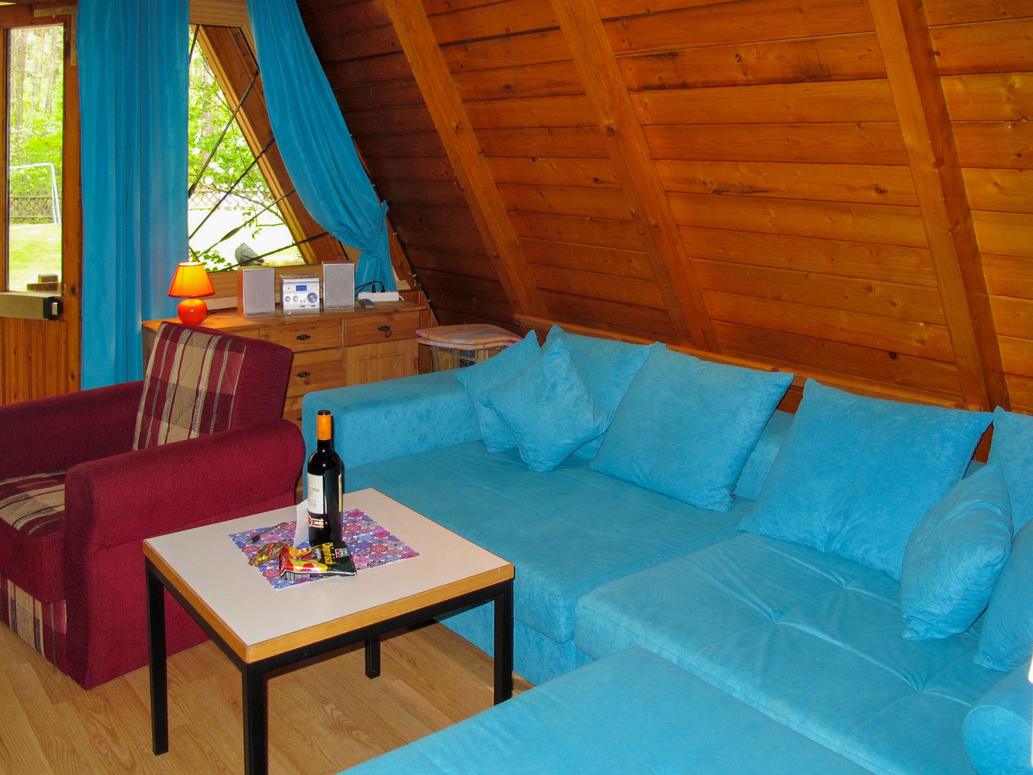 Cosy timber house "Nepumuk". On the outskirts, 1 km from the centre of Arendsee, 200 m from the lake, 200 m from the beach, in the woods. For shared use: property (fenced). Table tennis, children's playground (swing). In the complex: washing machine (extra), tumble dryer (for shared use, extra), bicycle rental. Motor access (via unmade road). Public parking 250 m extra. Grocery 500 m, supermarket 1 km, restaurant 300 m, bus stop "Arendsee, Strandbad" 400 m, railway station "Seehausen" 18 km. Minigolf 500 m. Please note: car recommended. Groups of teenagers on request only. The owner lives on the same property. The photograph shows a typical example. Neighbourhood highly sensitive to noise. Quietness and good behaviour expected. The total of 7 wooden roof holiday homes are located in a small holiday complex, 200 m away from the Arendsee lake, which offers a beach, boat rentals and steamboat trips (extra).