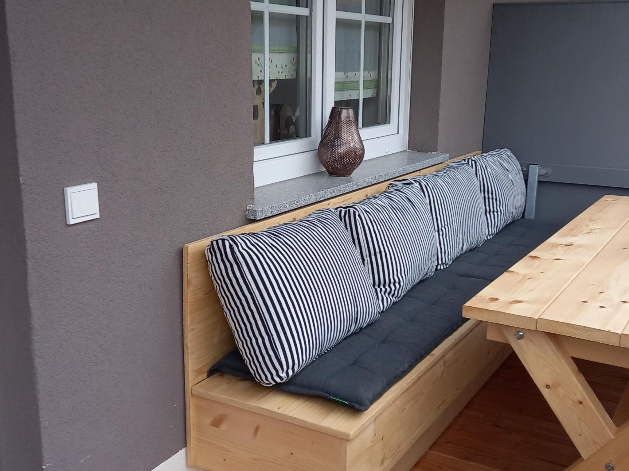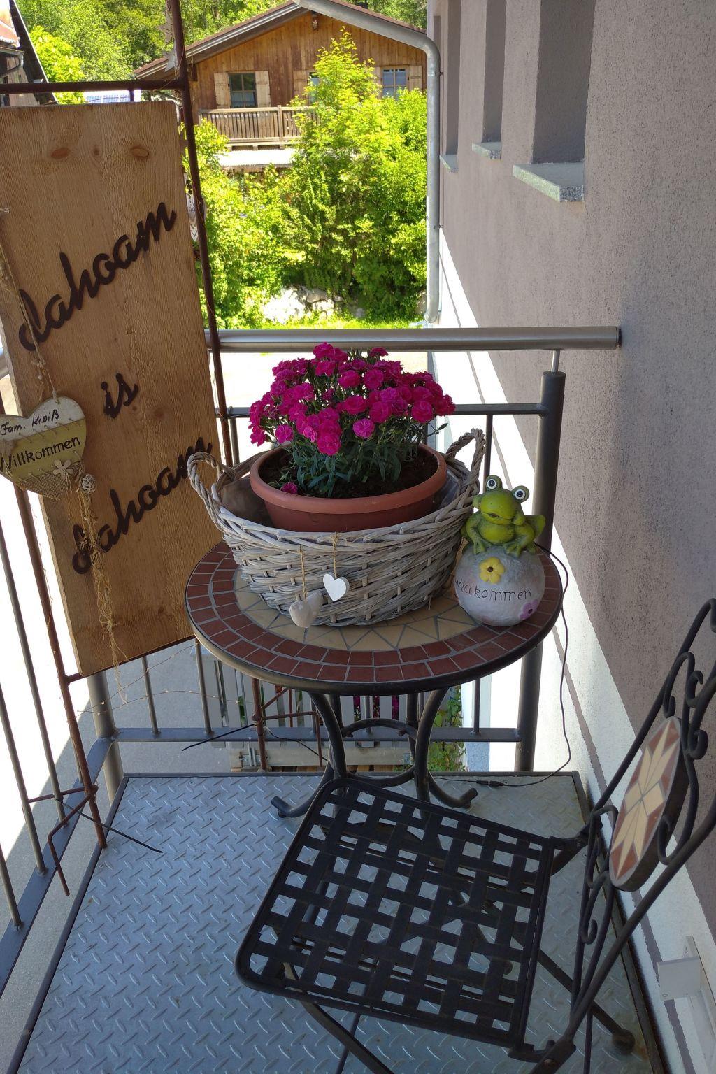 You have direct access from the living room to your balcony, which is currently furnished with a rustic wooden table set made by a carpenter and a lounge corner. A free parking space is directly in front of the staircase, if more cars belong to the flat, there is another large free car park around the corner of the house. An open outside steel staircase leads to the front door, which you share with us landlords, many dogs do not go outside stairs with open steps, so please pay attention when booking this flat. The 5*star holiday flat Orchidee on the ground floor is almost the same size, and only accessible with 7 stone steps, this would then be a good alternative!