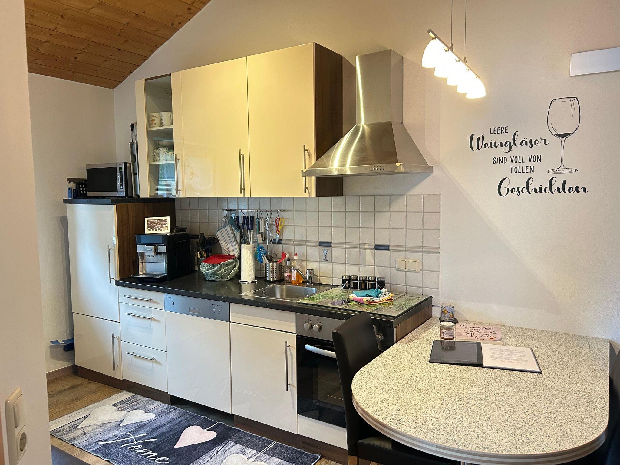 Fühlen Sie sich wohl in unserer 4*Ferienwohnung Wintergarten, mit eigenem Hauseingang und Direktzugang zum Garten, geeignet für 2-3 Personen. Dieser Wohnung haben wir deshalb den Namen gegeben, da diese eine Wintergarten ähnliche Fensterfront im Wohnzimmer bietet. Die Wohnung, modern und mit einem Hauch Romantik ausgestattet, ist sehr beliebt für Paare jedes Alter. Auch Einzelpersonen fühlen sich darin sehr wohl. Vom Gästehausschuh bis zum Regenschirm, Sie ist von A-Z voll ausgestattet, Sie brauchen nur Ihre persönlichen Sachen! Da keine Teppiche vorhanden sind, das heißt nur wischbare Böden, haben wir keine Probleme mit Hunden.