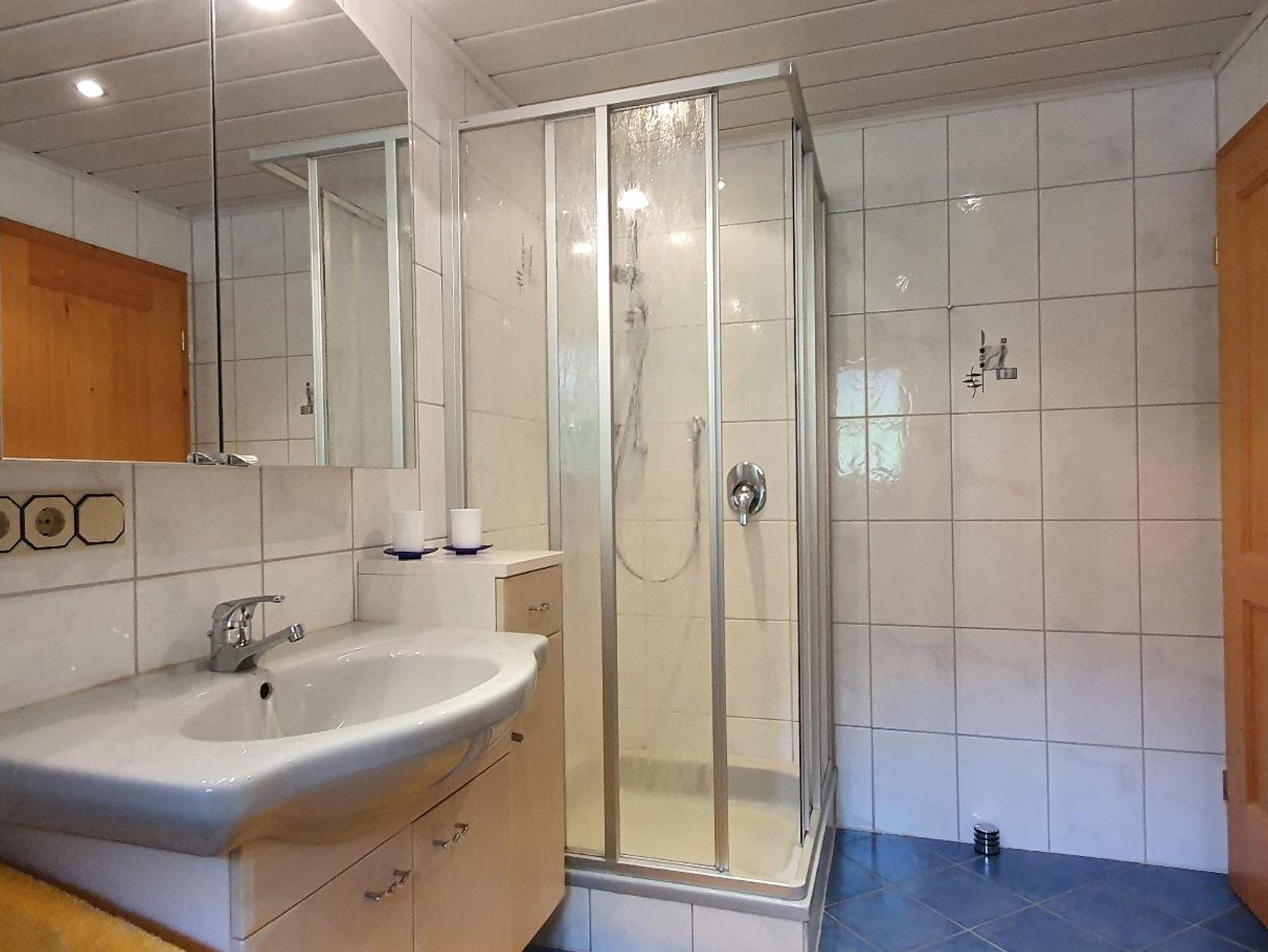 Ein geräumiges Bad mit Dusche/ WC und Föhn steht zur Verfügung. In der Küche befinden sich eine Kaffeemaschine, einToaster, ein Wasserkocher, ein Eierkocher, eine Brotmaschine, ein Backofen mit Cerankochfeld.