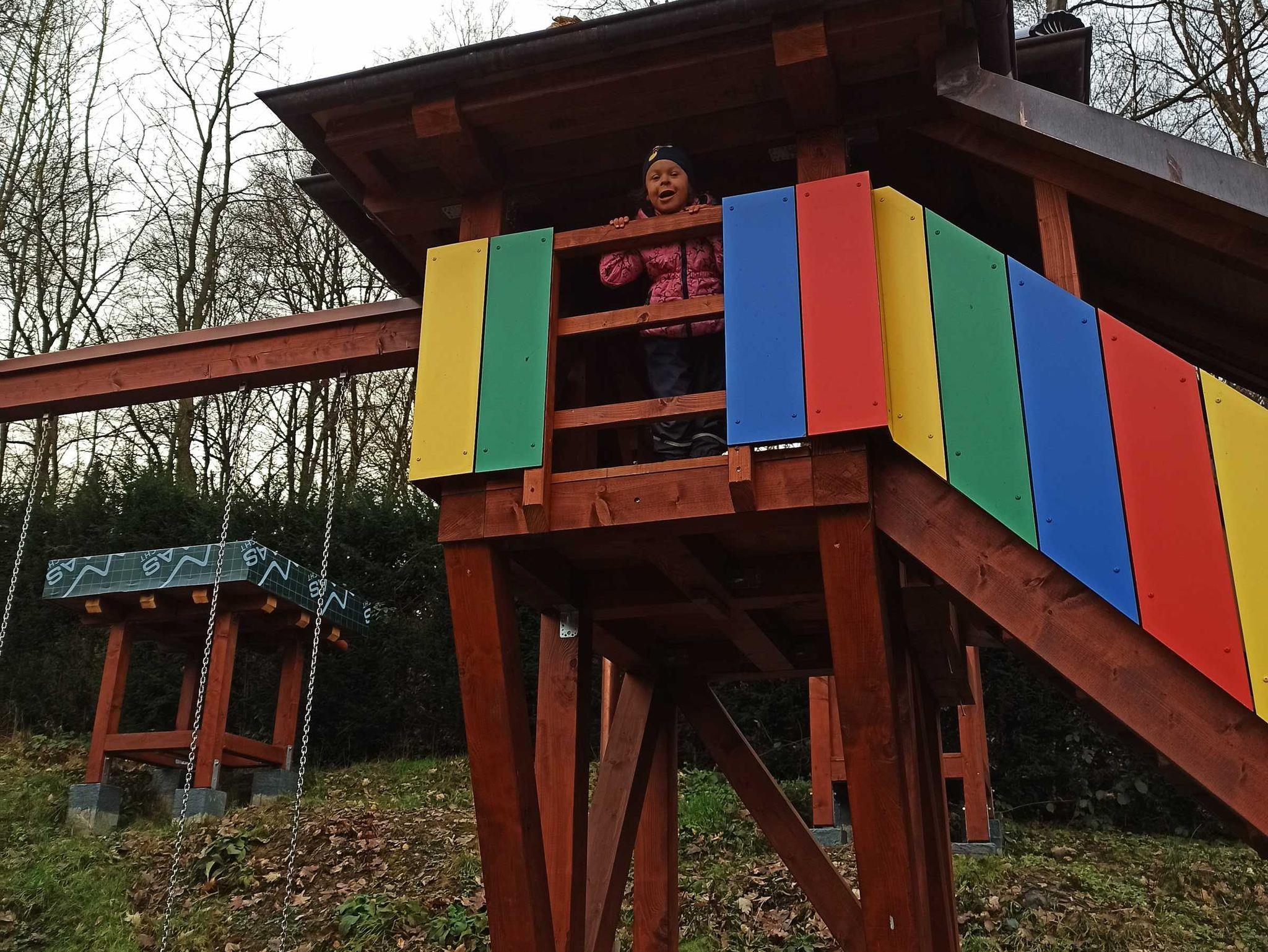 Das Familienzimmer verfügt über zwei Etagen. In der oberen Etage befindet sich das Elternschlafzimmer mit einer Sitzecke und einer Außentür um in den Garten zu gelangen.