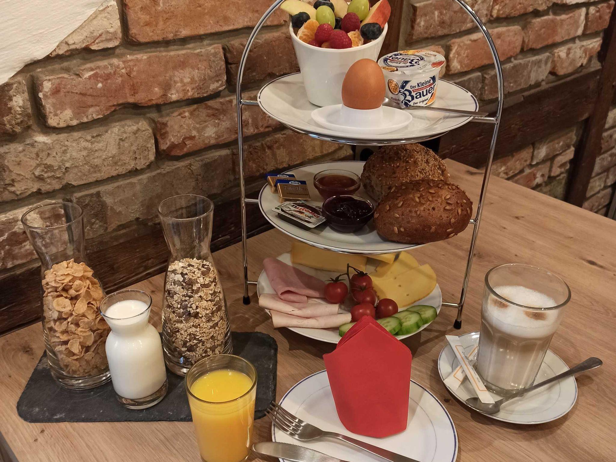 Im gemütlichen Frühstücksraum verwöhnt Ricarda ihre Gäste mit unterschiedlichen Frühstücksvariationen. Dieser Service steht natürlich nicht nur Hausgästen, sondern jedem Frühstückhungerigen zur Verfügung.
