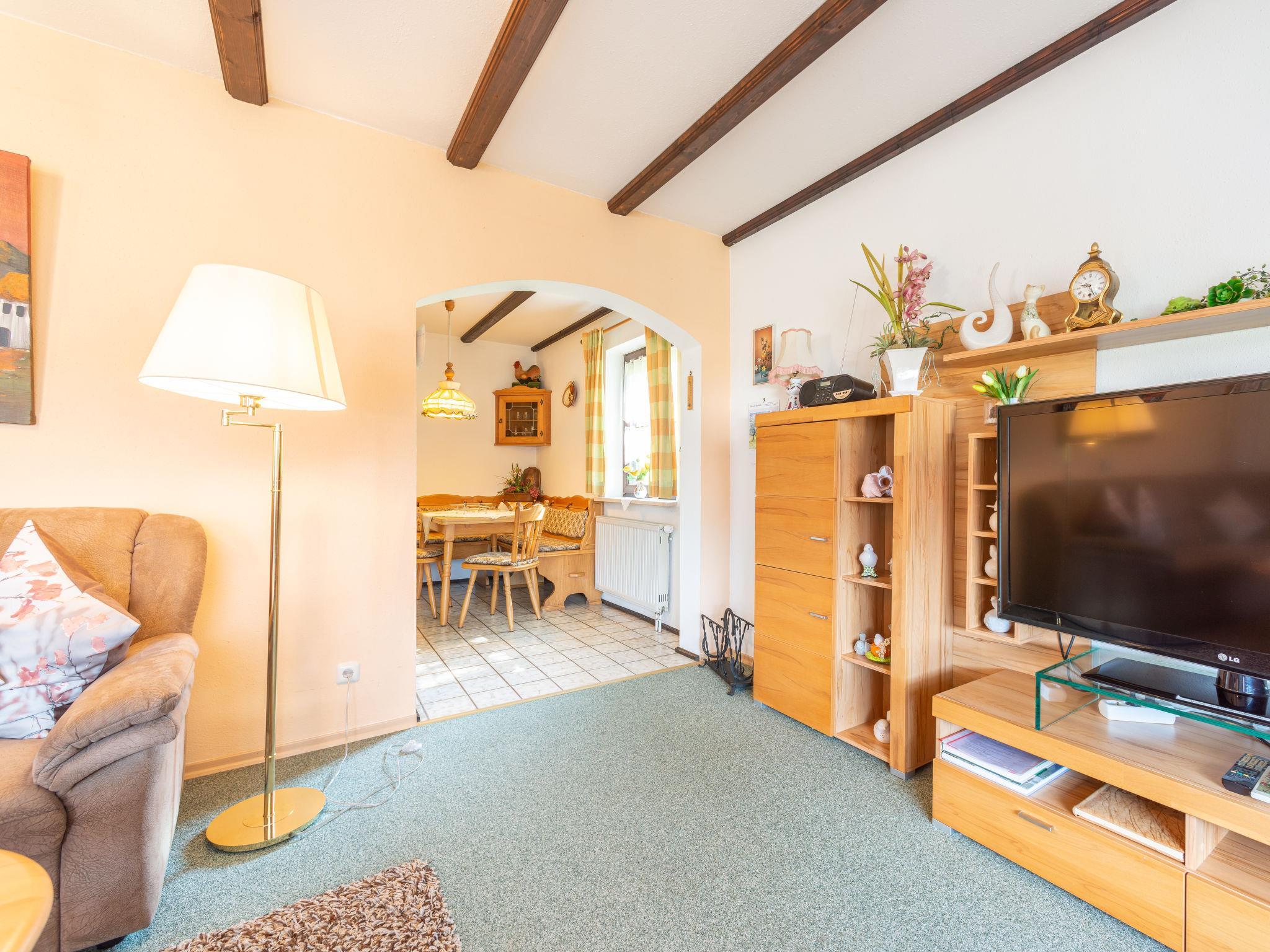 Child friendly holiday village "Am Hohen Bogen", 5 m a.s.l.. In the district of Kummersdorf, outside the resort, 3 km from the centre of Arrach, on a slope, traffic calmed area, 300 m from the edge of the forest, 100 m from the lake, 9 km from the skiing area. For shared use: volleyball, children's playground (slide, swing, sandbox). In the complex: table tennis (extra). Central heating system. Parking at the house. Shop 3 km, grocery 3 km, supermarket 3 km, restaurant 3 km, bakery 3 km, bus stop "Großmühle Abzw. Hohenwarth" 650 m, railway station "Hohenwarth" 1.5 km, grass beach "Seepark Arrach" 5 km, outdoor swimming pool 10 km, thermal baths 10 km, bathing lake "Seepark Arrach" 5 km. Golf course (9 hole) 6 km, tennis 6 km, riding stable 800 m, chair lift 9 km, skisport facilities 9 km, slopes 9 km, ski rental 11 km, ski school 9 km, cross country ski track 11 km. Nearby attractions: Bayerwald-Tierpark Lohberg 15 km, Spielbank Bad Kötzting, Fun-Park Neukirchen, Tiergarten Straubing, Pullman-City. Well-known ski regions can easily be reached: Eck 6 km, Am Hohen Bogen 9 km, Arber 29 km. Hiking paths: Arberregion. Please note: car recommended. Groups of teenagers on request only. Boating, fishing 500 m. The holiday village consists of an apartment house and two-storey holiday houses with shared lawns and play areas. The distance from the individual houses to the natural swimming lake is 50 – 400 m.