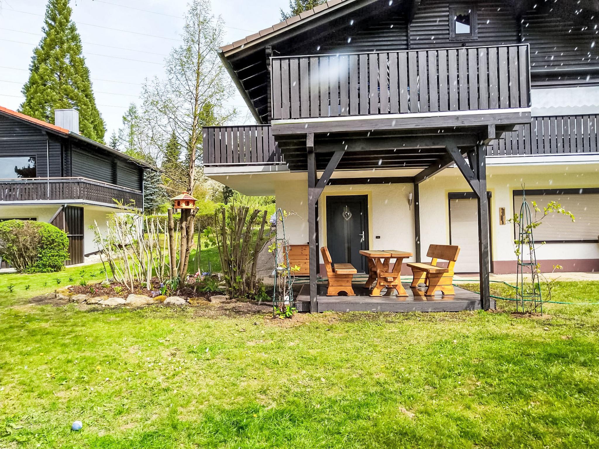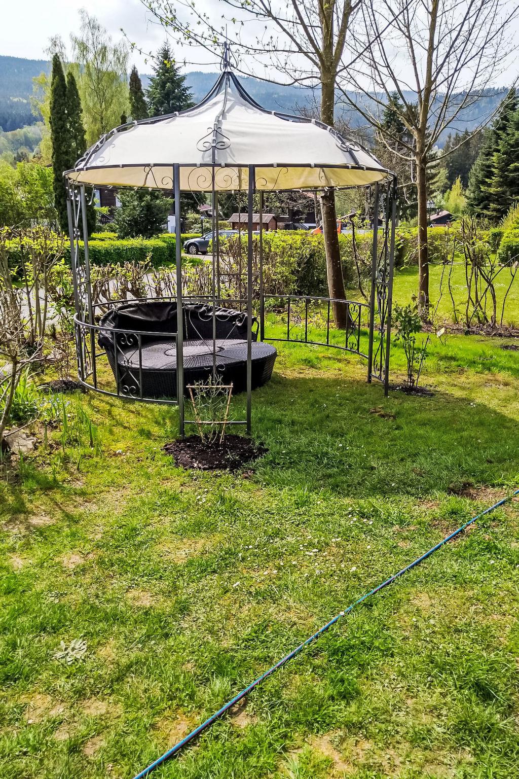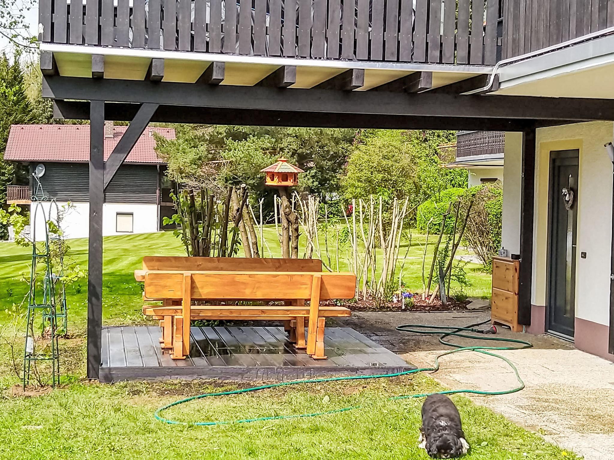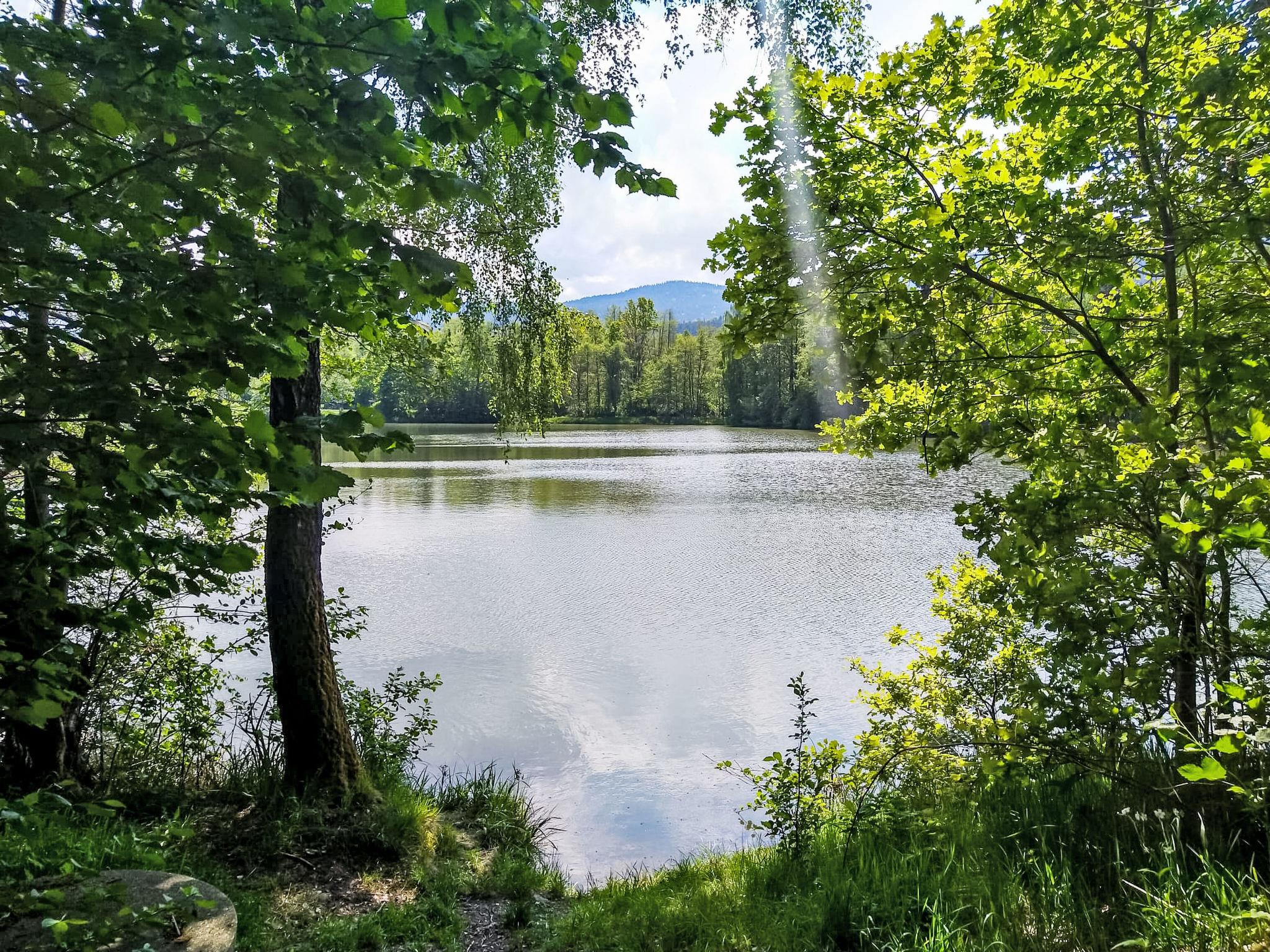 Child friendly holiday village "Am Hohen Bogen", 5 m a.s.l.. In the district of Kummersdorf, outside the resort, 3 km from the centre of Arrach, on a slope, traffic calmed area, 300 m from the edge of the forest, 100 m from the lake, 9 km from the skiing area. For shared use: volleyball, children's playground (slide, swing, sandbox). In the complex: table tennis (extra). Central heating system. Parking at the house. Shop 3 km, grocery 3 km, supermarket 3 km, restaurant 3 km, bakery 3 km, bus stop "Großmühle Abzw. Hohenwarth" 650 m, railway station "Hohenwarth" 1.5 km, grass beach "Seepark Arrach" 5 km, outdoor swimming pool 10 km, thermal baths 10 km, bathing lake "Seepark Arrach" 5 km. Golf course (9 hole) 6 km, tennis 6 km, riding stable 800 m, chair lift 9 km, skisport facilities 9 km, slopes 9 km, ski rental 11 km, ski school 9 km, cross country ski track 11 km. Nearby attractions: Bayerwald-Tierpark Lohberg 15 km, Spielbank Bad Kötzting, Fun-Park Neukirchen, Tiergarten Straubing, Pullman-City. Well-known ski regions can easily be reached: Eck 6 km, Am Hohen Bogen 9 km, Arber 29 km. Hiking paths: Arberregion. Please note: car recommended. Groups of teenagers on request only. Boating, fishing 500 m. The holiday village consists of an apartment house and two-storey holiday houses with shared lawns and play areas. The distance from the individual houses to the natural swimming lake is 50 – 400 m.