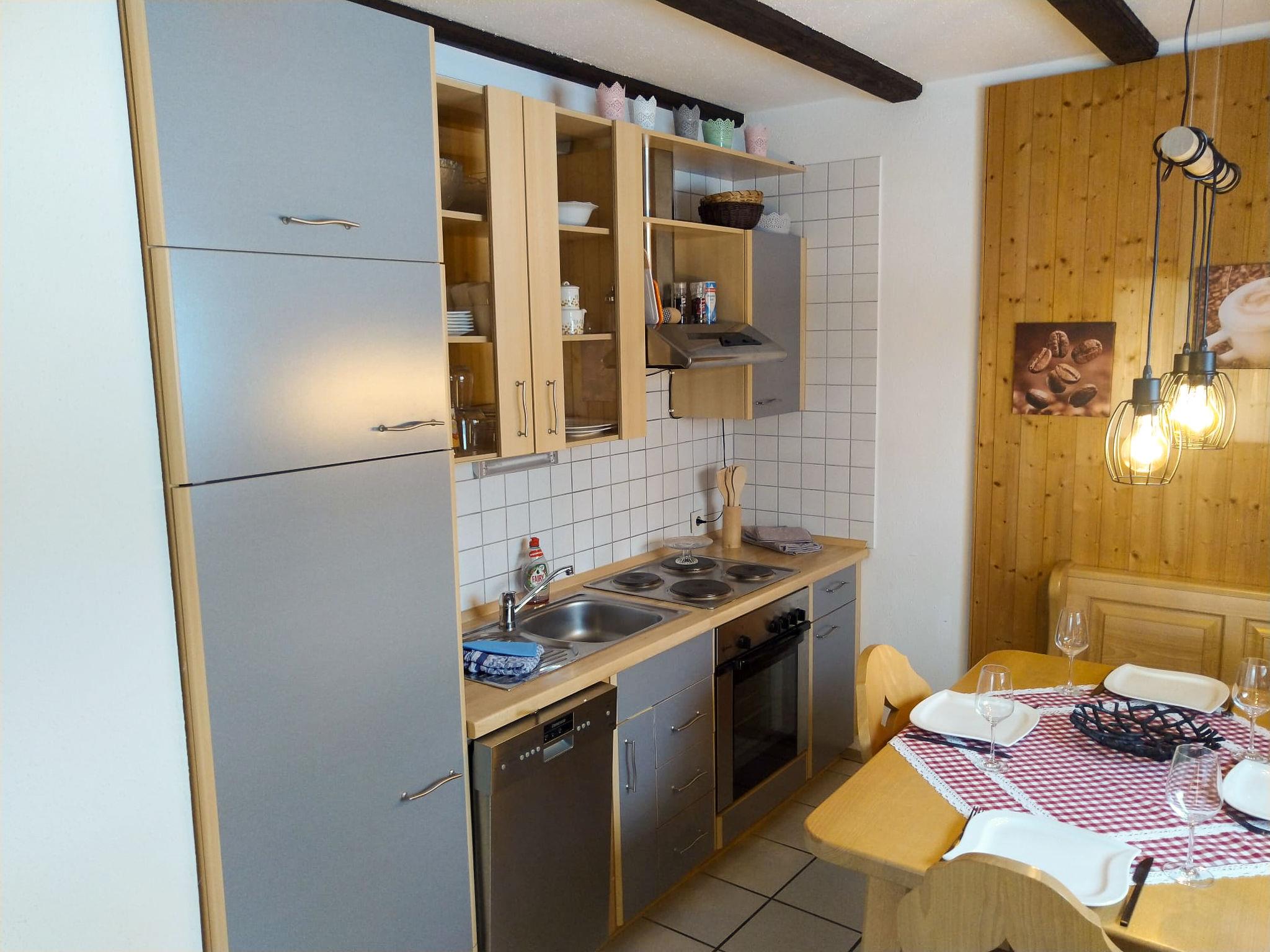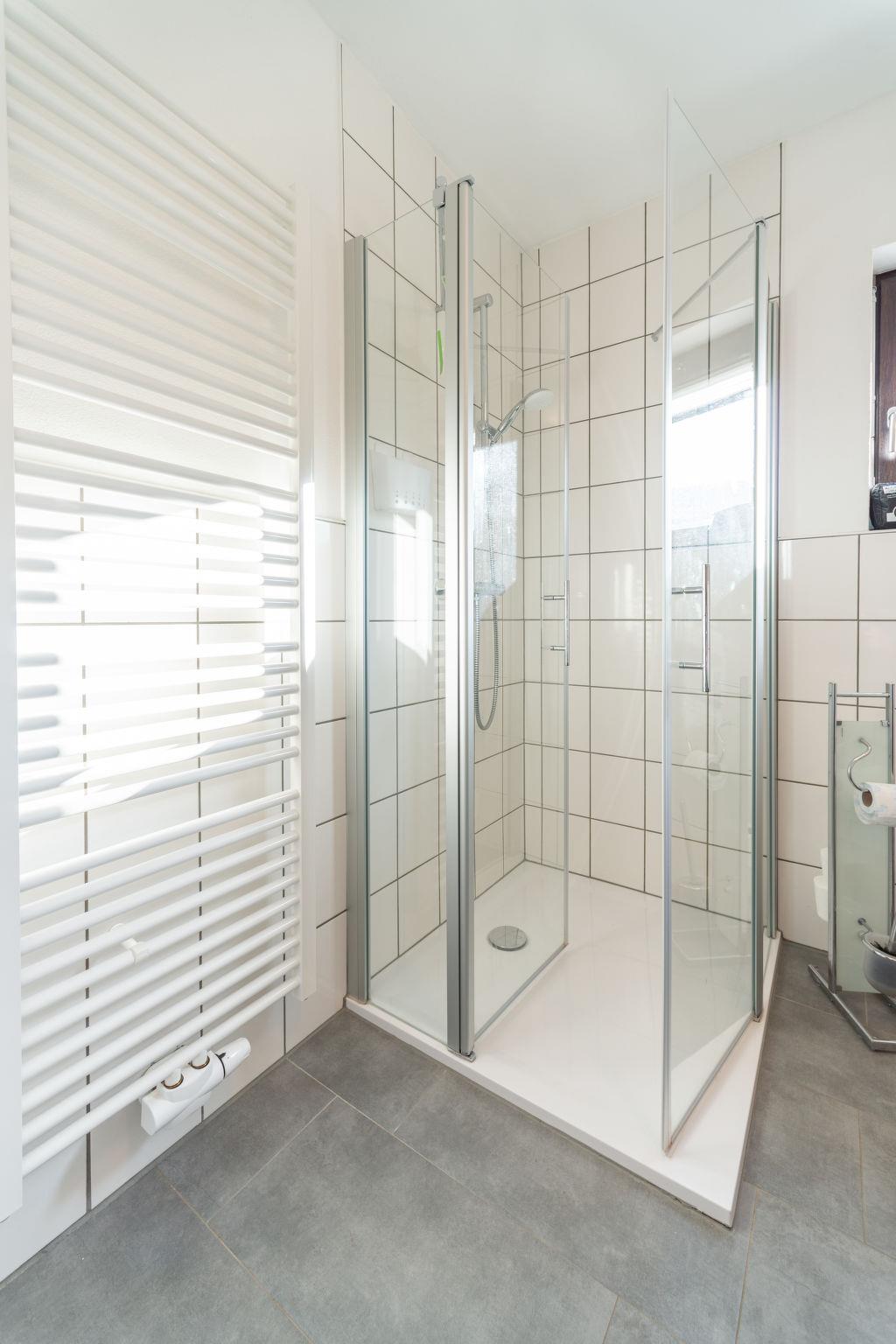 3-room apartment 75 m2, on the ground floor. Cosy furnishings: living room 35 m2 with satellite TV (flat screen). Exit to the garden, to the terrace. 1 room with 1 double bed (180 cm, length 200 cm). 1 room with 2 beds (90 cm, length 200 cm). Open kitchen (4 hot plates, oven, dishwasher, toaster, kettle, electric coffee machine) with dining nook. Shower/WC. Gas heating. Large terrace partly roofed, garden 250 m2. Terrace furniture, sitting area. Beautiful view of the mountains. Facilities: hair dryer. Internet (WiFi, free). Please note: non-smokers only. Maximum 1 small pet/ dog allowed. Private entrance, smoke alarm, fire extinguisher. Lake 50 m.