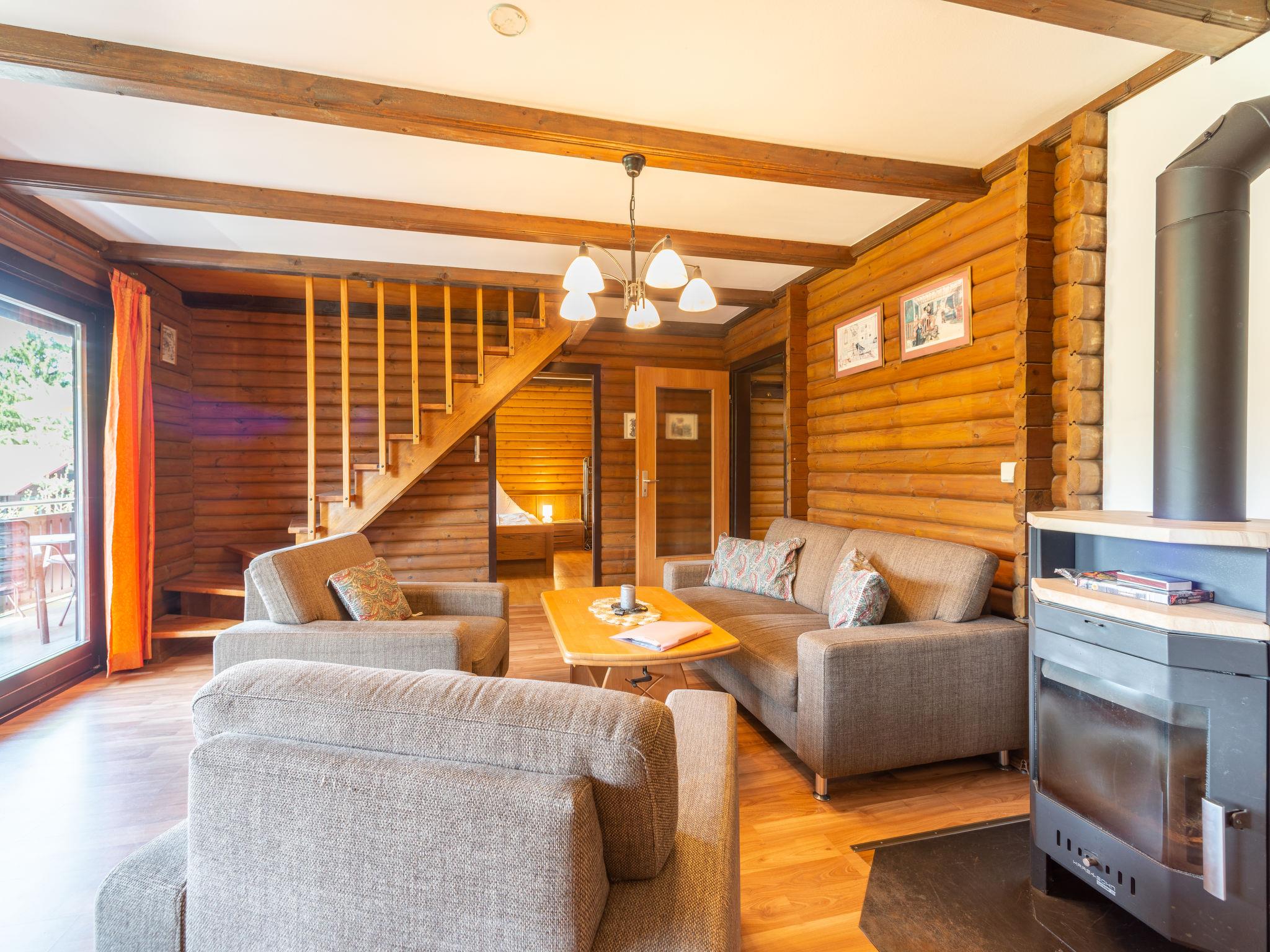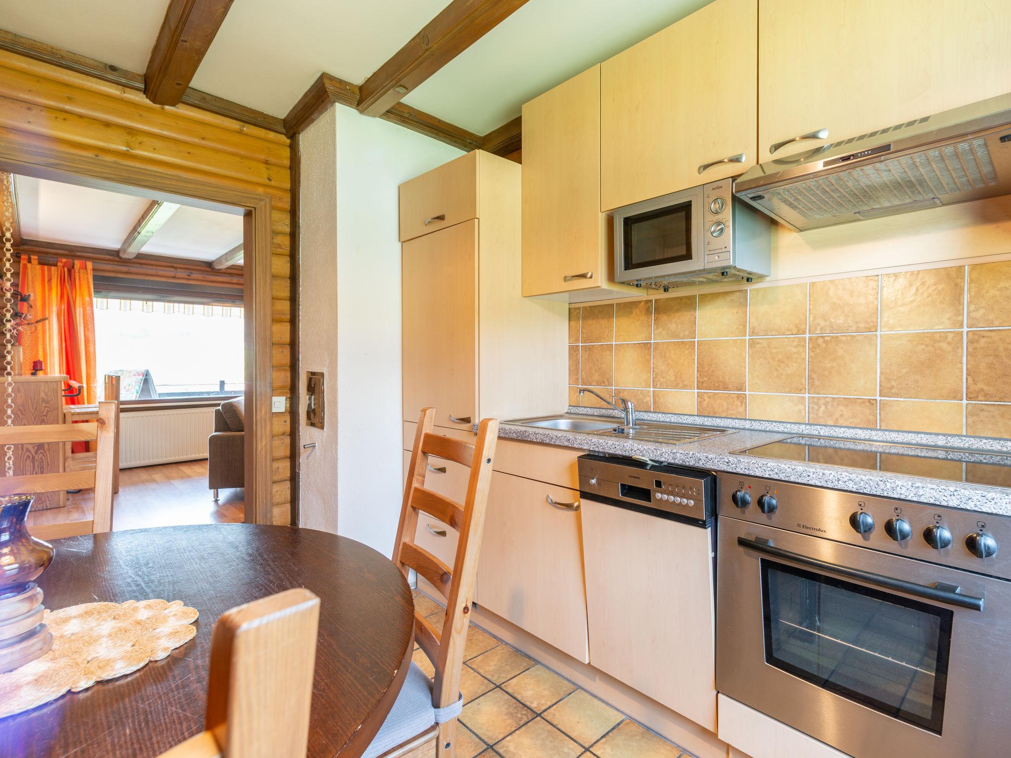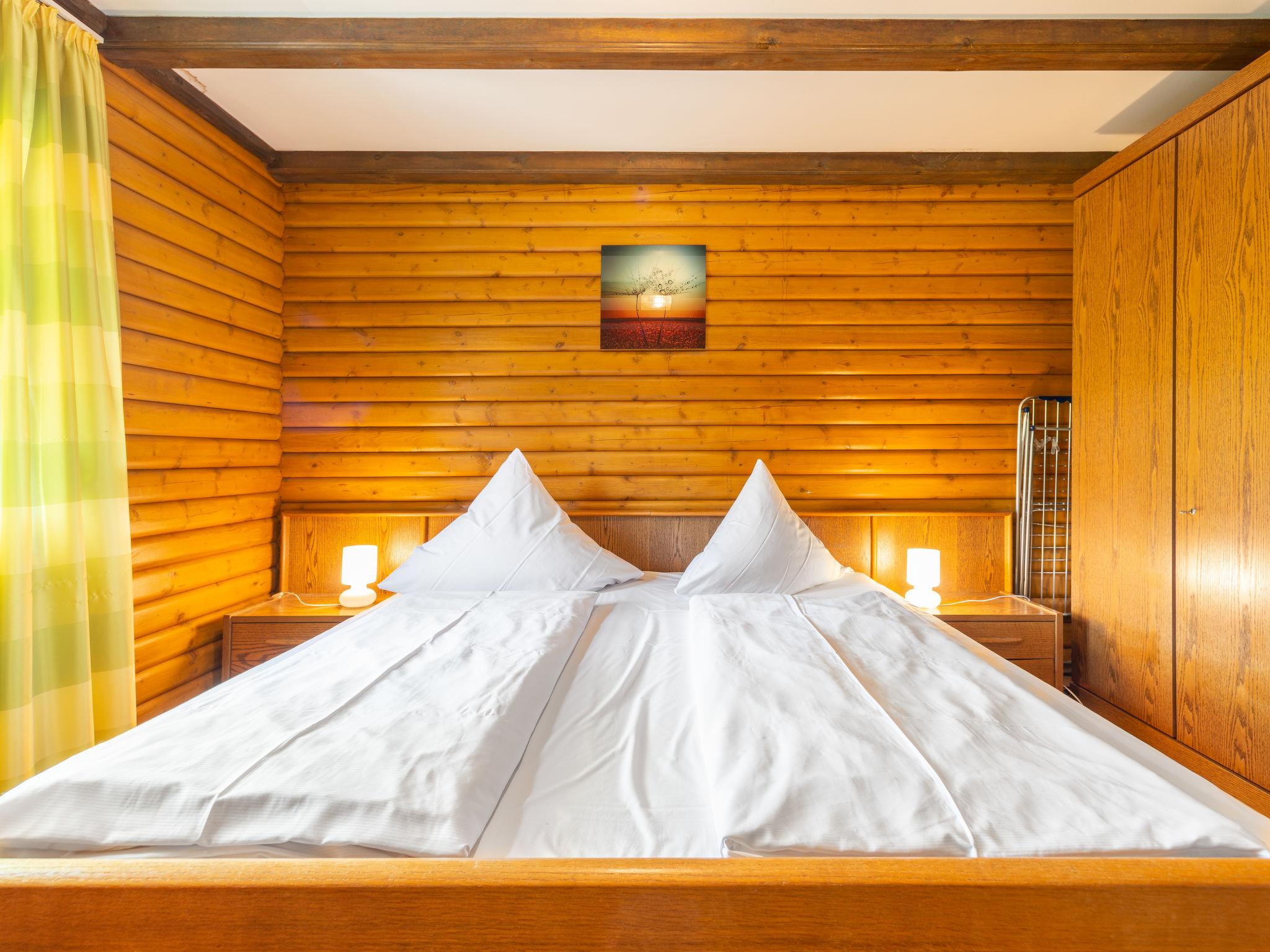 3-room apartment 75 m2, on the upper floor. Cosy and wooden furniture furnishings: living/dining room 35 m2 with open-hearth fireplace and satellite TV (flat screen), hi-fi system and DVD. Exit to the balcony. 1 room 13 m2 with 1 double bed (180 cm, length 200 cm). 1 room 9 m2 with 2 beds (90 cm, length 200 cm). Open kitchen 9 m2 (oven, dishwasher, 4 ceramic glass hob hotplates, toaster, kettle, microwave, electric coffee machine) with dining table. Bath/shower/WC. Gas heating. Large balcony 20 m2, south facing position. Balcony furniture. Beautiful view of the mountains. Facilities: washing machine, logs (extra). Internet (WiFi, free). Please note: non-smokers only. Maximum 1 pet/ dog allowed. Private entrance, smoke alarm. Balcony partly covered. Lake 150 m. DE44534