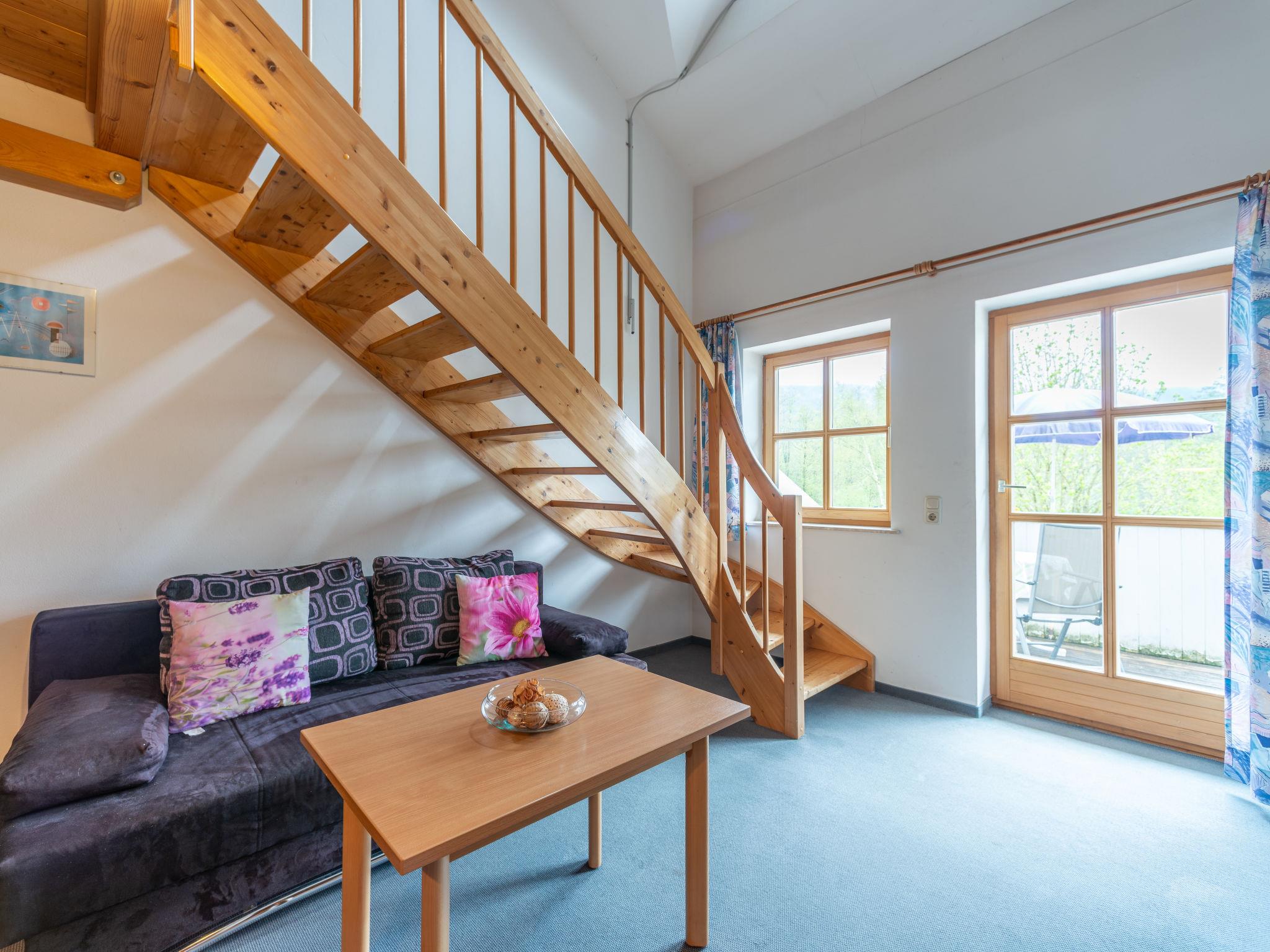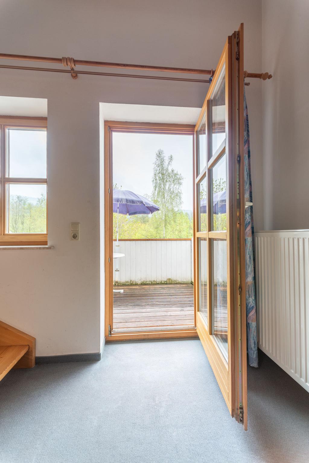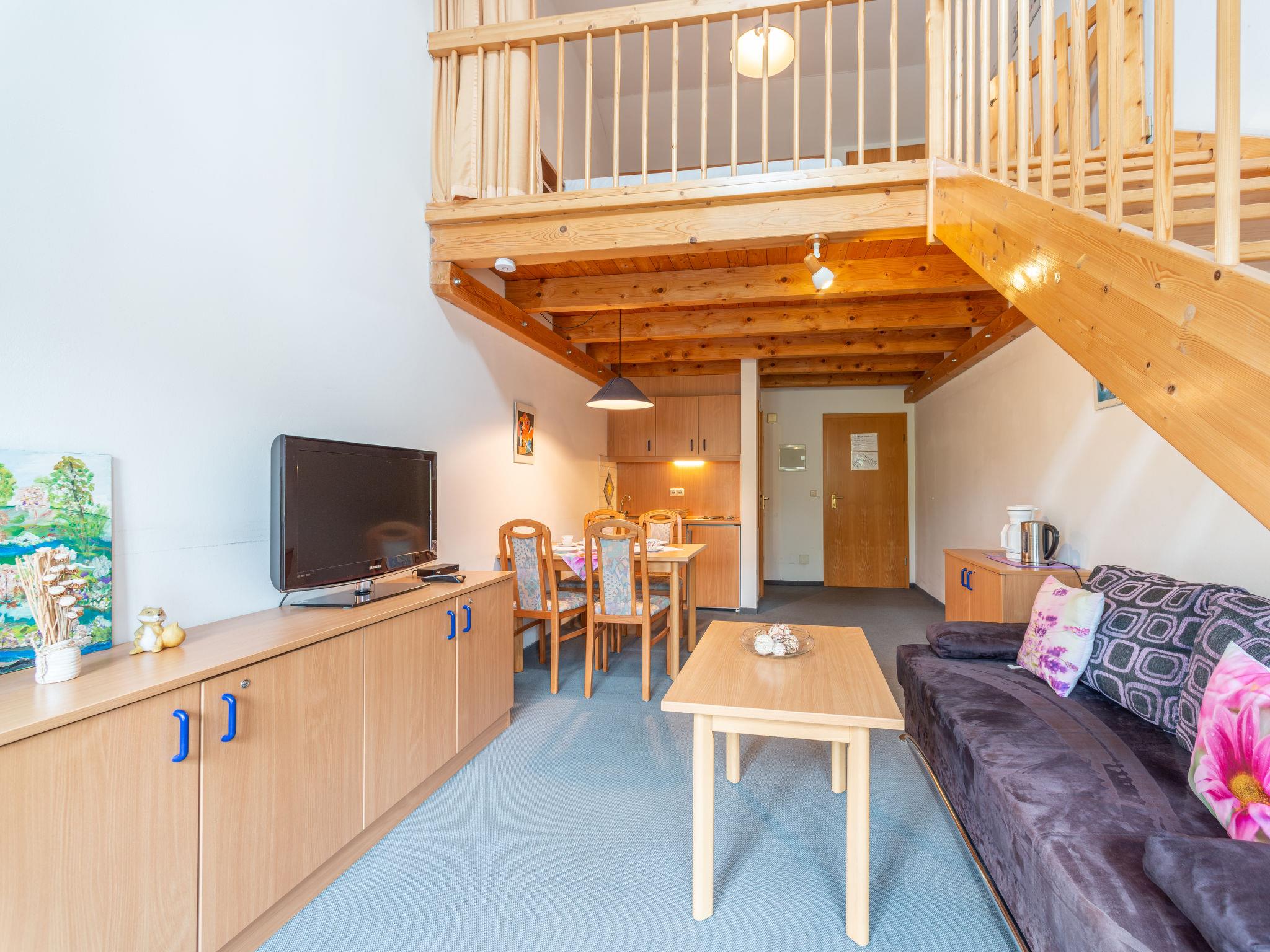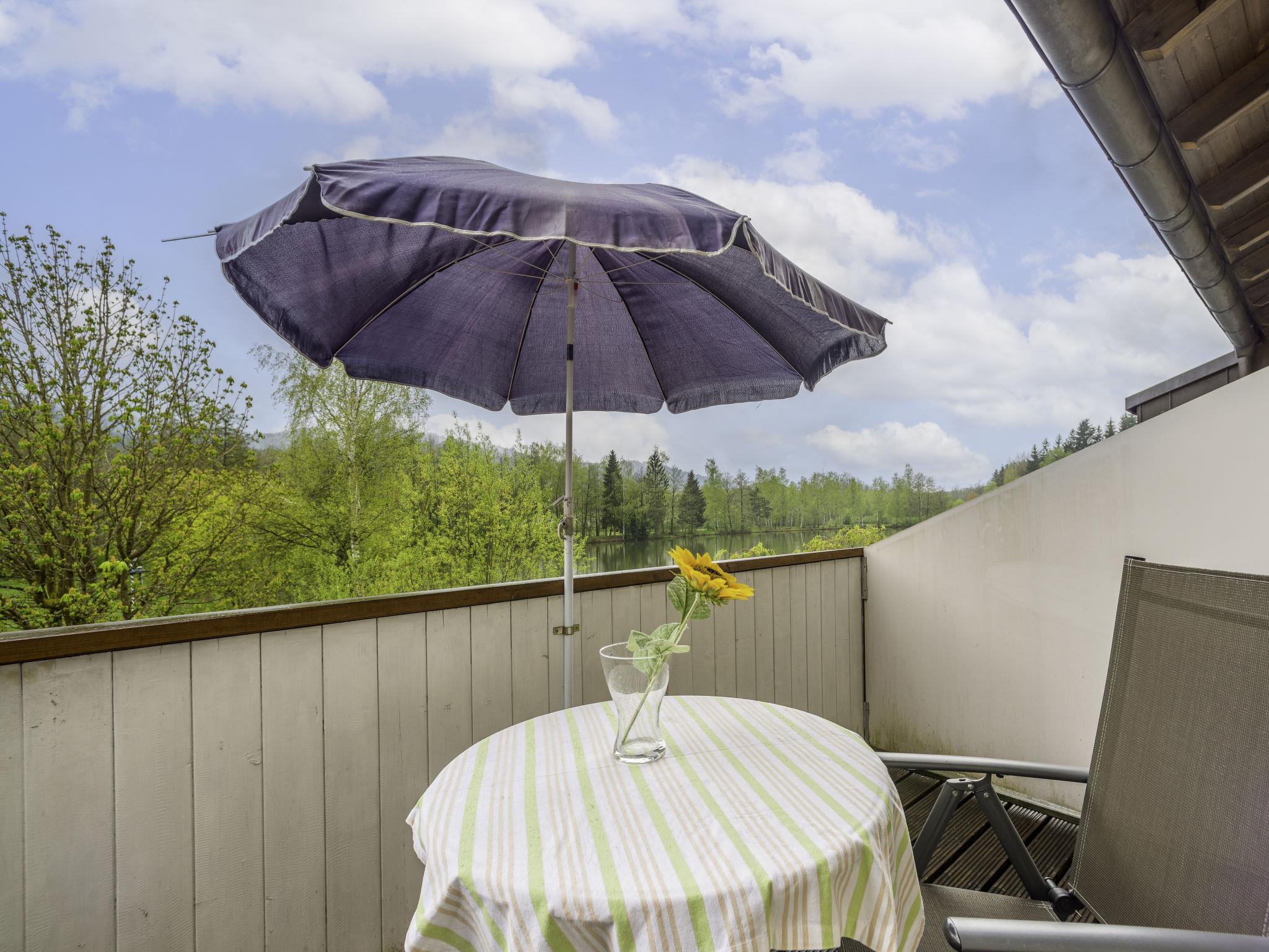 1-room apartment 45 m2 on 2 levels on 1st floor. Cosy furnishings: living/dining room 25 m2 with satellite TV (flat screen). Exit to the balcony. Kitchenette (2 hot plates, toaster, kettle, electric coffee machine). Bath/shower/WC. Top floor: open gallery 10 m2 with 1 double bed (180 cm, length 200 cm). Gas heating. Small balcony 8 m2. Balcony furniture. Beautiful view of the lake and the mountains. Parking (1 car). Please note: non-smokers only. Smoke alarm. Apartment in an apartment house. Lake 50 m. Instead of an enclosed bedroom, some sleeping areas are located in an open-plan area (gallery, alcove, etc.).