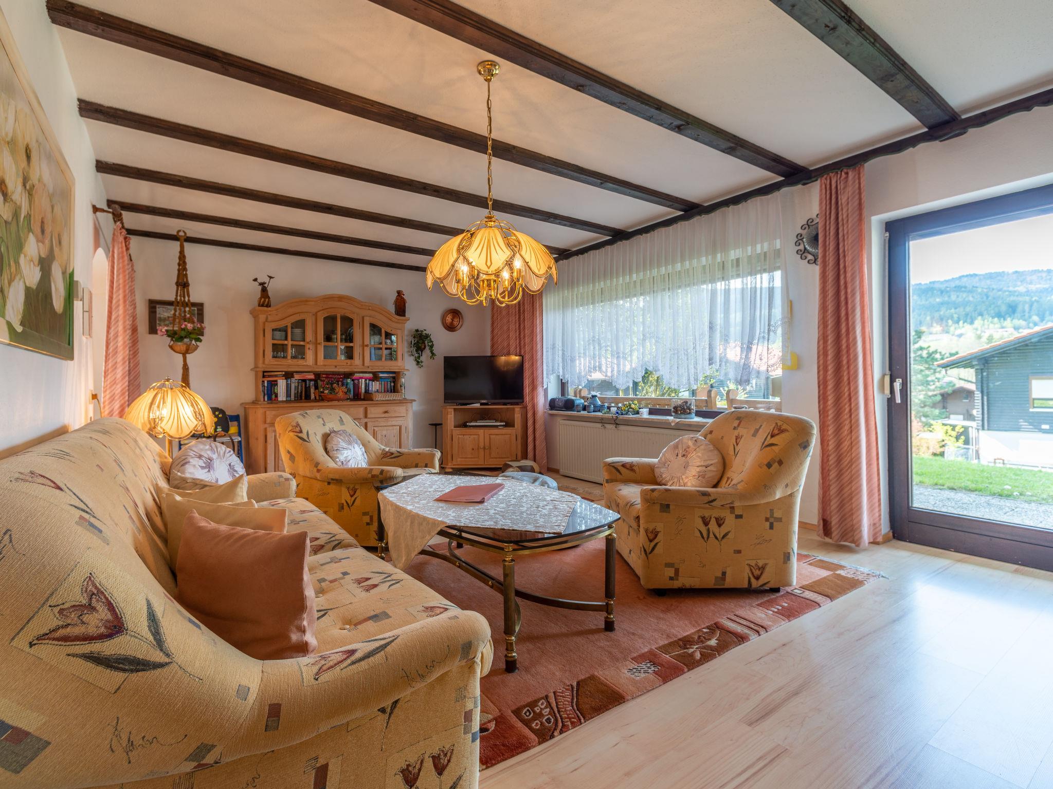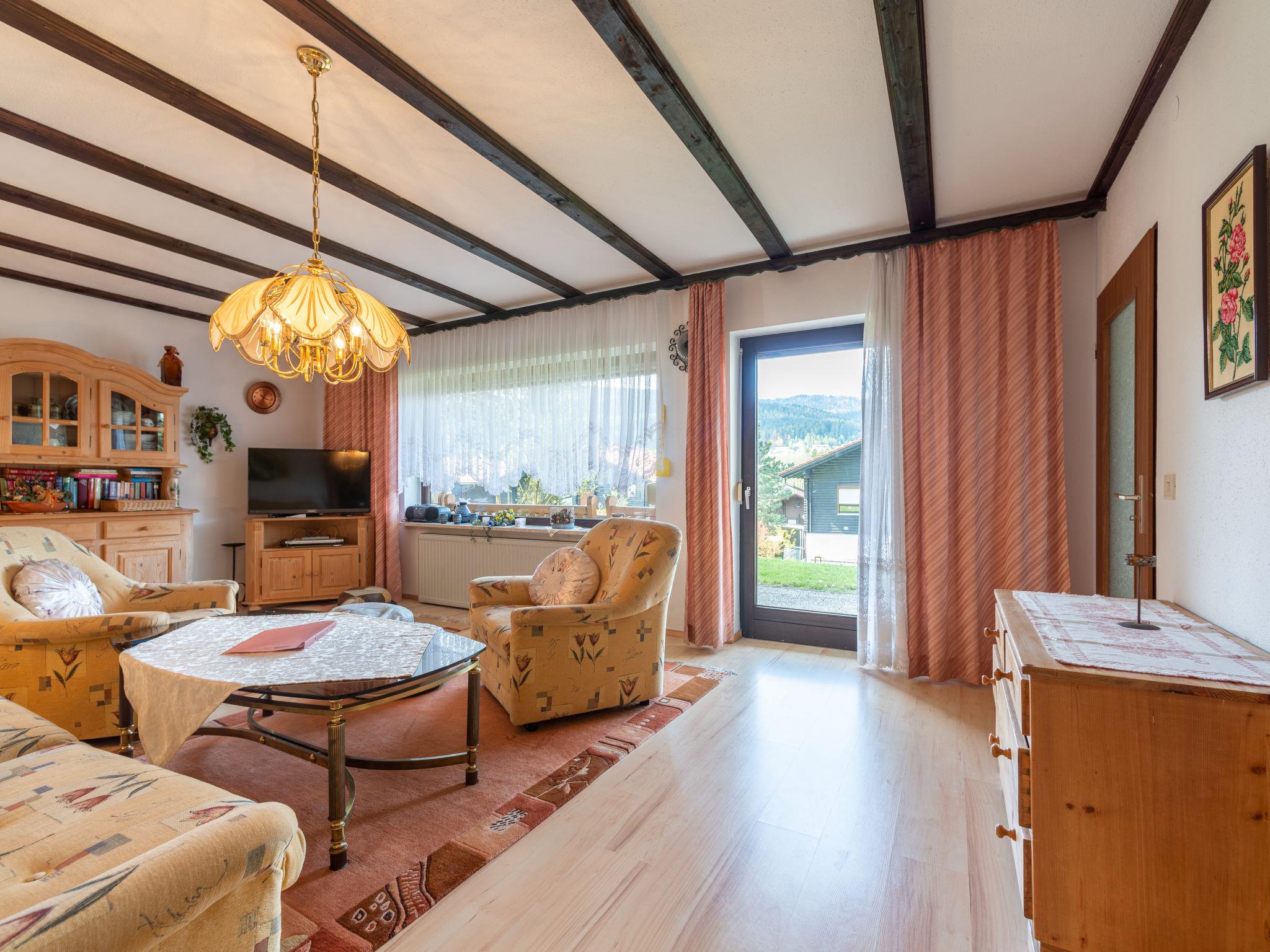 Child friendly holiday village "Am Hohen Bogen", 5 m a.s.l.. In the district of Kummersdorf, outside the resort, 3 km from the centre of Arrach, on a slope, traffic calmed area, 300 m from the edge of the forest, 100 m from the lake, 9 km from the skiing area. For shared use: volleyball, children's playground (slide, swing, sandbox). In the complex: table tennis (extra). Central heating system. Parking at the house. Shop 3 km, grocery 3 km, supermarket 3 km, restaurant 3 km, bakery 3 km, bus stop "Großmühle Abzw. Hohenwarth" 650 m, railway station "Hohenwarth" 1.5 km, grass beach "Seepark Arrach" 5 km, outdoor swimming pool 10 km, thermal baths 10 km, bathing lake "Seepark Arrach" 5 km. Golf course (9 hole) 6 km, tennis 6 km, riding stable 800 m, chair lift 9 km, skisport facilities 9 km, slopes 9 km, ski rental 11 km, ski school 9 km, cross country ski track 11 km. Nearby attractions: Bayerwald-Tierpark Lohberg 15 km, Spielbank Bad Kötzting, Fun-Park Neukirchen, Tiergarten Straubing, Pullman-City. Well-known ski regions can easily be reached: Eck 6 km, Am Hohen Bogen 9 km, Arber 29 km. Hiking paths: Arberregion. Please note: car recommended. Groups of teenagers on request only. Boating, fishing 500 m. The holiday village consists of an apartment house and two-storey holiday houses with shared lawns and play areas. The distance from the individual houses to the natural swimming lake is 50 – 400 m.