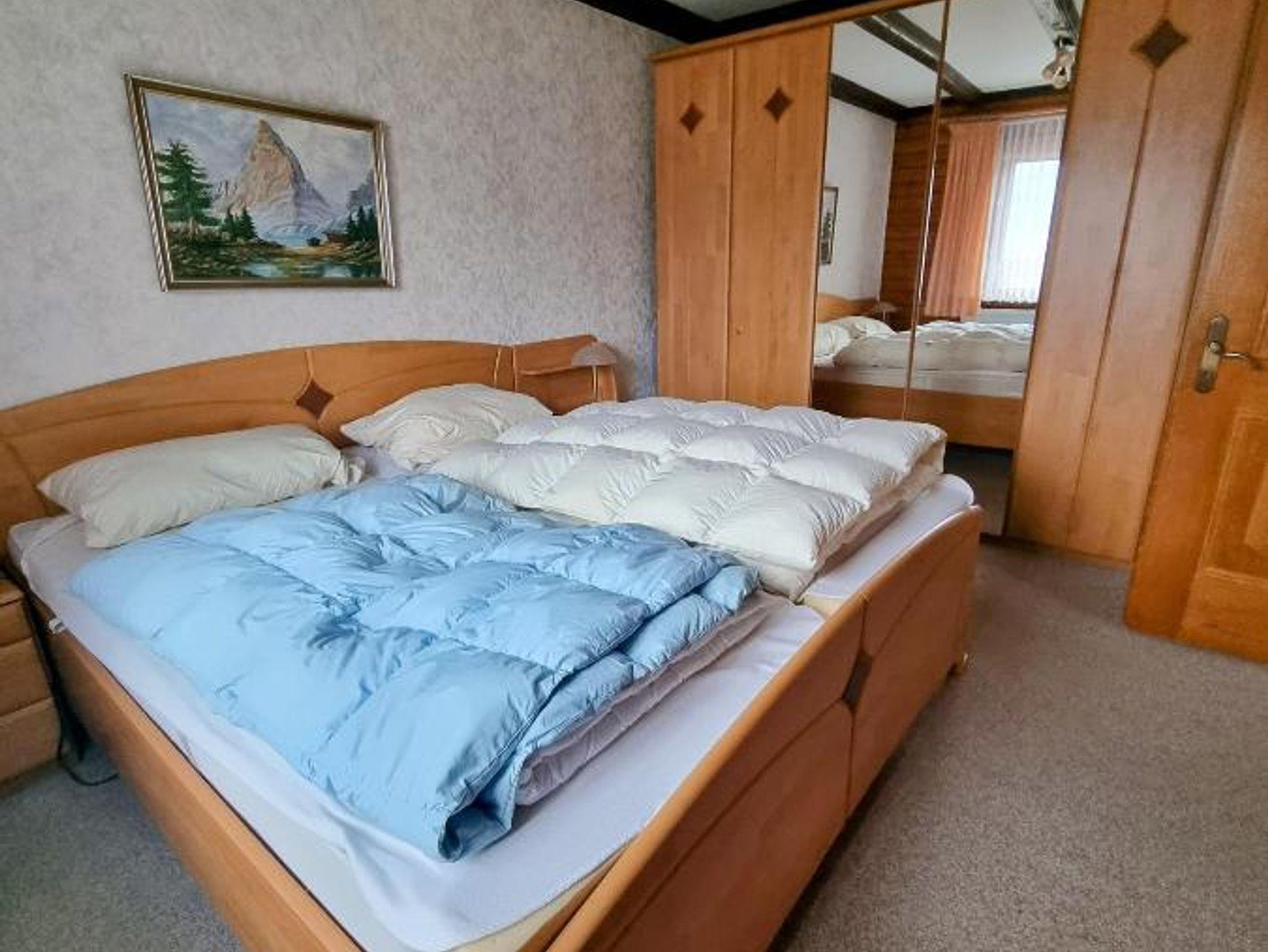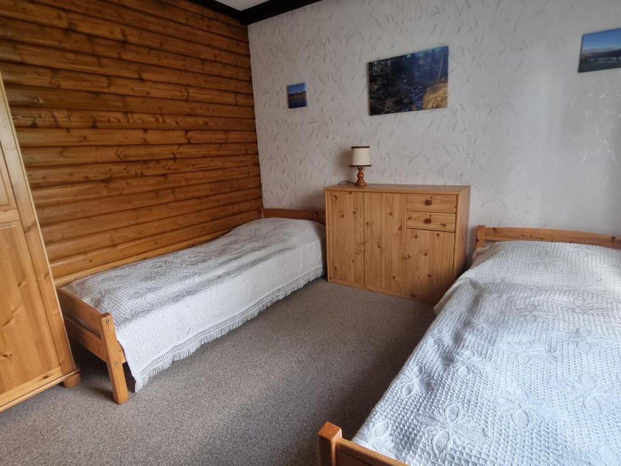 benutzen. Die Ferienwohnung verfügt über zwei Schlafzimmer. Eines mit einem Doppelbett, das andere mit zwei Einzelbetten. Für die 5. Person steht ein Gästebett zur