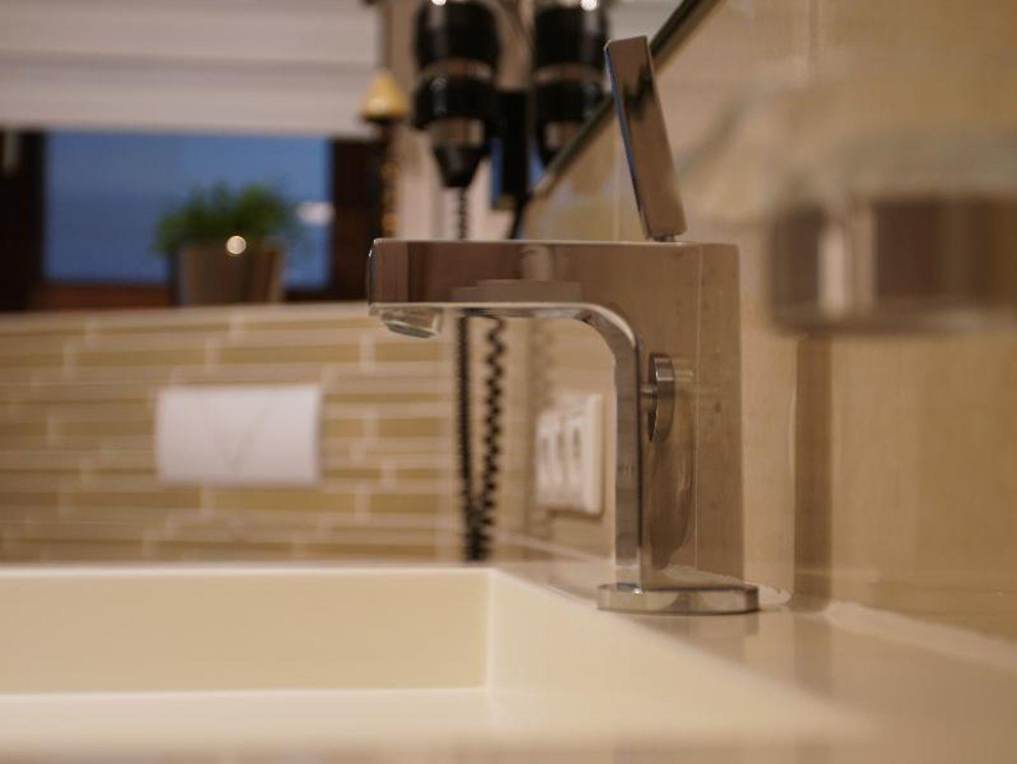 Ein luxuriöses Badezimmer mit Whirlpool, begehbarer Dusche, WC, beleuchteten Kosmetikspiegel und vielen mehr lädt dazu ein, die Seele baumeln zu lassen. Ein Gäste-WC befindet sich gleich im Nebenraum.