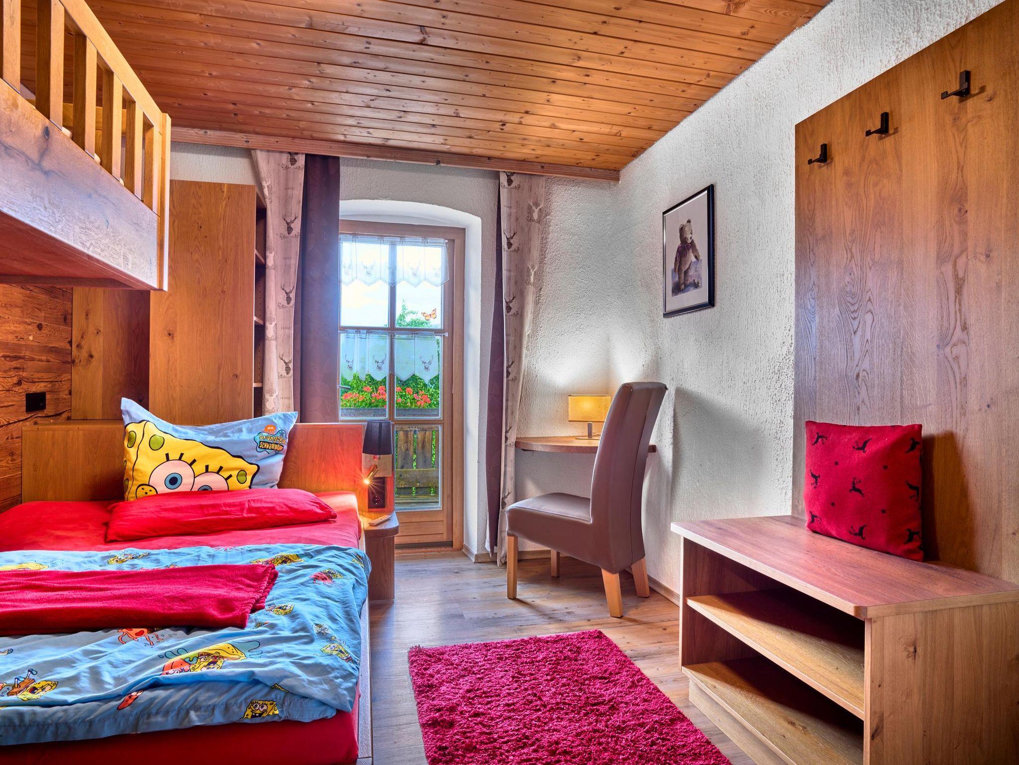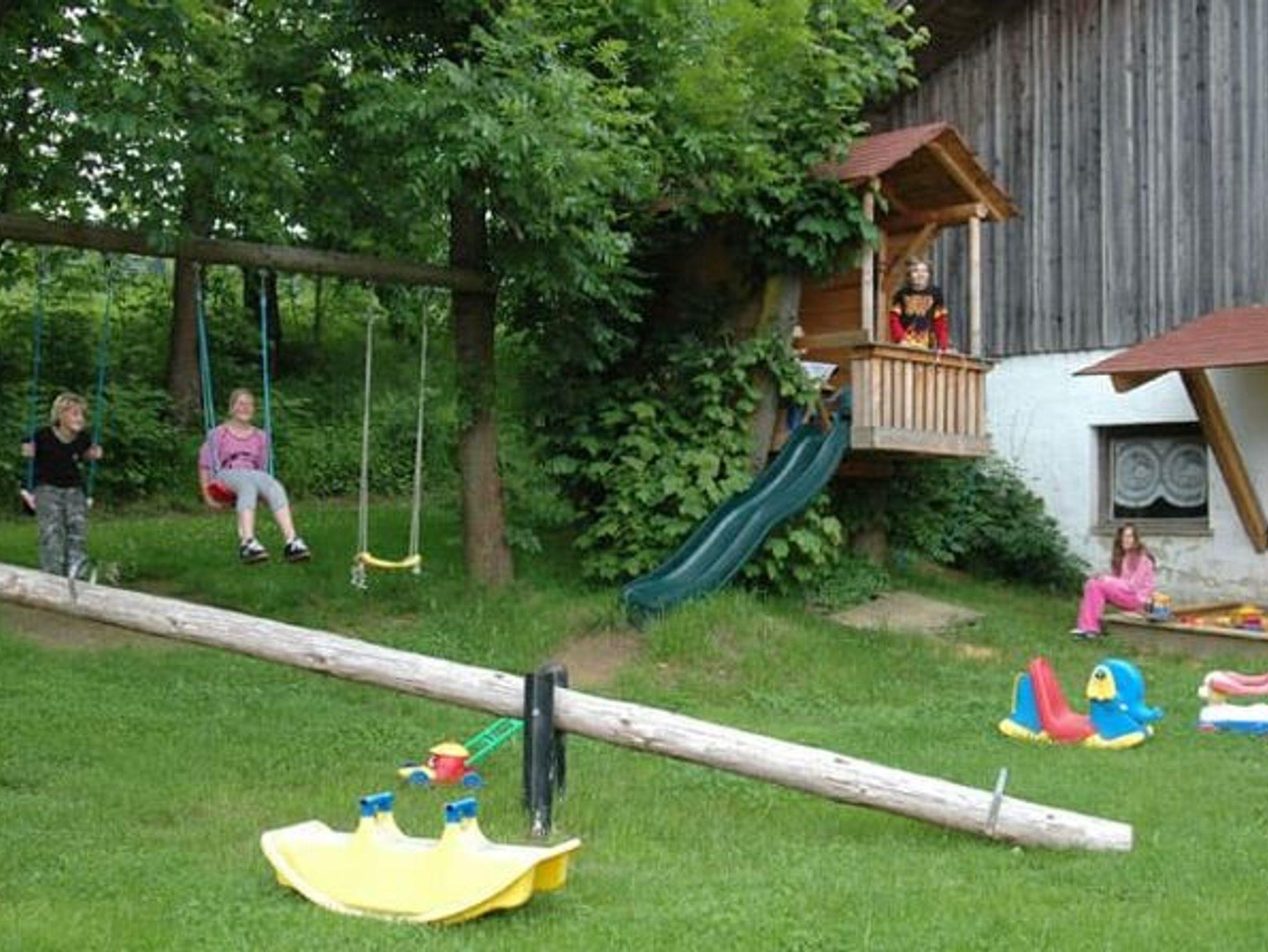 Einziger als Baby- und Kinderbauernhof ausgezeichneter Beherbergungsbetrieb im Luftkurort Arrach Ackerbau und Grünlandbetrieb: Unser voll bewirtschafteter Bio Hof liegt abseits von Straße und Lärm, waldnah, ca. 150 m vom Ort entfernt. Alle Wohnungen sind mit natürlichen Baustoffen und viel Liebe eingerichtet. Selber Traktorfahren macht unseren kleinen und großen Gästen Spaß. Unsere Stalltür steht offen, so dass Sie die Tiere im Stall oder auf der Weide füttern, oder einfach den ganzen Tag Bauer sein können Mit der Bäuerin das Frühstücksei abholen, einfach ein Kinderparadies! Separates Kinderspielzimmer, Aufenthaltsraum, eigener schattiger Kinderspielplatz mit Baumhaus, großem Trampolin und Lagerfeuerstelle. Tischtennisraum mit großem Fussballkicker, große Liegewiese mit Liegen und Grill und ein separater Waschraum mit Waschmaschine und Trockner stehen unseren Gästen zur Verfügung. Kostenloses Reiten am Hof, auf Wunsch Kinderbetreuung, großer Kinderfuhrpark und eigenes Wochenprogramm für unserer Gäste. Im Heu schlafen oder toben. Frühstücksbuffet gegen Aufpreis möglich! Ferienwohnungsausstattung jeweils mit Mikrowelle, Toaster, Wasserkocher, Espressomaschine, Spülmaschine, Parkettboden, Massivmöbel und Kaminöfen. Wann dürfen wir Sie bei uns willkommen heißen