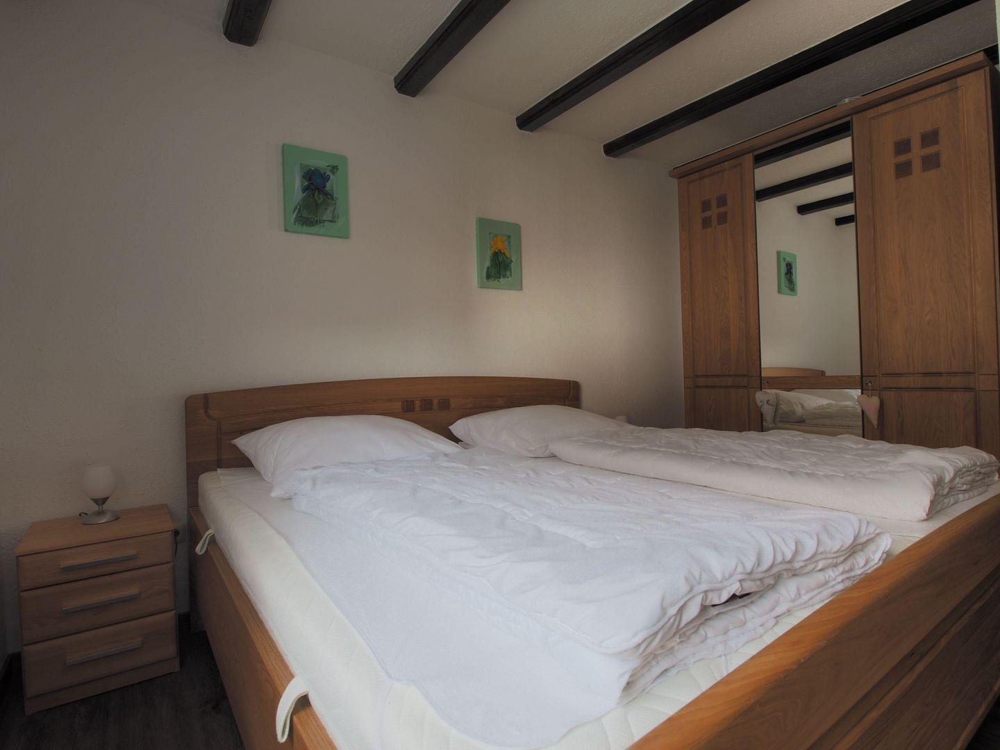 Zwei komfortable Schlafzimmer (eins mit Doppelbett, eins mit zwei Einzelbetten) sorgen für erholsamen Schlaf. Das helle Tageslichtbad mit Dusche bietet zusätzlichen Komfort.