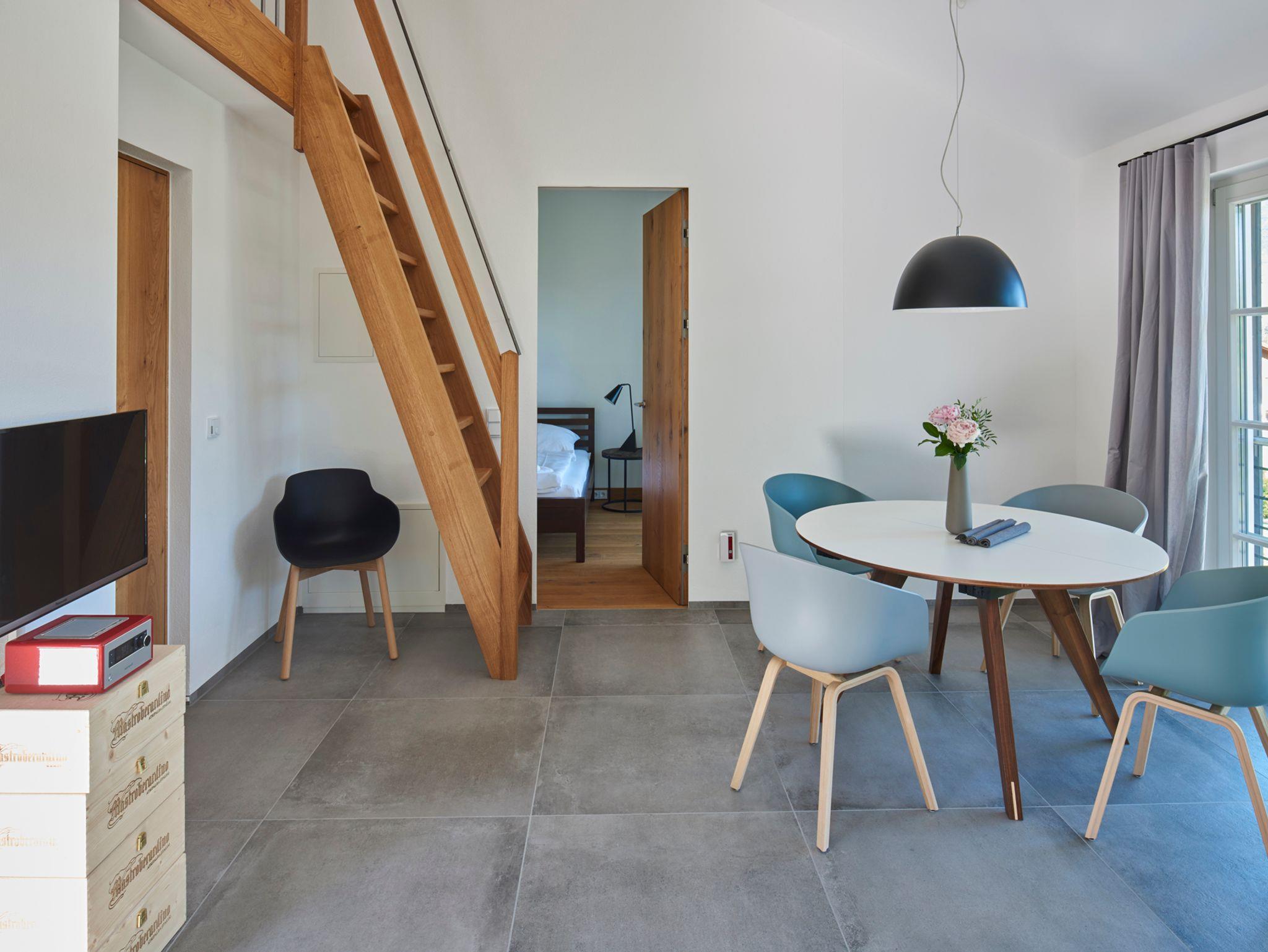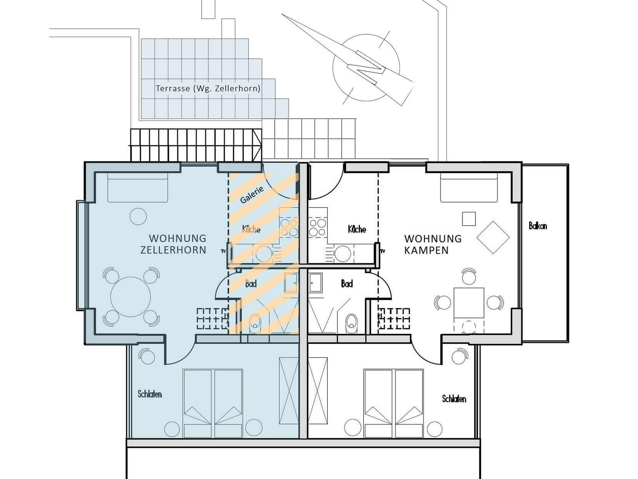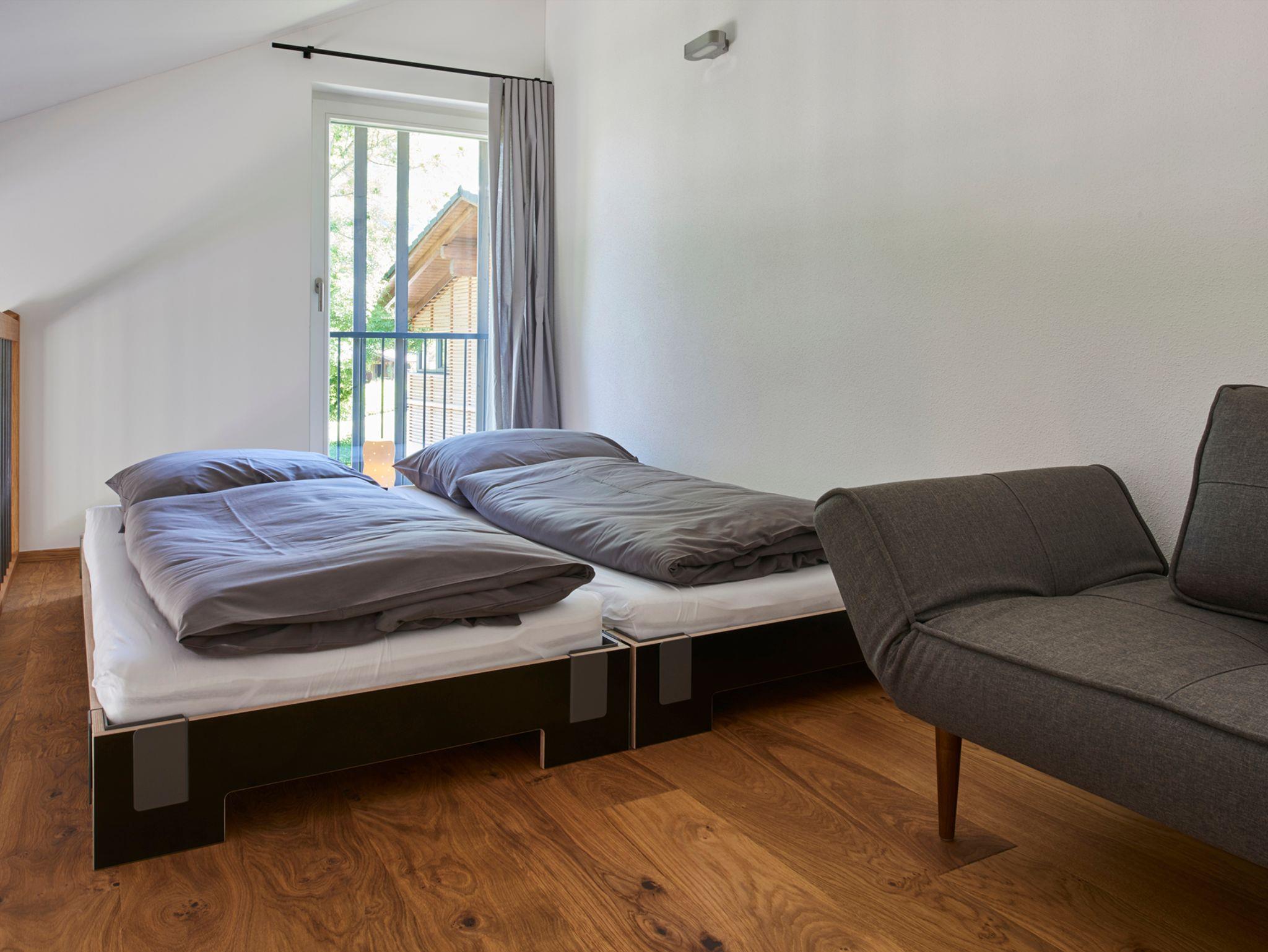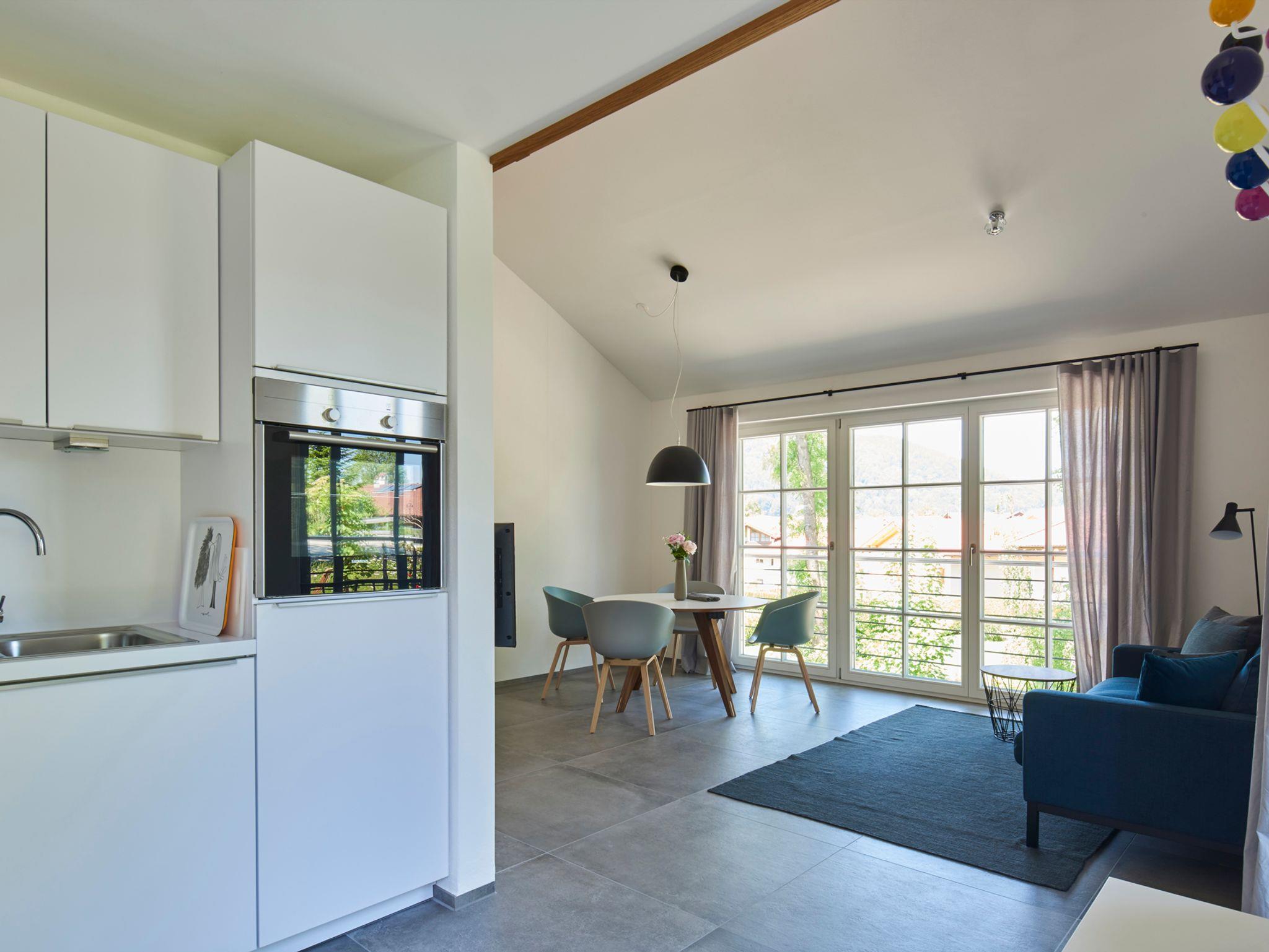 Ideen geboren, Möbel und Materialien ausgesucht, alles mit viel Muskelkraft und Liebe platziert – nun sind die beiden 57 Quadratmeter (47 qm im Erdgeschoss und 10 qm Galerie) großen Schmuckstücke in unserem Haus bereit für nette Gäste! Freuen Sie sich auf eine Nichtraucher-Ferienwohnung mit großzügigem Wohnzimmer und moderner Küche mit Geschirrspüler und Nespresso-Maschine, auf ein Designerbad mit Dusche und ein separates Schlafzimmer, das ebenso schön anzusehen (Eichenparkett, Altholz-Sichtbalken) wie behaglich ist (elektrische Jalousien, geräumiger Kleiderschrank). Bodentiefe Fenster, eine Fußbodenheizung sowie die kontrollierte Wohnraum-Lüftung sorgen für Licht, Luft und ein gutes Raumklima. Zur Wohnung „Zellerhorn“ gehört eine eigene kleine Terrasse.