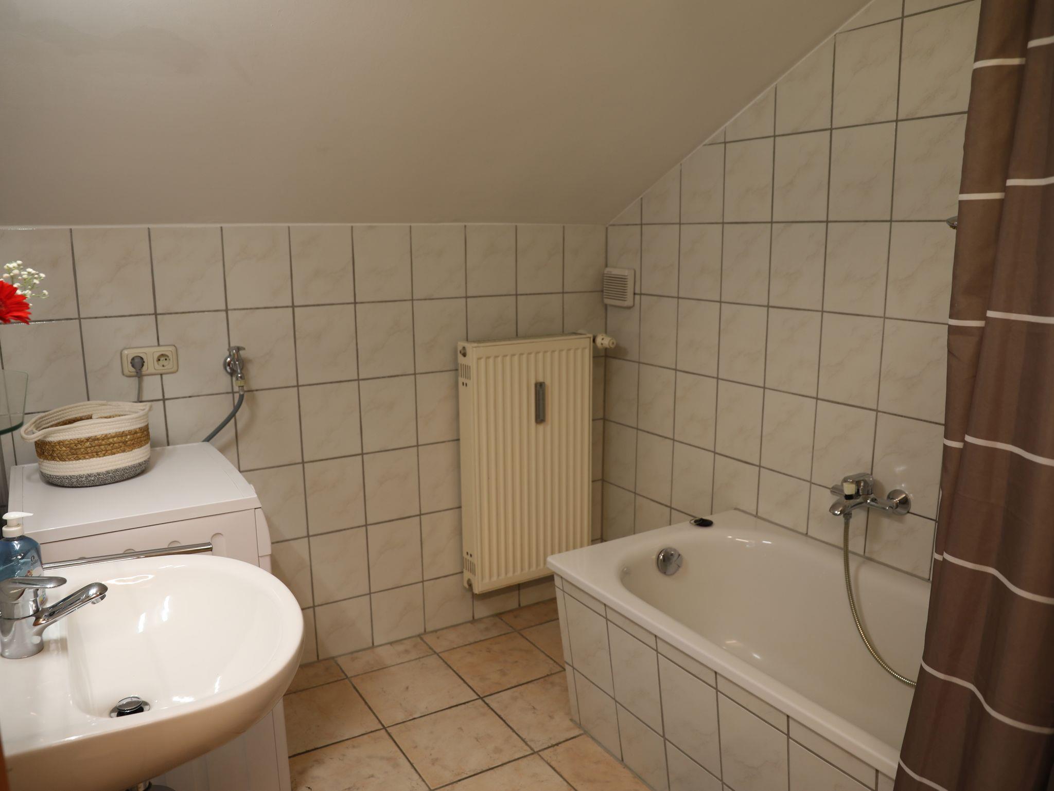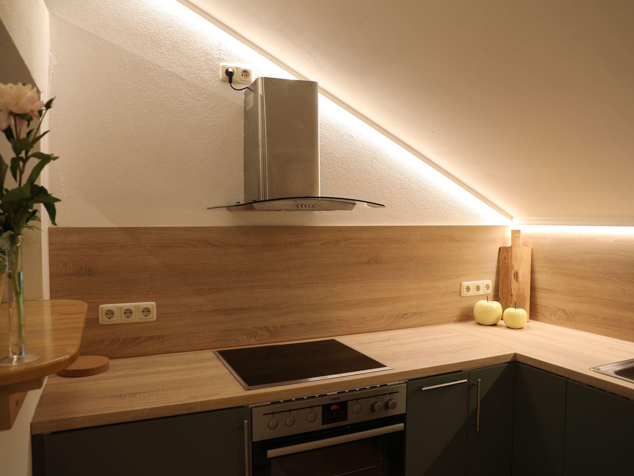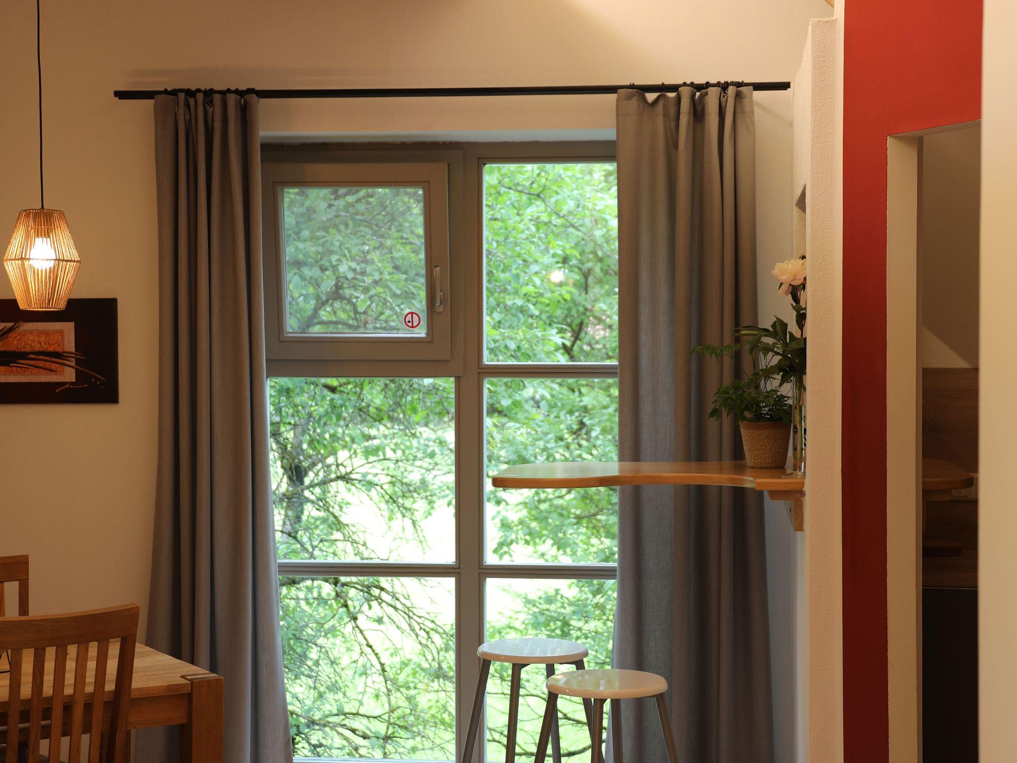 Herzlich willkommen in unserer modernen, großzügigen und lichtdurchfluteten Nichtraucher-Loft-Ferienwohnung mit 60?m² Wohnfläche – ein Ort zum Ankommen und Wohlfühlen. Die Wohnung ist bequem über einen Treppenlift erreichbar und bietet damit auch Gästen mit eingeschränkter Mobilität einen komfortablen Zugang, zum Wohnraum müssen 3 Stufen bewältigt werden. Der offene Loft-Wohnraum überzeugt durch große Fenster, die viel Tageslicht hereinlassen und eine freundliche, einladende Atmosphäre schaffen. Eine bequeme Couch und ein gemütlicher Lesesessel laden zum Entspannen ein. Für Unterhaltung sorgt ein moderner Flat-Sat-TV, und selbstverständlich steht Ihnen kostenfreies WLAN zur Verfügung. Die offene Küche ist vollständig ausgestattet und geht fließend in den Essbereich mit Flat-TV über. Eine optische Raumteilung schafft Privatsphäre im Schlafbereich, der mit einem komfortablen Doppelbett ausgestattet ist. Zusätzlich steht dort ein ausklappbares Bett für zwei weitere Personen zur Verfügung, sodass die Wohnung auch für kleine Familien oder befreundete Paare bestens geeignet ist. Das Badezimmer verfügt über eine Badewanne mit Duschmöglichkeit, einen Fön sowie eine Waschmaschine – perfekt auch für längere Aufenthalte. Ein separates WC ergänzt die Ausstattung und sorgt für zusätzlichen Komfort.