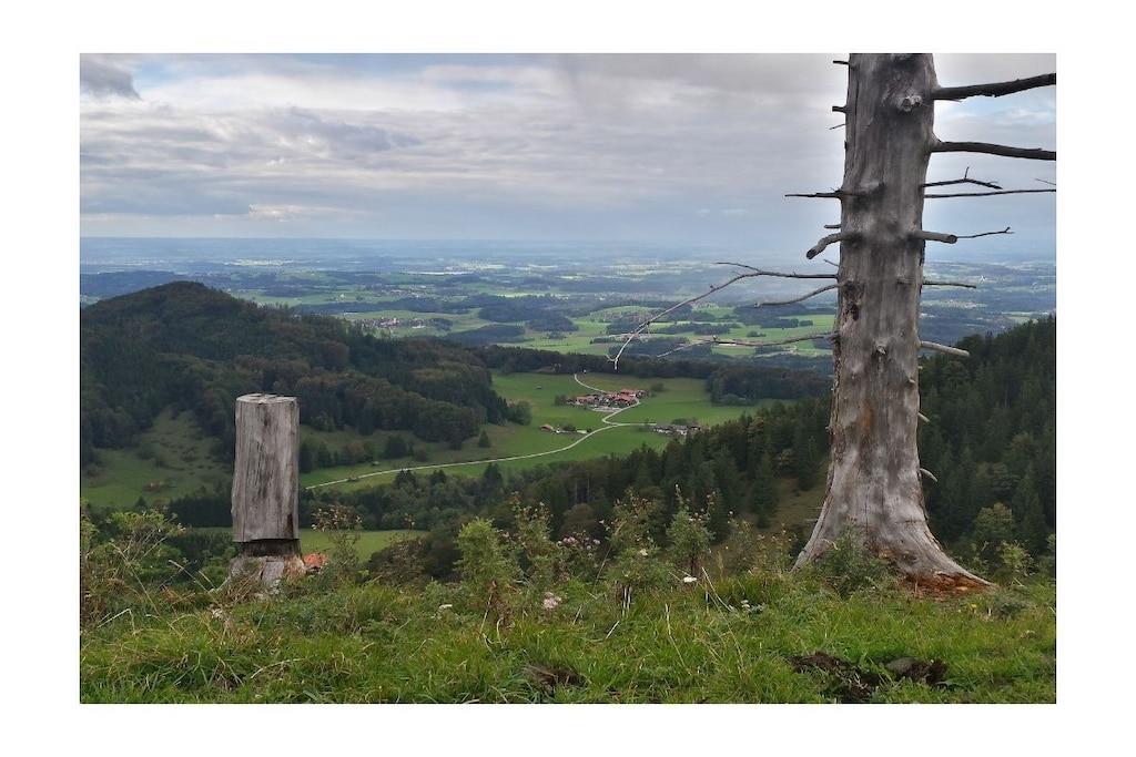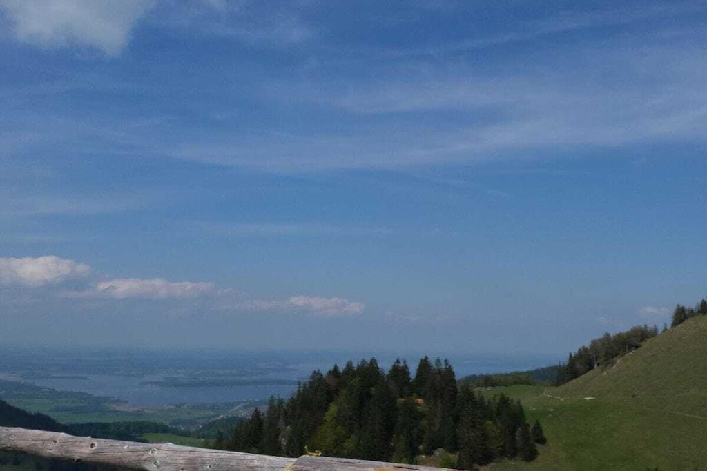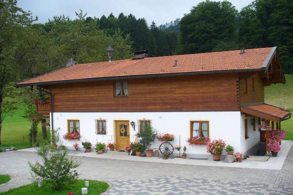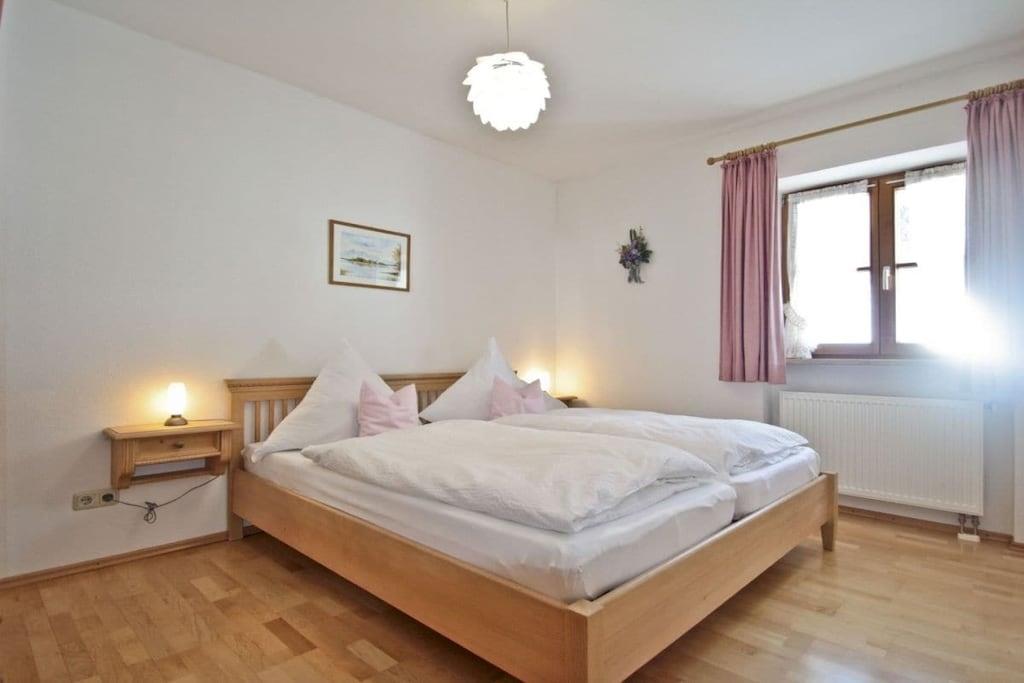 Gemütliche, sehr ruhige, ebenerdige Ferienwohnung mitten in den Bergen am Fuße der Kampenwand und Chiemgauer Berge. Die Wohnung liegt auf 835m Höhe. Parken bei der Eingangstüre. Große Terrasse mit Blick auf Wald, Wiesen und Berge laden ein zum Faulenzen, Relaxen, Entspannen, Lesen... Sie sind total ungestört und der Platz gehört nur Ihnen alleine.Hören die Vögel und sehen unseren Kühen beim Grasen zu. Sehr gut ausgestattete Küche mit Mikrowelle, 2 Herdplatten, Kühlschrank mit Gefrierfach, 1 Wohnbereich mit Sitzecke und Ausziehcouch für 3. Person. TV, großes Bad mit Dusche und Fußbodenheizung und 2 Fenster, Schlafzimmer mit Parkett, Betten ohne Fußende, 200x200. Von der Ferienwohnung starten Sie direkt zu den Almen und ins Wandergebiet.