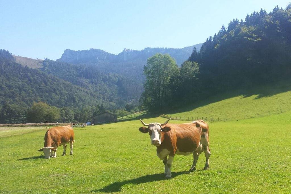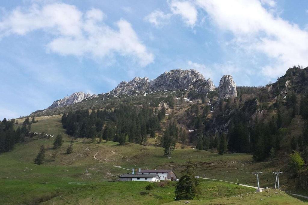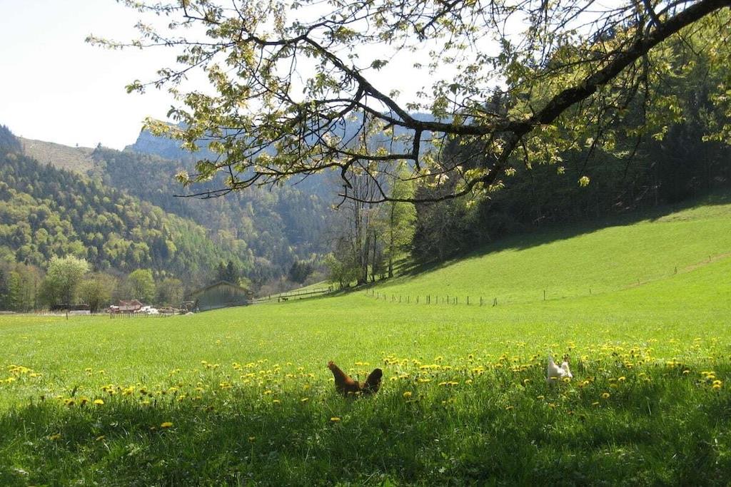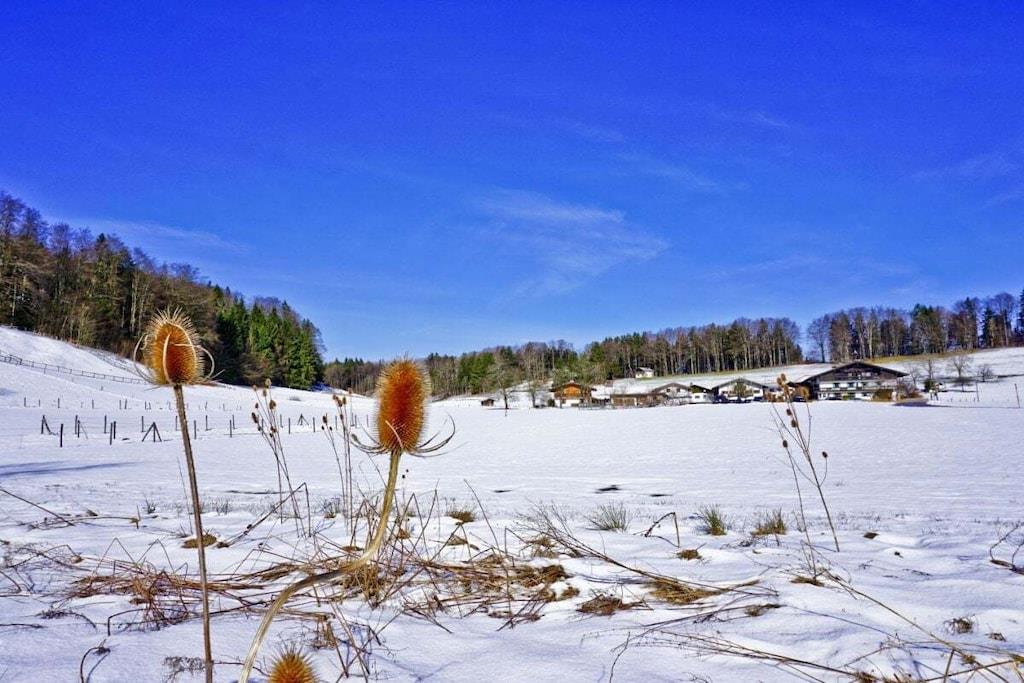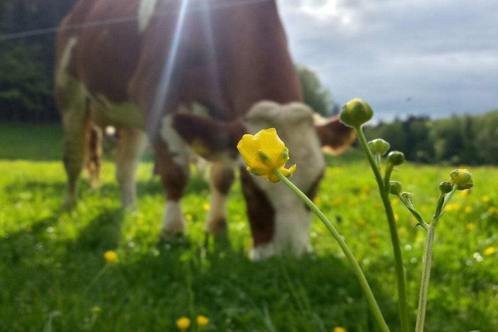 Gemütliche, sehr ruhige, ebenerdige Ferienwohnung mitten in den Bergen am Fuße der Kampenwand und Chiemgauer Berge. Die Wohnung liegt auf 835m Höhe. Parken bei der Eingangstüre. Große Terrasse mit Blick auf Wald, Wiesen und Berge laden ein zum Faulenzen, Relaxen, Entspannen, Lesen... Sie sind total ungestört und der Platz gehört nur Ihnen alleine.Hören die Vögel und sehen unseren Kühen beim Grasen zu. Sehr gut ausgestattete Küche mit Mikrowelle, 2 Herdplatten, Kühlschrank mit Gefrierfach, 1 Wohnbereich mit Sitzecke und Ausziehcouch für 3. Person. TV, großes Bad mit Dusche und Fußbodenheizung und 2 Fenster, Schlafzimmer mit Parkett, Betten ohne Fußende, 200x200. Von der Ferienwohnung starten Sie direkt zu den Almen und ins Wandergebiet.