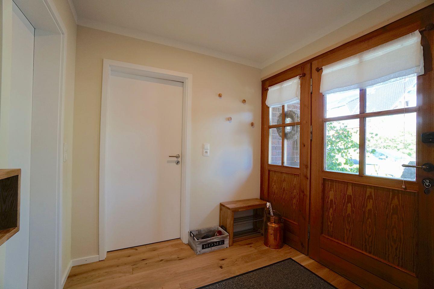 Im Eingangsbereich der Wohnung findet man ausreichend Platz vor um seine Garderobe unterzubringen. Auch der Zugang zum Gäste WC / Duschbad liegt im Eingangsbereich, sowie ein separater Raum des Eigentümers.
