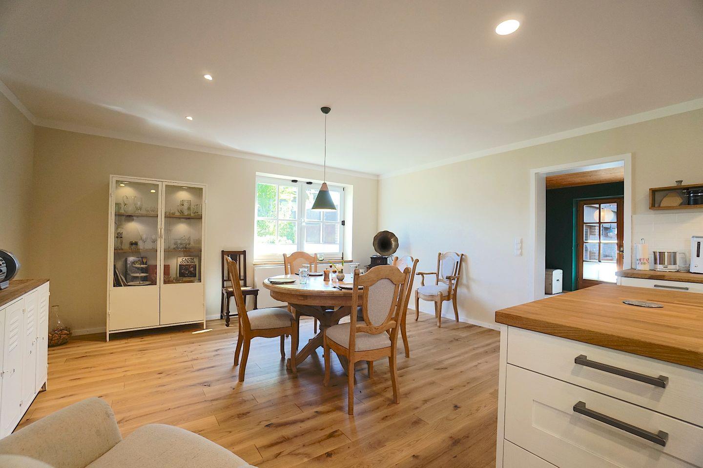 Das Herzstück der Wohnung bildet der großzügige, lichtdurchflutete Küchen- und Esszimmerbereich. Die hochwertige, neue Einbauküchen bietet Genussliebhabern alles, was man sich beim Kochen nur Wünschen kann.
